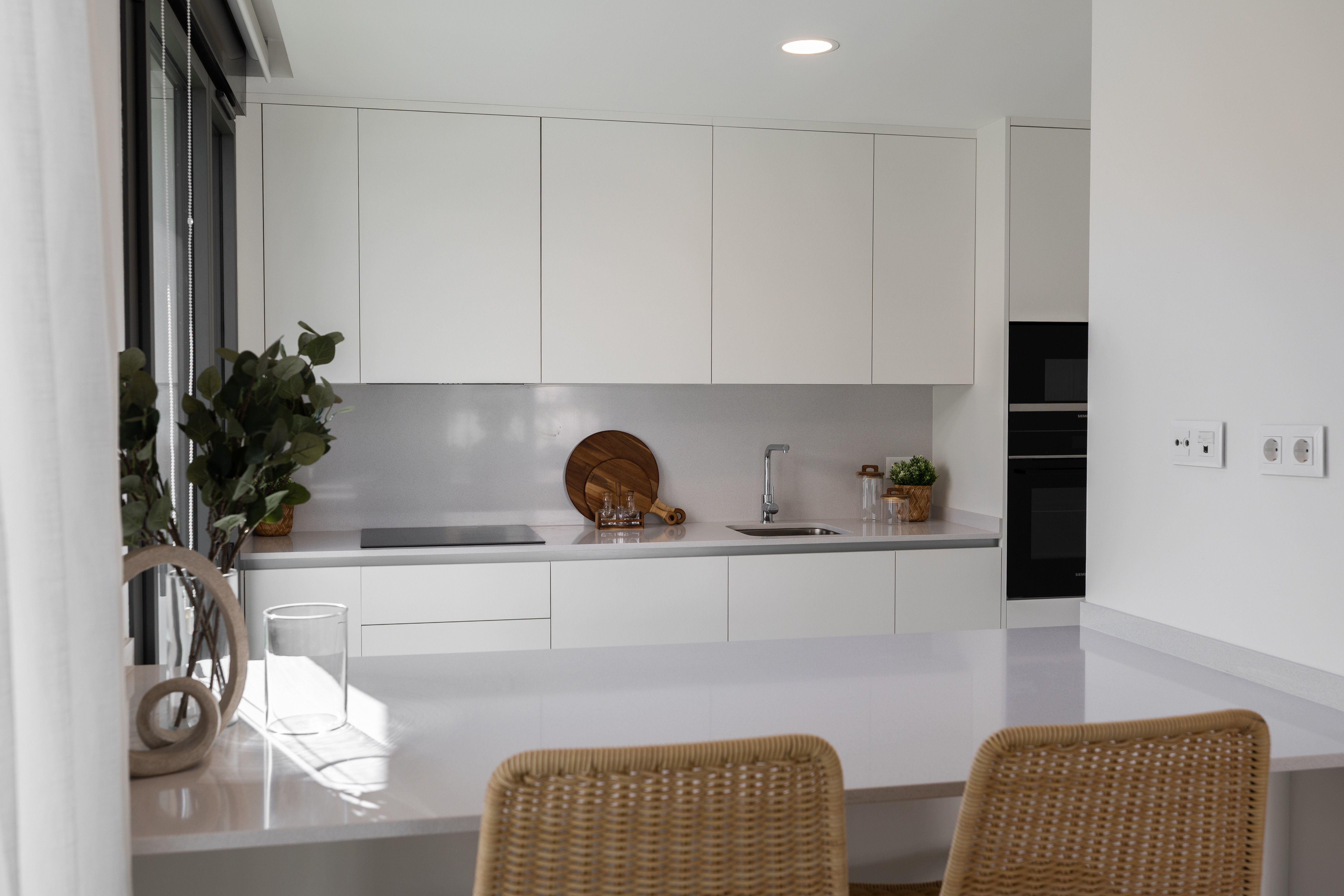 Køkkenet er udstyret med Siemens A++-apparater, der sikrer høj ydeevne og energieffektivitet. Den kompakte kvartsbordplade og Grohe-vandhanerne på badeværelserne giver sammen med Roca-sanitetsartikler elegance og funktionalitet. Derudover har ejendommen en vinkælder til vinelskere, en vandblødgører for at sikre fremragende vandkvalitet og en 3x5 saltvandspool, der er ideel til en mere naturlig og sundere svømmeoplevelse. Det programmerbare drypvandingssystem holder haven i perfekt stand, mens de elektriske skodder giver bekvemmelighed og sikkerhed.