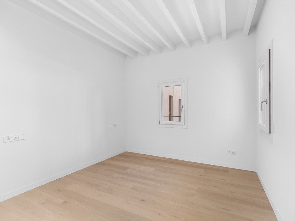 Dette lovende projekt ligger på en gågade tæt på den symbolske Plaza Mayor og består af i alt syv boliger. Alle lejligheder har et åbent opholds- og spiseområde med integreret eller tilstødende køkken, 1-2 soveværelser, 1-2 badeværelser og i nogle tilfælde et separat bryggers. De to penthouselejligheder har også en privat tagterrasse. Trægulve i opholdsrummene og fliser på badeværelserne kombinerer komfort med elegance. Det moderne design samt lysstyrken, karakteren og bekvemmeligheden gør disse enheder til små perler i hjertet af den gamle bydel. Lejligheden, der tilbydes her, ligger på anden sal med et samlet areal på 145 kvm og består af to soveværelser og to badeværelser ud over opholdsrummet med åbent køkken og gårdhave (9 kvm). Central aircondition samt en elevator i bygningen og en parkeringsplads i den interne underjordiske garage giver ekstra komfort og afrunder dette attraktive tilbud. En fremragende mulighed for at nyde et funktionelt hjem med mange faciliteter i den smukke gamle bydel i Palma!
