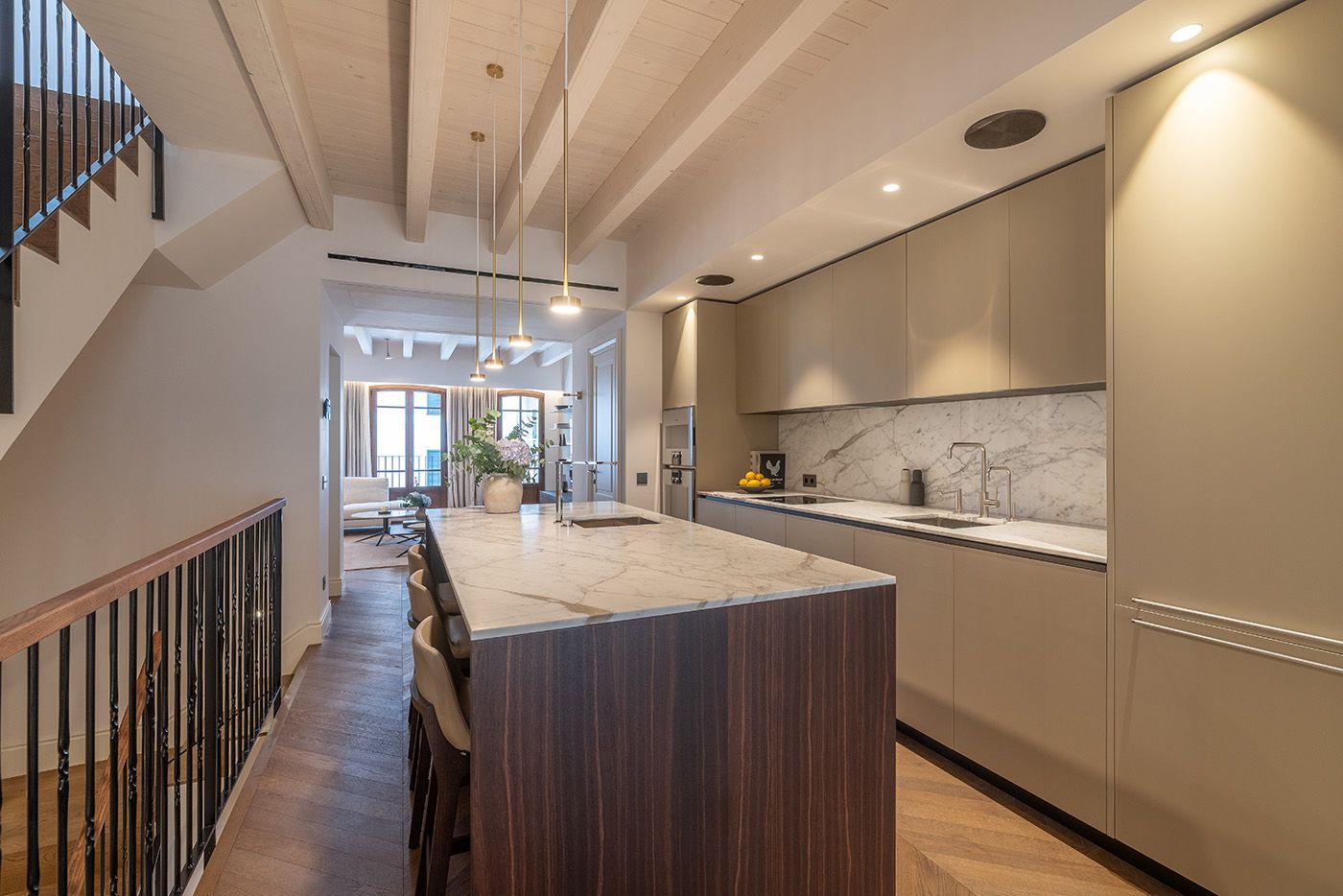 I hjertet af Palma de Mallorcas mest eftertragtede gamle bydel, kun få skridt fra den livlige Placa Raimundo, tilbyder dette nybyggede byhus en sjælden og udsøgt blanding af historisk charme og moderne luksus. Denne bolig, der er designet med en upåklagelig sans for detaljer, har smukt udformede replikaelementer, der hylder traditionel mallorcinsk arkitektur og samtidig omfavner moderne raffinement. Hjemmet er bygget efter de absolut højeste standarder og er et samarbejde mellem anerkendte arkitekter. Ejendommen ligger mellem to maleriske gader og har en overflod af naturligt lys, der strømmer gennem det rummelige interiør med højt til loftet og generøse volumener. Raimundo Townhouse er designet til en raffineret livsstil. En privat elevator forbinder de forskellige niveauer i ejendommen. På første sal er der to dobbeltværelser og et enkeltværelse samt to badeværelser. Anden sal er designet som et åbent koncept med et moderne køkken, en lys stue/spiseplads og et gæstetoilet. Endelig kan man nyde den unikke tagterrasse som en privat oase, hvor der er tænkt på alt fra pool og solarium til det fashionable udendørs madlavningsområde. Interiøret er udført med de fineste materialer og luksusmærker som Poliform, Roda, Flos, Giopato & Coombes, Olivari, Gaggenau, Miele, Bang & Olufsen og Vola, hvilket sikrer en atmosfære af tidløs elegance og moderne komfort. For samlere og kunstentusiaster er der også mulighed for at erhverve en unik, skræddersyet kunstsamling, der er kurateret eksklusivt til ejendommen. Dette er ikke bare et hjem - det er en enestående mulighed for at eje et stykke arkitektonisk kunst i en af Europas mest eftertragtede byer omgivet af nogle af Palmas mest elskede steder. En kort gåtur bringer dig til El Corte Inglés, gourmetmarkedet Olivar og det gyldne sand på Palmas strande samt løbestier. I den modsatte retning er der kun få minutter til Plaza Cort og den elegante Borne-allé med Palmas bedste restauranter og butikker. Et fristed med stil og raffinement, klar til at blive nydt.
