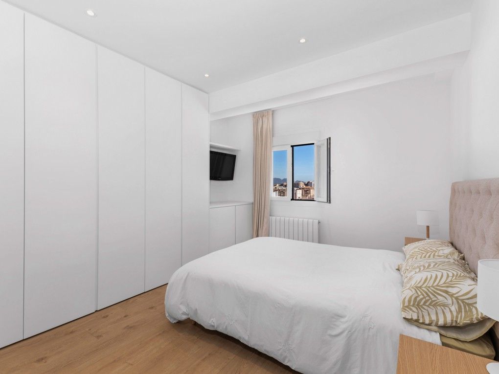 Denne smukke penthouse ligger kun 10 minutters gang fra Santa Catalina og er blevet smagfuldt totalrenoveret i 2024. Lejligheden har et praktisk layout med to soveværelser, et badeværelse, et åbent køkken / stue med en gaspejs, en rummelig terrasse, der kan lukkes helt for at nyde om vinteren, og en anden solrig terrasse med fremragende udsigt mod Bellver-slottet, krydstogtskibene og til Tramuntana-bjerget.