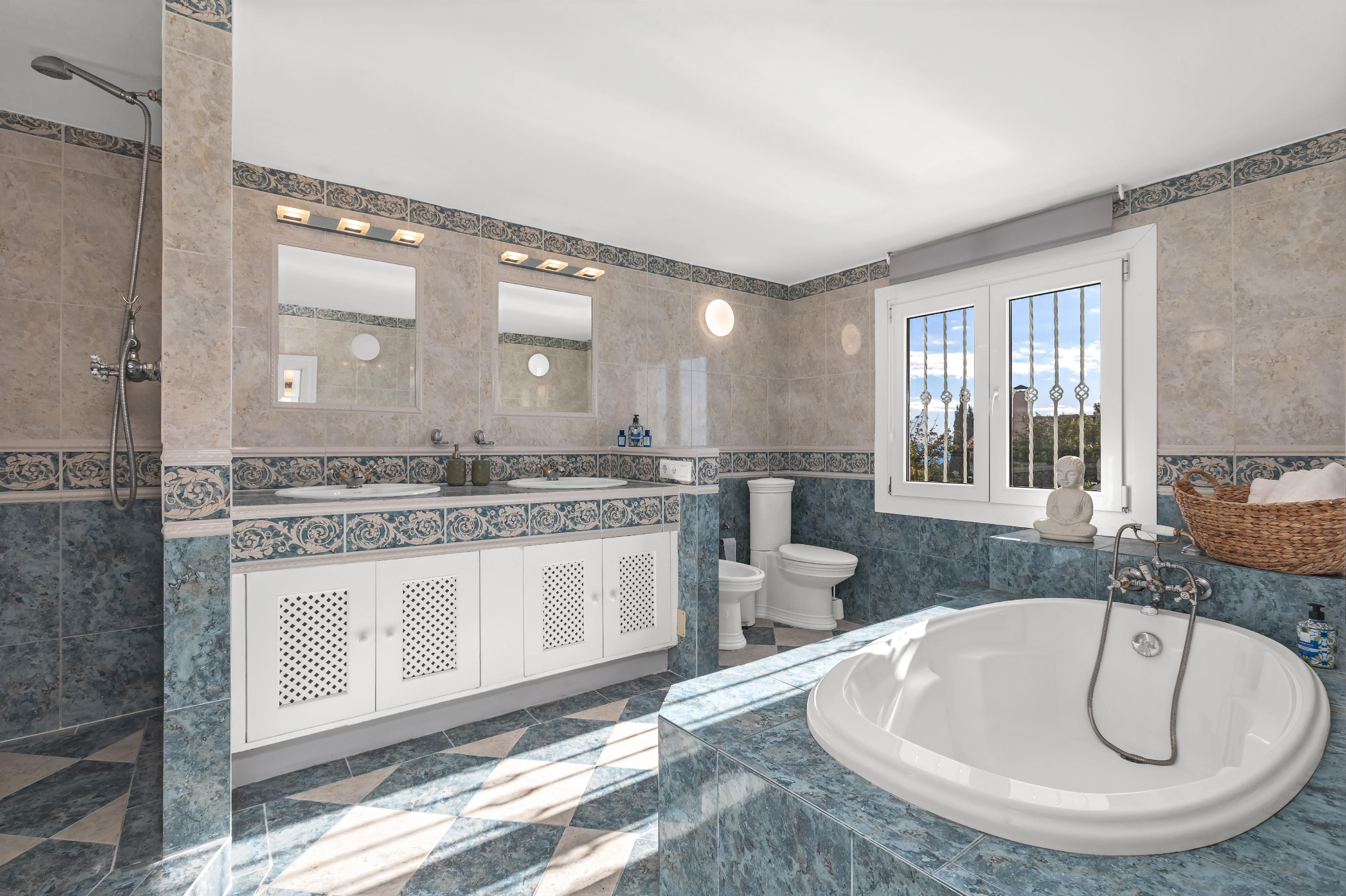 Denne smukke villa i middelhavsstil ligger i det velkendte resitentielle område Costa d'en Blanes. Ejendommen med fantastisk havudsigt og sydvestlig orientering er fordelt på to etager. Ejendommen har fem soveværelser, en stue med åbent køkken og adgang til den store terrasse med pool og grillområde. Andet ekstraudstyr er: klimaanlæg h/c, central olieopvarmning og en garage.