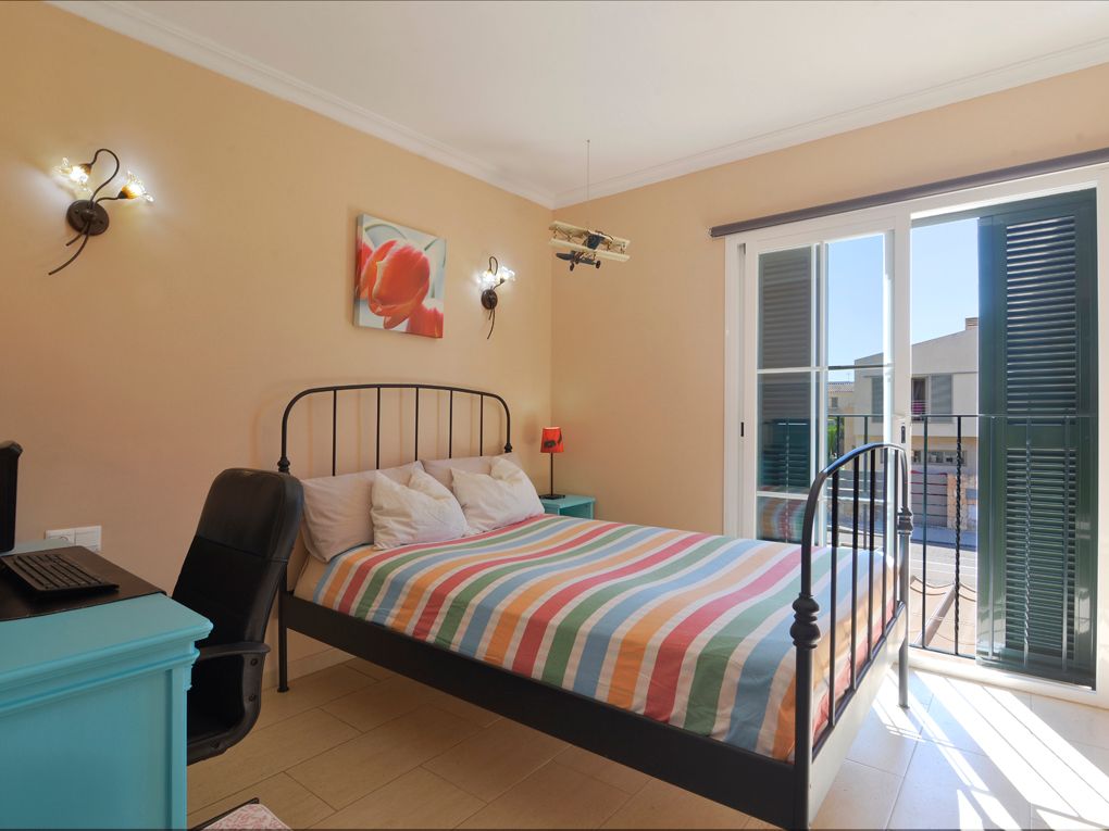 Dette møblerede dobbelthus ligger i Puig de Ros i gåafstand til restauranter, supermarkeder og med hurtig adgang til hovedvejen. Det har i alt 4 soveværelser og 3 badeværelser, et af dem en-suite, fordelt på to etager. Den store stue-spisestue har en pejs og har direkte adgang til den overdækkede veranda, der fører til den private saltvandspool. Fra tagterrassen kan man nyde en pragtfuld, uhindret udsigt over Tramuntana-bjergene. Yderligere funktioner: grillplads, garage, split-aircondition.