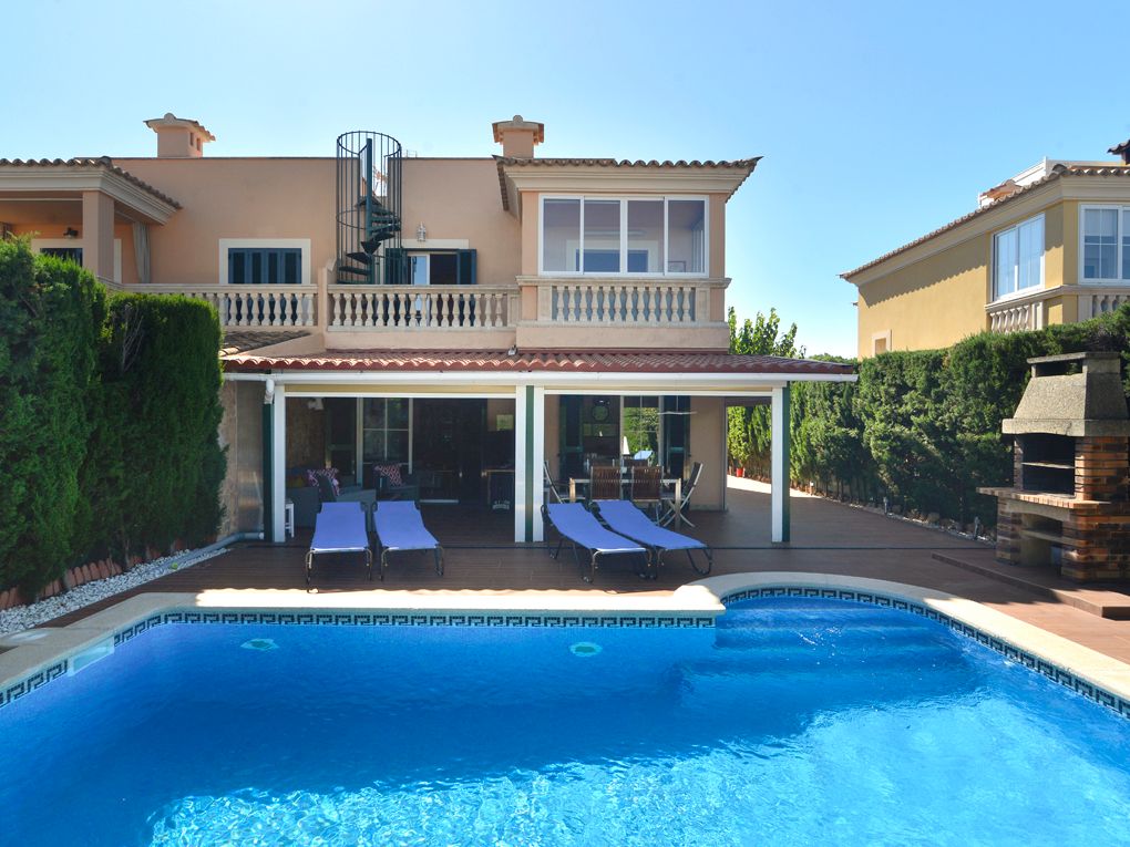 Type: Hus • Region: Sydpå • Samlet areal: 142 ㎡ • Værelser: 5 • Soveværelse: 4 • Badeværelse: 3 • Boligareal: 142 ㎡ • Grundstykke: 339 ㎡ • Terrasse • Indbygget køkken • Pejs • Svømmebassin • Varmeform: Centralvarme, Split-klimaanlæg • Varmeform: Varmepumpe • Gulvbelægning: Fliser
