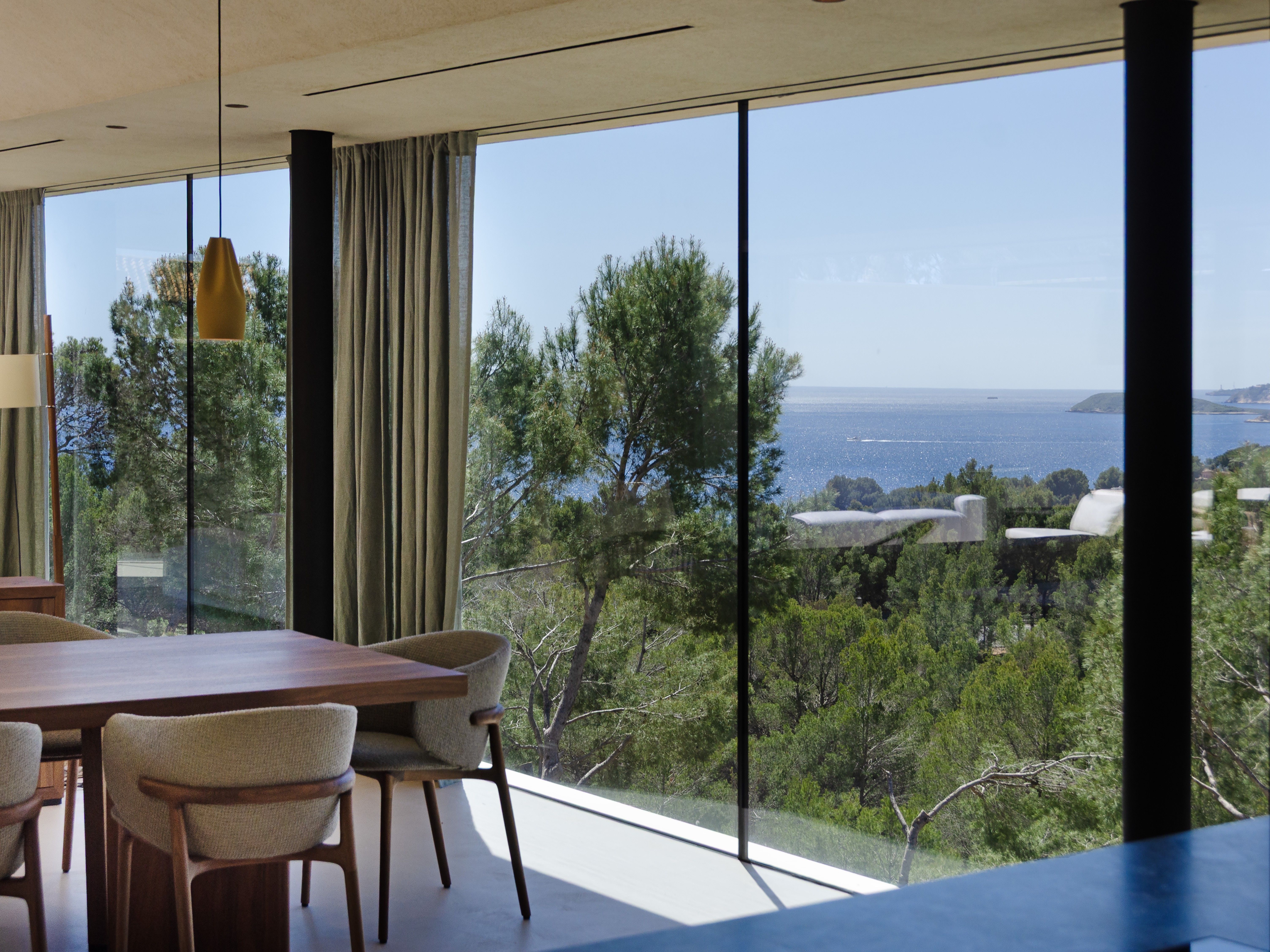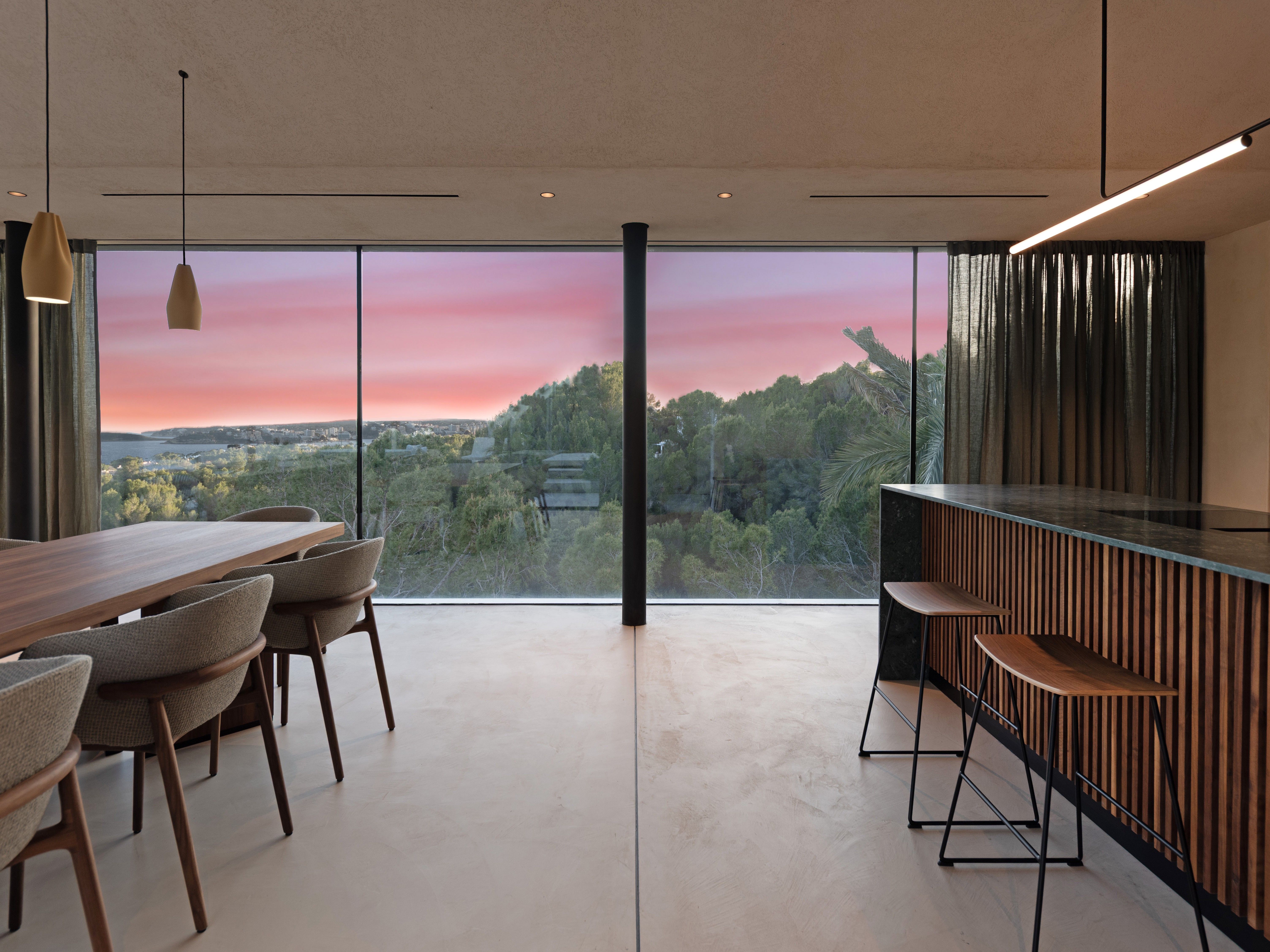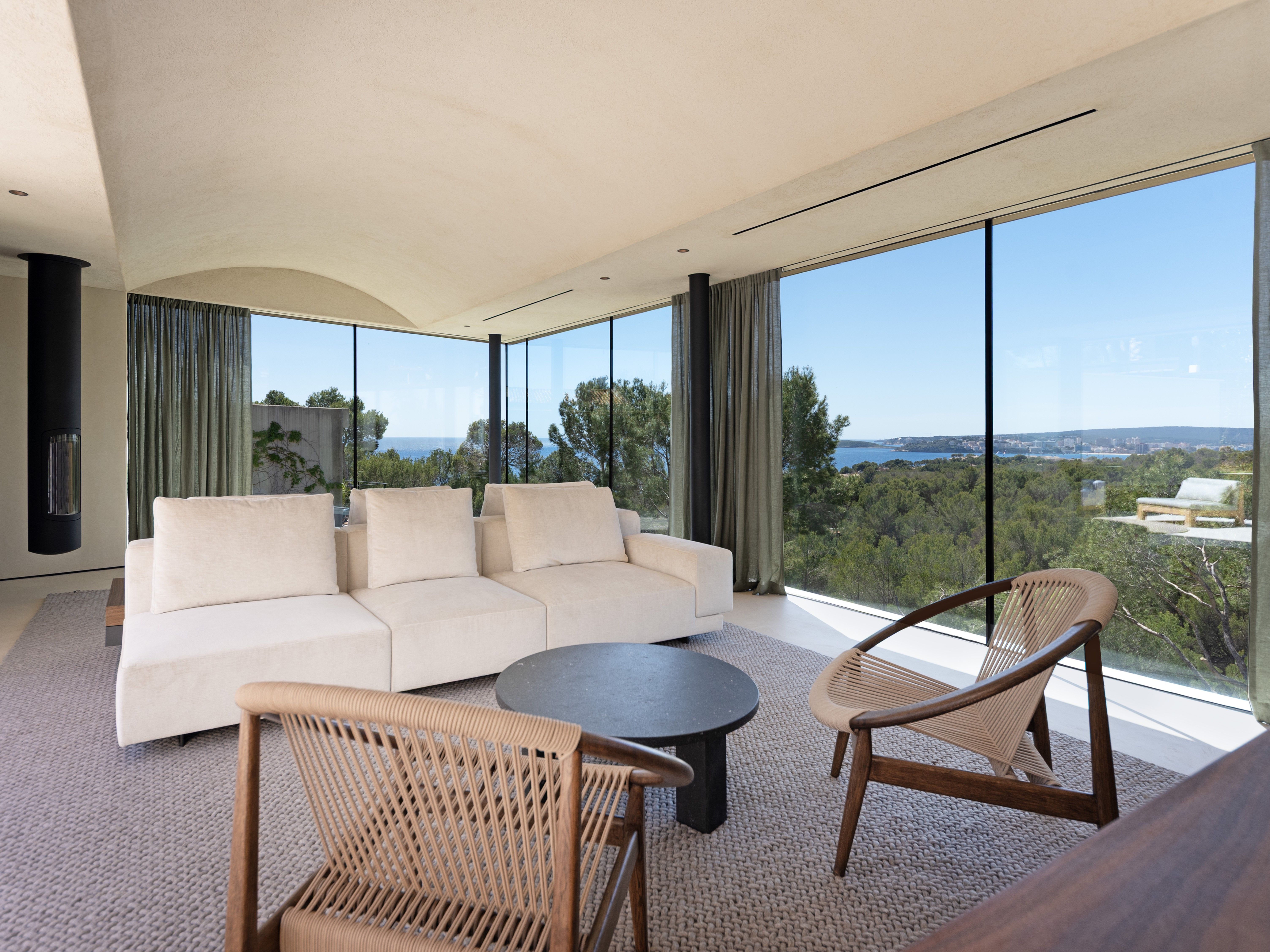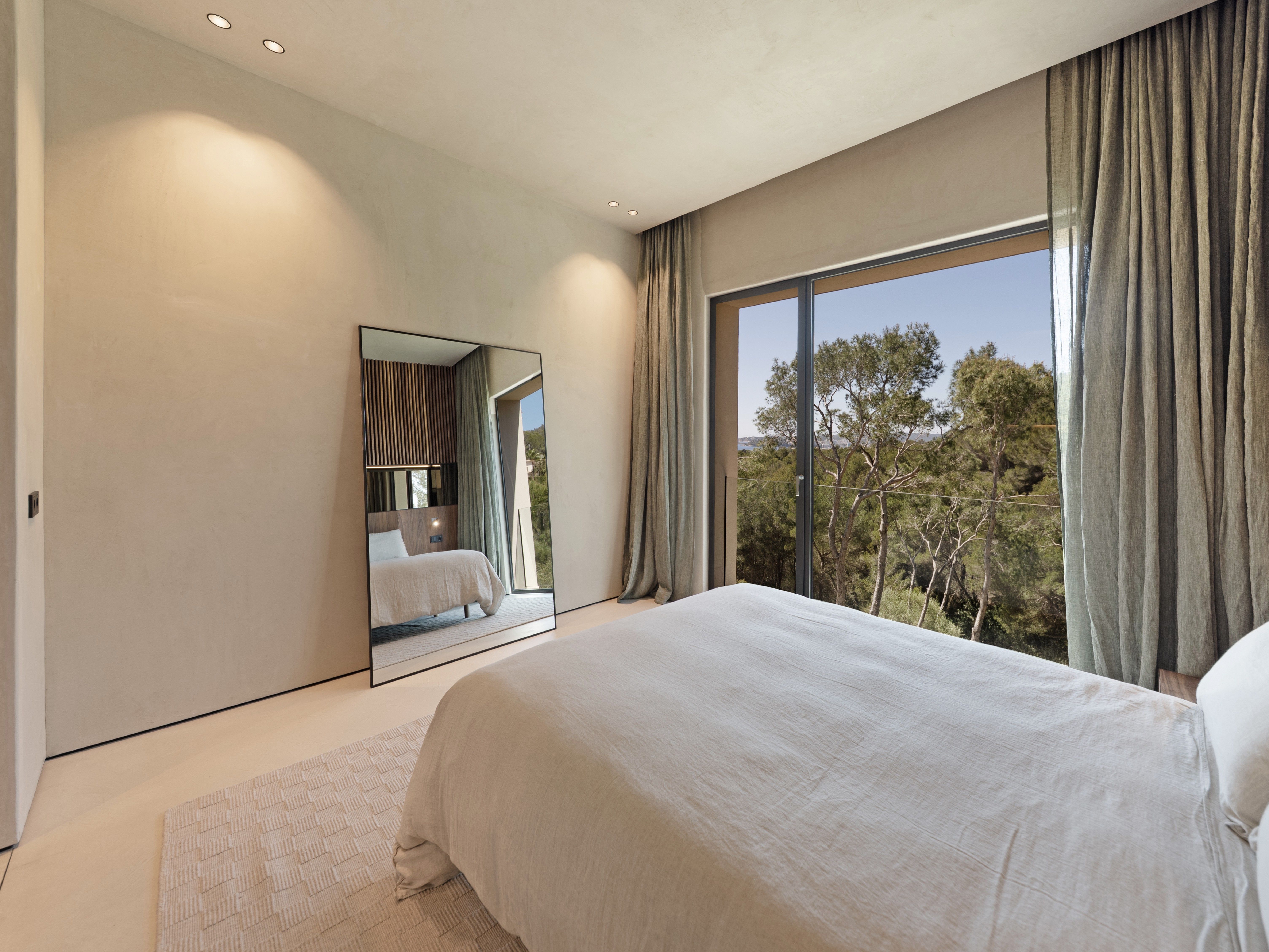 Denne fantastiske villa med unik arkitektur ligger i et af de mest eftertragtede og eksklusive områder i den sydvestlige del af Mallorca, Costa D'en Blanes, kun et par minutters kørsel fra den prestigefyldte og symbolske Puerto Portals. Det er sydvestvendt og med havudsigt fra begge etager. Gennem de flydende fliser i haven kommer man ind i hovedindgangen, der fører til første sal, som skiller sig ud med sine store vinduer, hvorfra der på den ene side er smuk udsigt til havet og naturen og på den anden side til swimmingpoolen og haveområdet. På denne etage finder man det åbne køkken med spisekammer, opholds- og spisestuen, gæstetoilettet og en praktisk garderobe. I stueetagen er der fire soveværelser med eget badeværelse med grøn udsigt til naturen og havet, det multifunktionelle rum, som let kan omdannes til et femte soveværelse med eget badeværelse, opbevaringsrummet og bryggerset. Det inkluderer tre parkeringspladser (to i en lukket garage og en udenfor), varm og kold aircondition og gulvvarme (styret af domotik), sauna og pejs. Det er en villa med en unik arkitektur, perfekt integreret i bjerget Costa d'en Blanes, et storslået sted for tilbagetrækning og afslapning, der kun er 10 minutter væk fra hovedstaden på øen Mallorca.