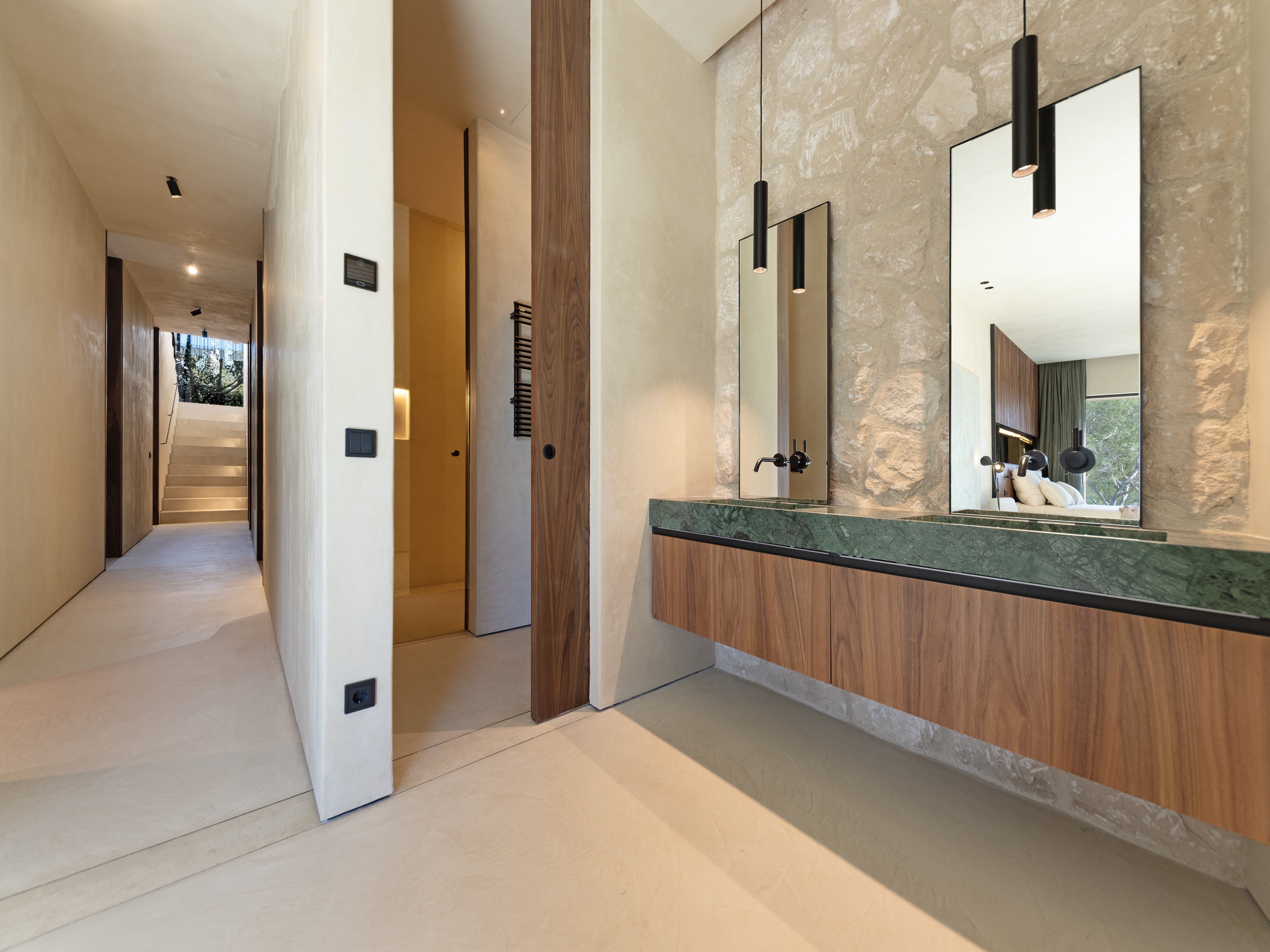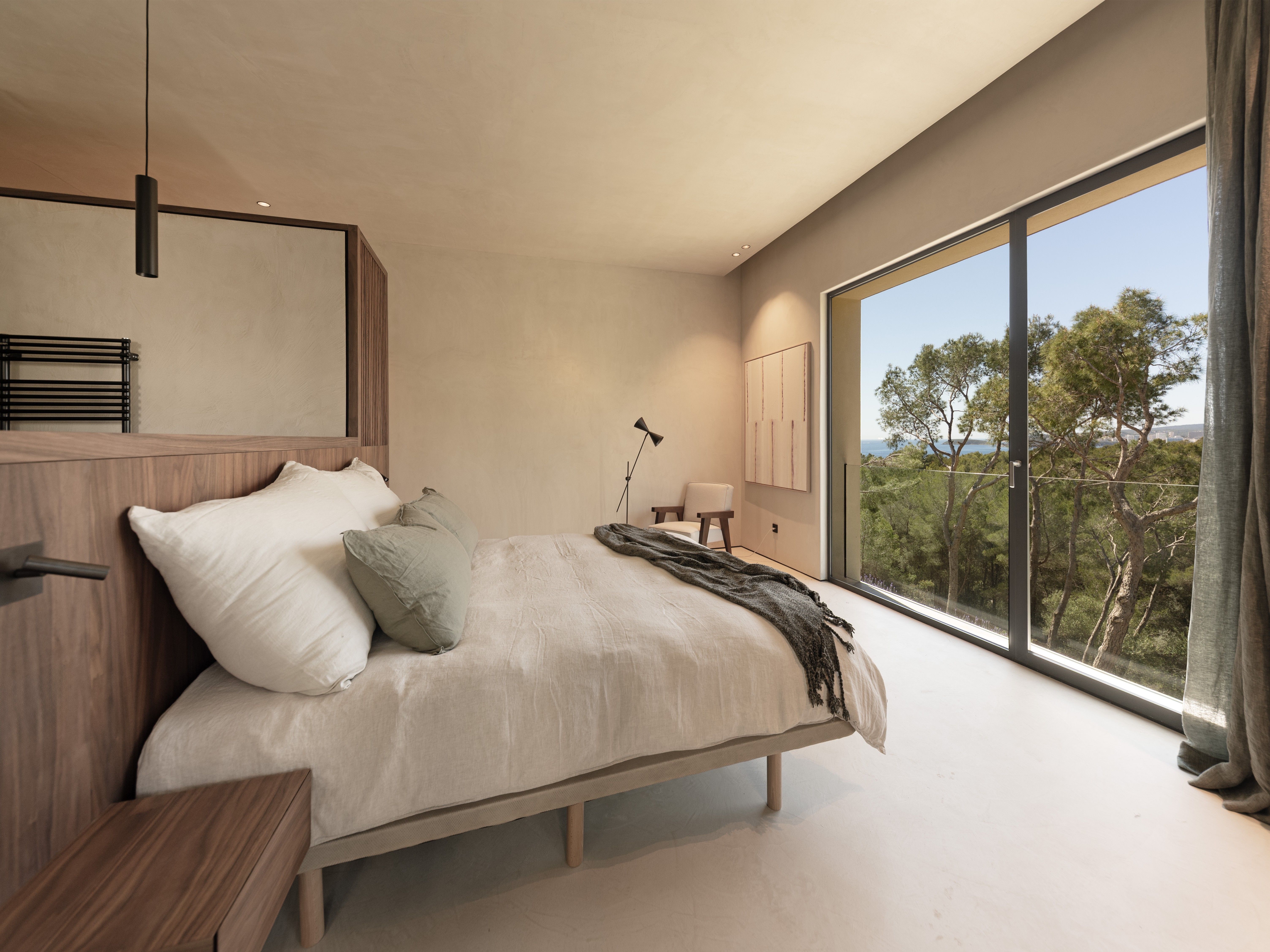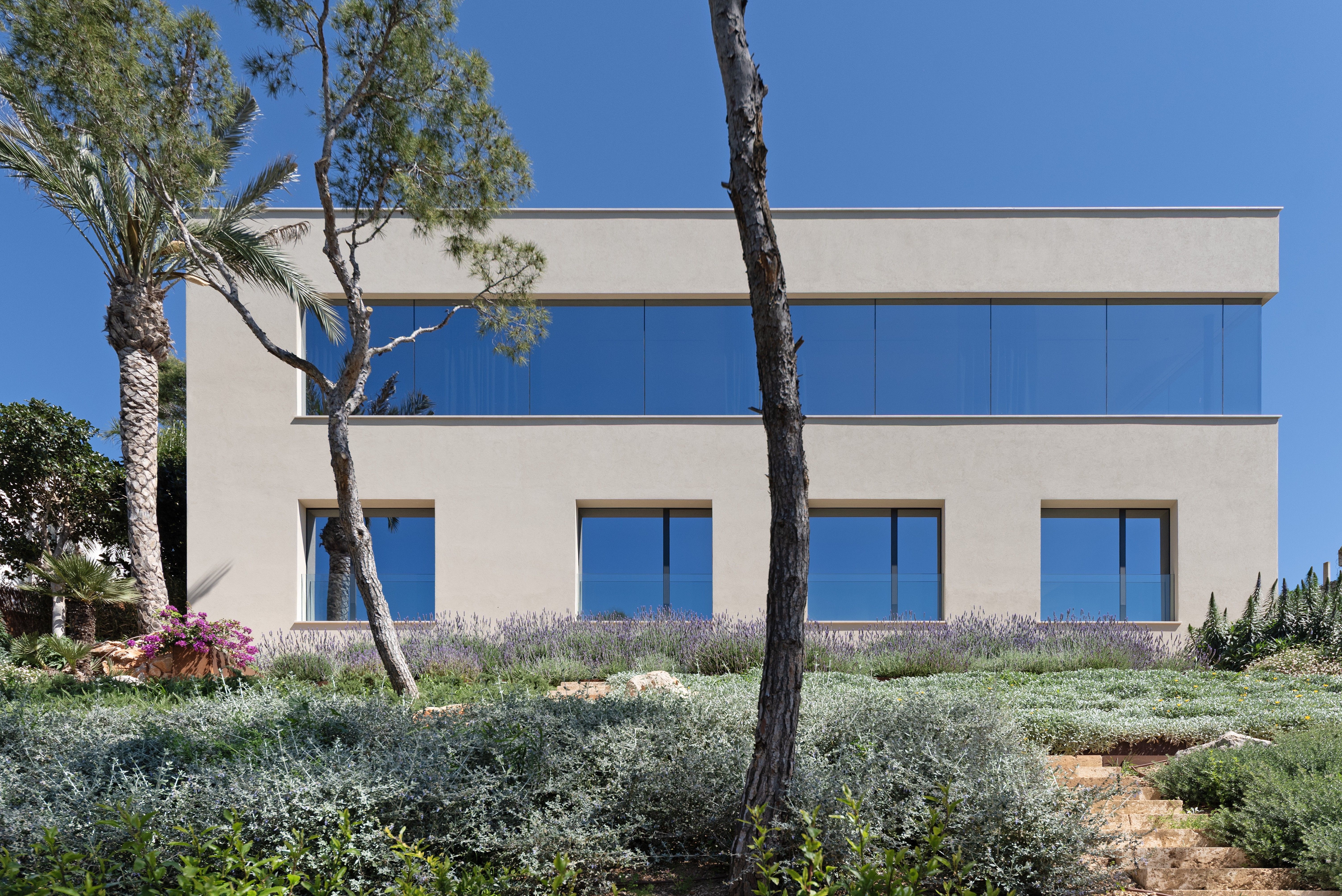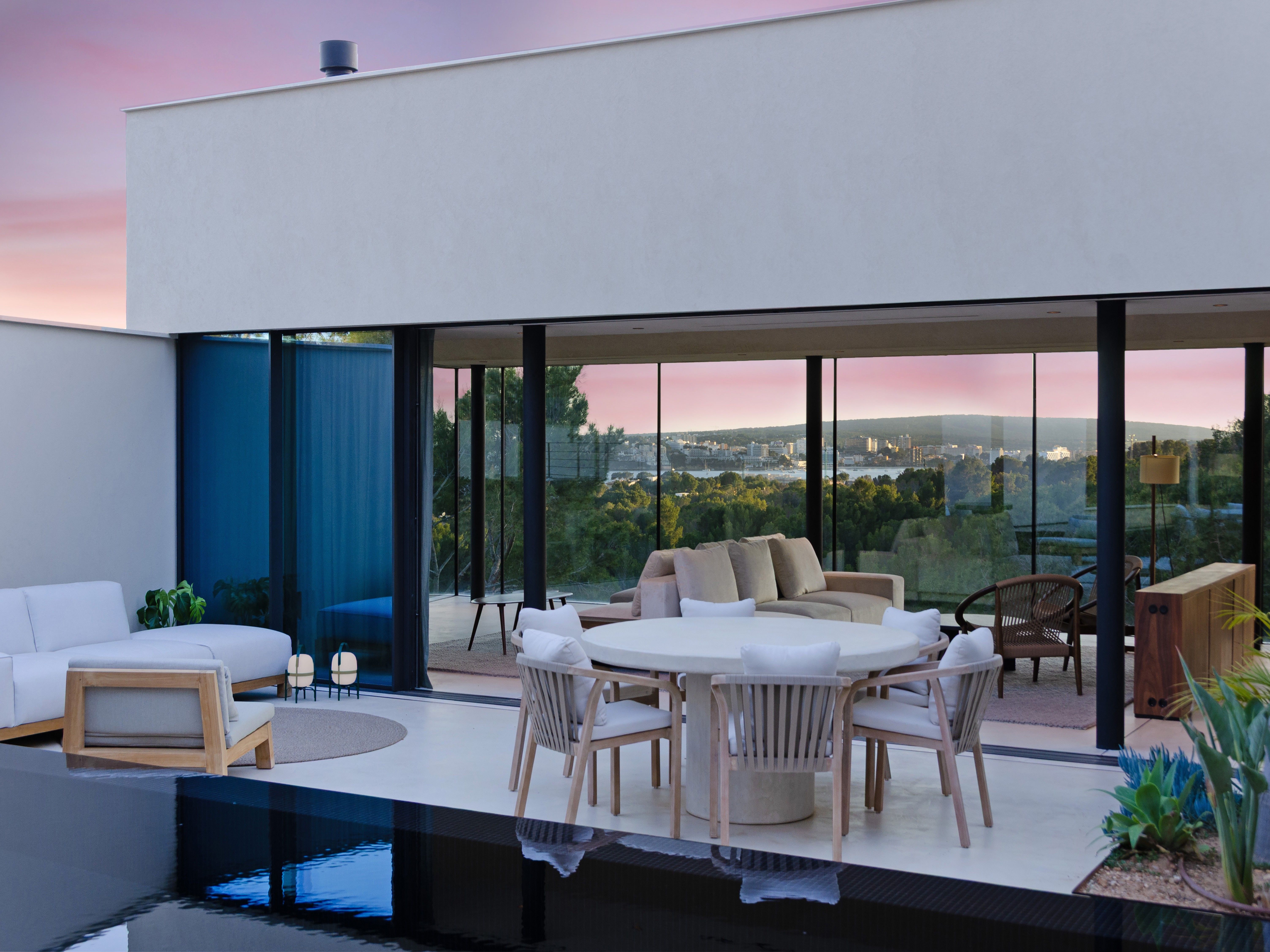 Denne fantastiske villa med unik arkitektur ligger i et af de mest eftertragtede og eksklusive områder i den sydvestlige del af Mallorca, Costa D'en Blanes, kun et par minutters kørsel fra den prestigefyldte og symbolske Puerto Portals. Det er sydvestvendt og med havudsigt fra begge etager. Gennem de flydende fliser i haven kommer man ind i hovedindgangen, der fører til første sal, som skiller sig ud med sine store vinduer, hvorfra der på den ene side er smuk udsigt til havet og naturen og på den anden side til swimmingpoolen og haveområdet. På denne etage finder man det åbne køkken med spisekammer, opholds- og spisestuen, gæstetoilettet og en praktisk garderobe. I stueetagen er der fire soveværelser med eget badeværelse med grøn udsigt til naturen og havet, det multifunktionelle rum, som let kan omdannes til et femte soveværelse med eget badeværelse, opbevaringsrummet og bryggerset. Det inkluderer tre parkeringspladser (to i en lukket garage og en udenfor), varm og kold aircondition og gulvvarme (styret af domotik), sauna og pejs. Det er en villa med en unik arkitektur, perfekt integreret i bjerget Costa d'en Blanes, et storslået sted for tilbagetrækning og afslapning, der kun er 10 minutter væk fra hovedstaden på øen Mallorca.