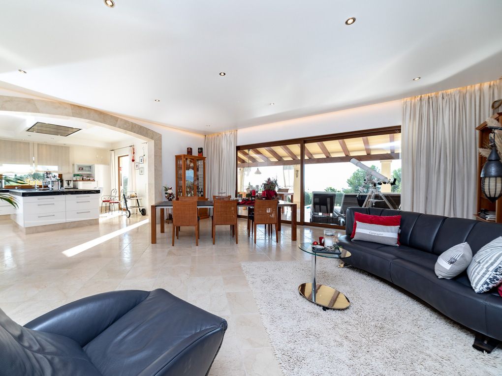 Denne spektakulære villa, der er indrettet med omhu, ligger i det bedste område i Puntiró, så den har en vidunderlig udsigt til Palma-bugten og til dels til Serra de Tramuntana. Ejendommen og poolen er sydvendt, så du kan nyde de solrige timer fuldt ud. Efter solbadning kan du slappe af på verandaen: et perfekt sted at tilbringe kvalitetstid med familie og venner. Den velholdte grønne have omgiver ejendommen. Børnene vil have det sjovt her!