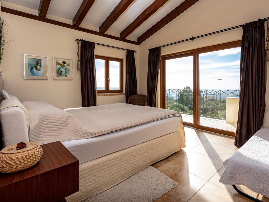 På øverste etage er der en åben hems, der også kan bruges som en anden stue. Ud over det store soveværelse med eget badeværelse og påklædningsværelse er der to andre soveværelser og et badeværelse. To af soveværelserne på øverste etage har deres egen balkon med vidunderlig udsigt.