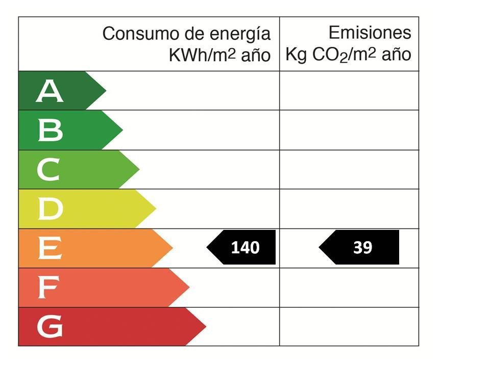 • energiforbrugskoefficient: 140.0 kWh/(m2*a) • CO2-emission: 39.0 kg/m2 • CO2-emissionsklasse: E • Varmeform: Olieopvarmning • Energieffektivitetsklasse: E