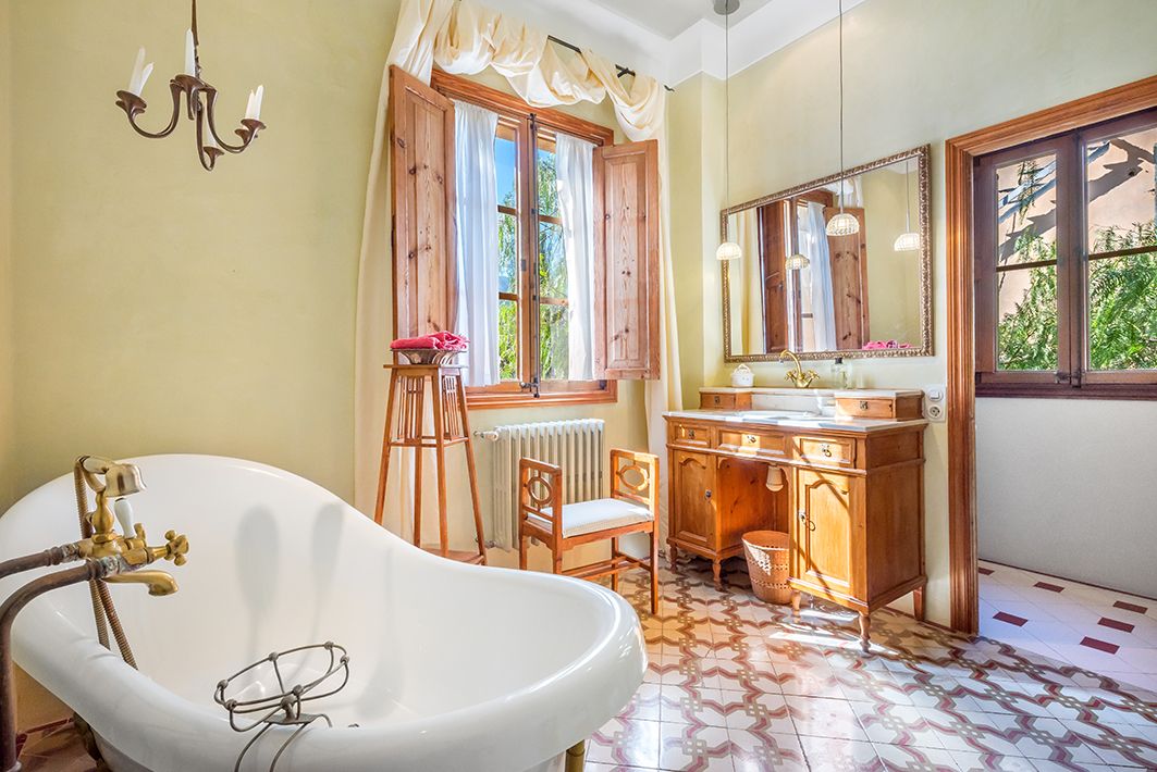 De 4 soveværelser, 3 badeværelser, påklædningsværelse og to stuer er fordelt på første og anden sal. Et af de mange højdepunkter er den rummelige lounge i loftsstil og en overdækket terrasse med udsigt over Tramuntana-bjergene, som er designet som et sommersoveværelse. Det samlede boligareal er ca. 474 m2.