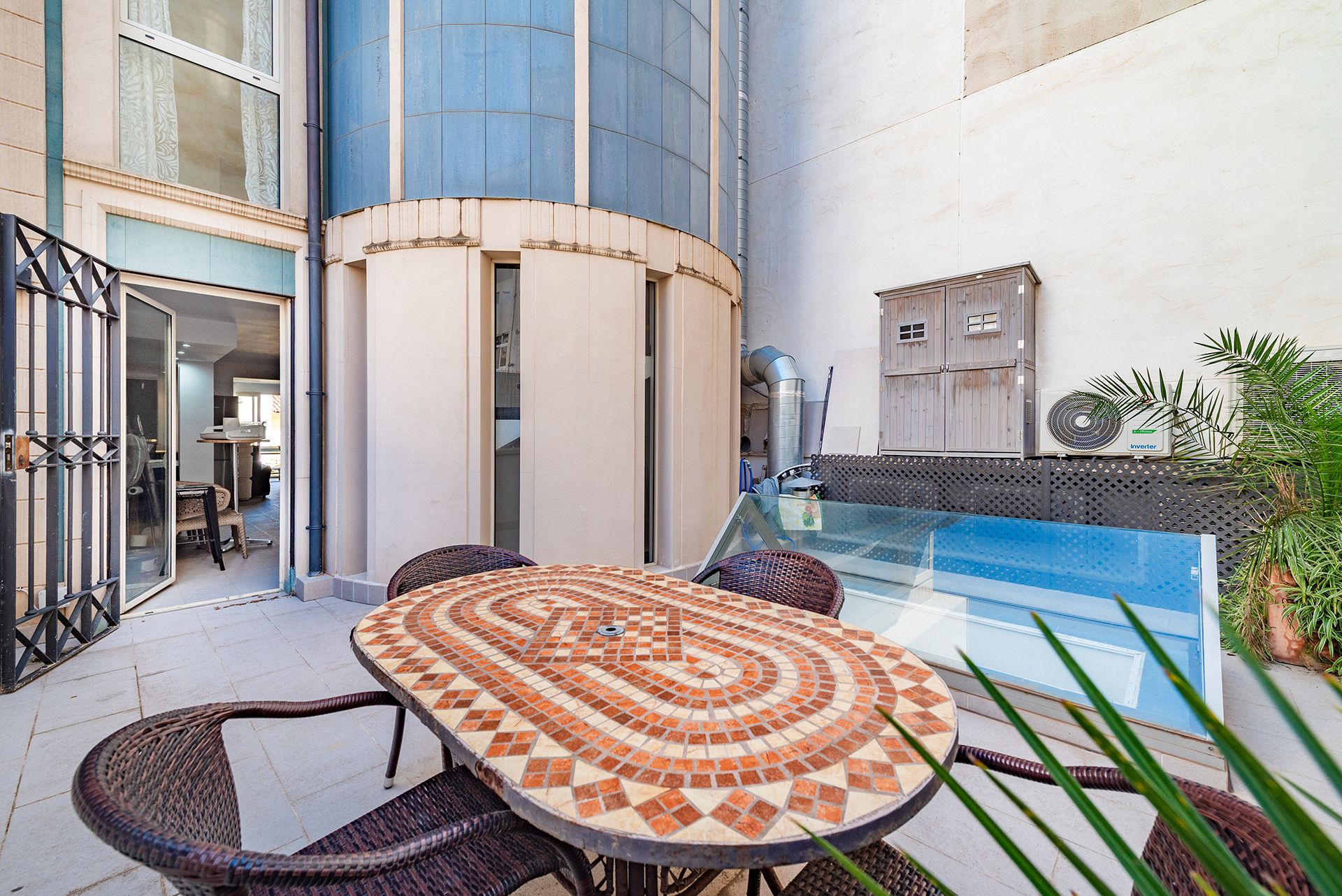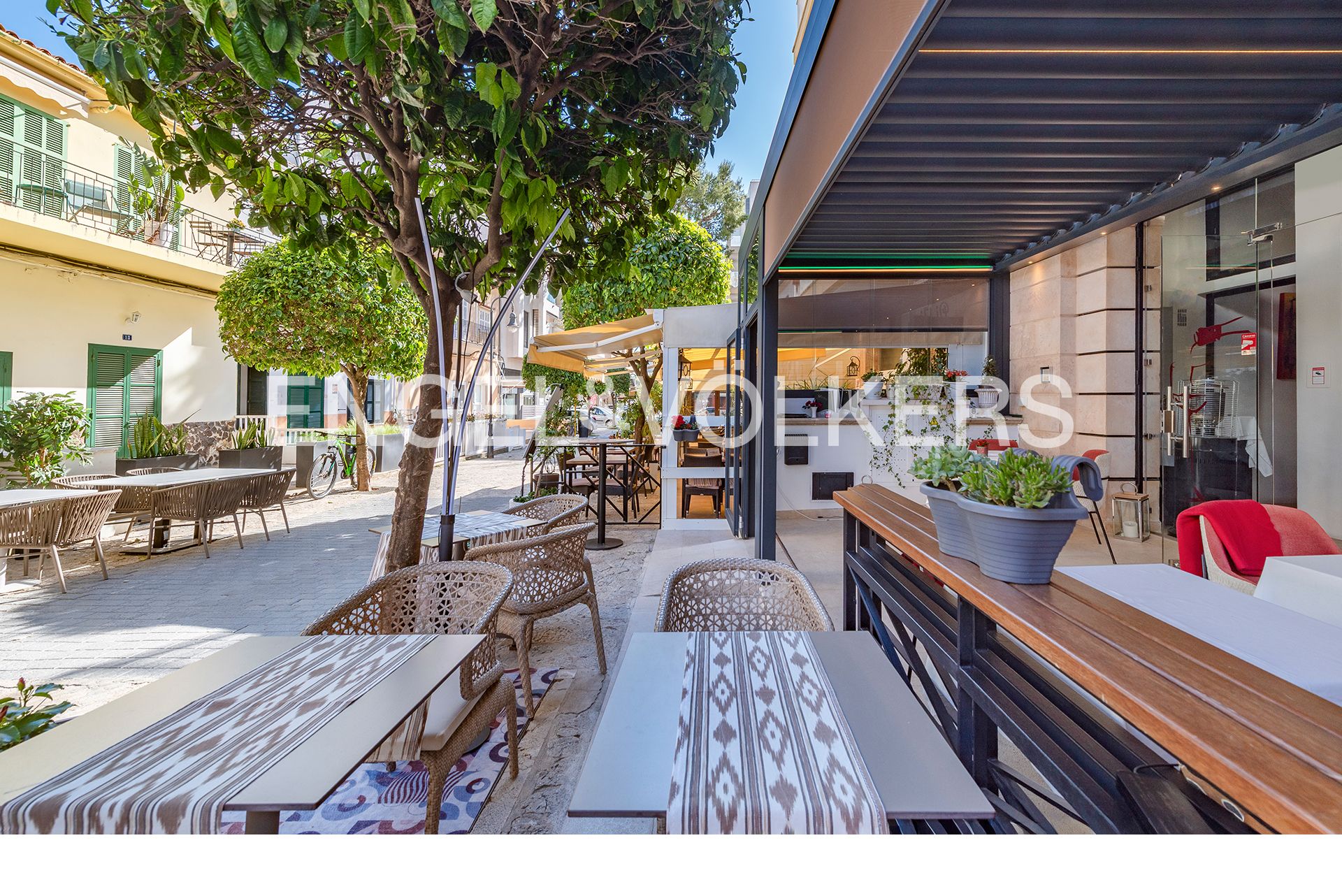 Her kan man nyde den mallorcinske sol til langt ud på aftenen. I stueetagen er der en restaurant, som er en del af salget og har en eksisterende lejekontrakt, hvilket giver en attraktiv indtægtskilde fra starten. Dette tilbud suppleres med en gyldig ferieudlejningslicens for op til ti personer, hvilket gør ejendommen særlig interessant for både ejere og investorer. En vandret opdeling ville også gøre det muligt at skabe forskellige lejligheder. Dette særlige byhus kombinerer på elegant vis beliggenhed, komfort og afkastpotentiale og repræsenterer en sjælden mulighed i et af de mest eftertragtede områder på Mallorca.