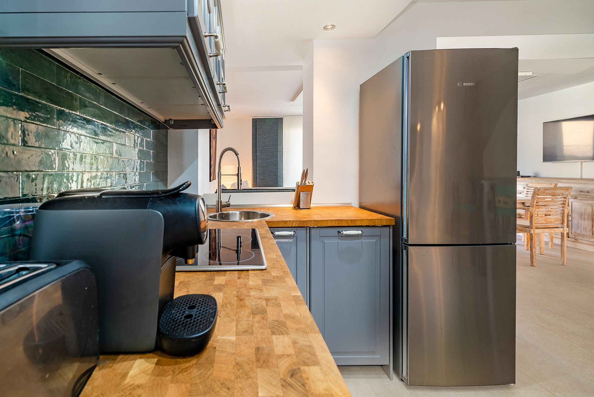 De forskellige udendørsarealer, som understreger middelhavsstilen, er særligt bemærkelsesværdige. Tre af etagerne har deres egen balkon, mens en rummelig, beskyttet terrasse på bagsiden indbyder til afslapning og giver ekstra plads til et loungeområde.