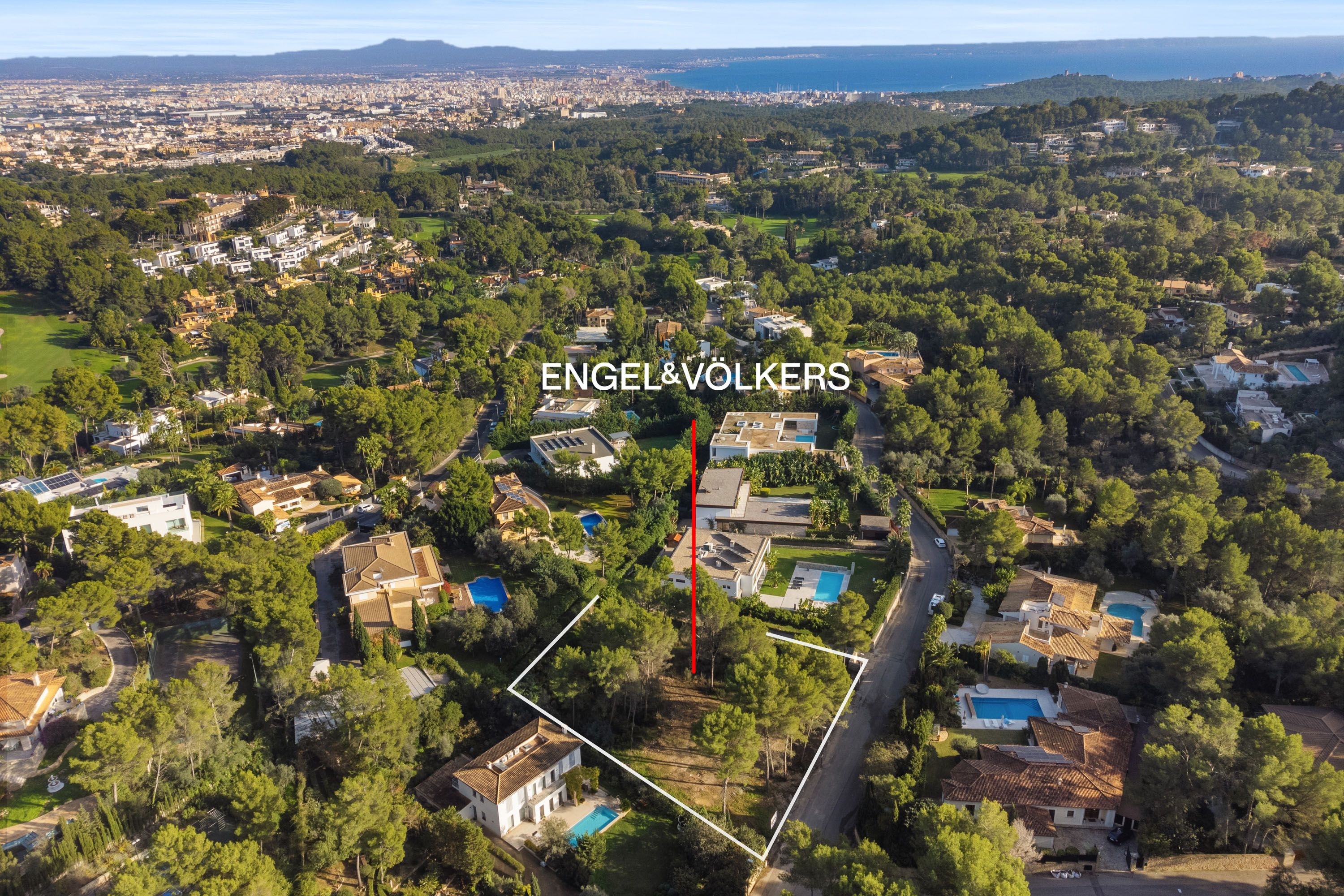 Spektakulær flad grund i det mest eksklusive område på Mallorca, Son Vida. Denne syd-sydvestvendte grund er helt flad og ligger på en stille gade og tilbyder enestående privatliv, rigeligt med solskin og masser af naturligt lys. Den leveres med et godkendt udførelsesprojekt og gyldig byggetilladelse til opførelse af en 880 m² stor villa fordelt på tre etager, komplet med en swimmingpool. Projektet er designet af den anerkendte arkitekt Jaime Salva. Byggeriet kan begynde med det samme. Denne grund er perfekt til at bygge en luksusvilla med have, hvilket gør den til et ideelt valg for familier med små børn og golfelskere.