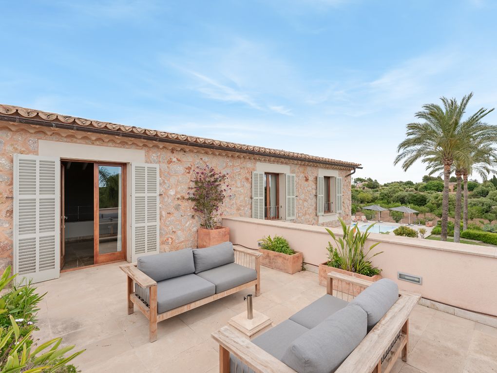 Denne imponerende ejendom er bygget efter de højeste standarder i en stort set moderne stil med bevarelse af rustikke træk og nyder godt af en solid konstruktion. Den ligger kun 2 km uden for den eftertragtede landsby Santa Maria og 15 minutter fra Palma. Fremragende for dem, der ønsker at nyde hovedstaden og alt, hvad den har at byde på. Stueetagen i hovedhuset har en meget lys L-formet opholdsstue med fantastiske dimensioner og et rummeligt åbent køkken på den ene fløj. Desuden er der tre soveværelser, hvert med eget badeværelse og et gæstetoilet. Den charmerende trappe til anden sal fører videre til et meget stort studie/kontor, som kan omdannes til endnu et soveværelse, samt master-suiten, som optager det meste af øverste etage og byder på et stort soveværelse, der fører ud til en terrasse med udsigt, påklædningsområde og eget badeværelse. I husets kælder er der en garage til 4 biler og et vaskerum. Udendørs er ejendommen bygget i traditionel stil og har en række åbne og overdækkede terrasser med udsigt over en moden middelhavshave med frugttræer og en sø med springvand samt en fantastisk saltvands-infinity-pool på 12x4m. Derudover er der også et uafhængigt gæstehus med en åben planløsning med stort køkken og badeværelse samt et meget stort studie under poolen med opholdsstue, badeværelse og maskinrum. Yderligere funktioner: Centralvarme i gulvet, reversibel aircondition, udvendigt træværk i iroko, indvendigt i eg, Binissalem-marmorgulve, privat vandbrønd og elforsyning.