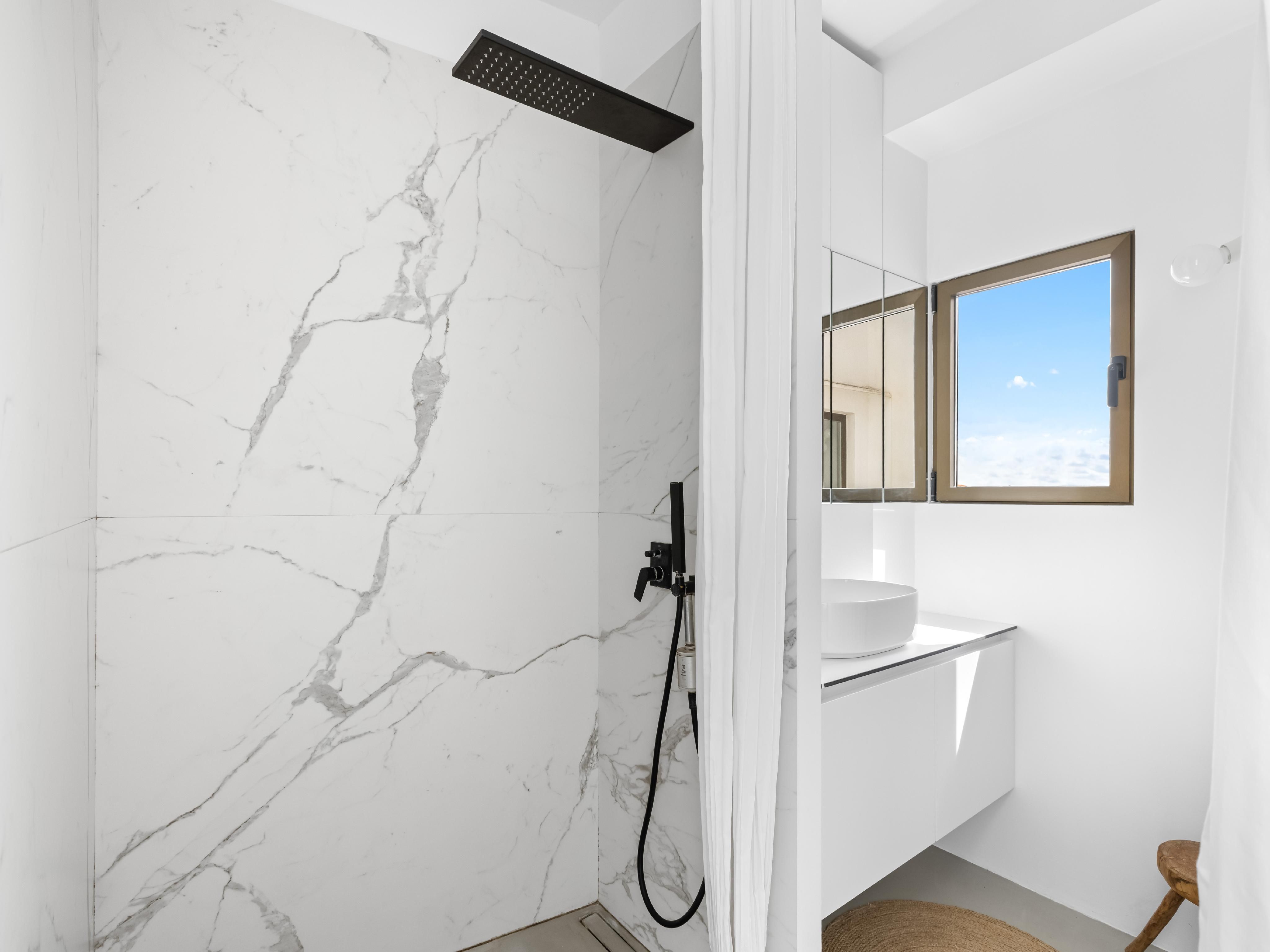 Midt i det trendy El Terreno-distrikt, et af Palmas mest eftertragtede steder, ligger denne totalrenoverede studiolejlighed, som er et stilfuldt tilflugtssted med urban flair. Med et boligareal på 38 m² kombinerer ejendommen moderne design, materialer af høj kvalitet og gennemtænkt indretning for at skabe en eksklusiv boligoplevelse. Særligt bemærkelsesværdigt er det højkvalitets køkken fra det anerkendte Leicht-mærke, som imponerer med sine rene linjer og topmoderne teknologi - ideelt for alle, der sætter pris på æstetik og funktionalitet. Elegante overflader, udvalgte materialer og elektrisk gulvvarme sikrer maksimal komfort hele året rundt. Et ægte højdepunkt er den rummelige terrasse på 17,65 m², som ikke kun giver en fantastisk udsigt over byens tage, men også lader dig føle nærheden til havet. Uanset om det er morgenmad i morgensolen på den forreste terrasse eller et glas vin om aftenen på den bageste terrasse - disse udendørsarealer er de ideelle steder at blive hængende og nyde. På trods af den centrale beliggenhed midt i det pulserende byliv er lejligheden stadig et sted med ro - et lille tilflugtssted over Palmas tage, der kombinerer stilfuld bolig med en middelhavsstil.