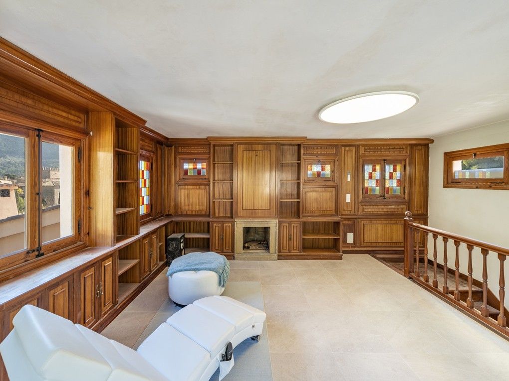 Stort, luftigt hjem med masser af potentiale i centrum af Valldemossa! Dette hus på 755 m2 ligger i gåafstand til absolut alt og har virkelig det hele, åben udsigt, stor have, gæstehus med 2 soveværelser og gigantisk swimmingpool. Ideelt til en stor familie eller masser af venner! I stueetagen er der flere store værelser til underholdning, køkkenet, et gæstebadeværelse, skabe og master suite med separat badeværelse og stort kontor eller walk in closet. På første sal er der 4 soveværelser, hver med eget badeværelse. Tårnet ligger på 2. sal, som oprindeligt blev brugt som bibliotek og kontor/studieområde. I underetagen er der et stort åbent rum, der er ideelt til fitnesscenter, biograf, pool-afslapningsområde - så mange muligheder! Udenfor i den fantastiske have har du et separat gæstehus med to soveværelser, et badeværelse, en stue og et separat område til et tekøkken Huset er blevet semi-renoveret, taget, VVS og elektriske systemer er blevet fuldstændig ombygget i 2022. Det er klar og venter på din sidste hånd!