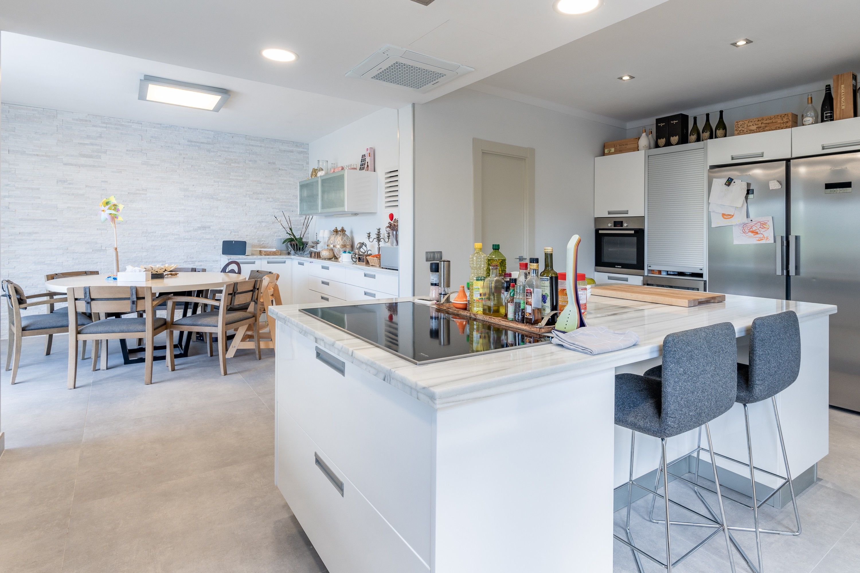 Ejendommens ydre er simpelthen spektakulært med forskellige områder til forskellige aktiviteter: et grillområde, der inviterer dig til at nyde udendørs spisning; et solarium ved siden af saltvandspoolen, der er perfekt til at nyde middelhavsklimaet i private og eksklusive omgivelser. Derudover omfatter ejendommen et uafhængigt udhus, der giver ekstra plads og et andet grillområde.