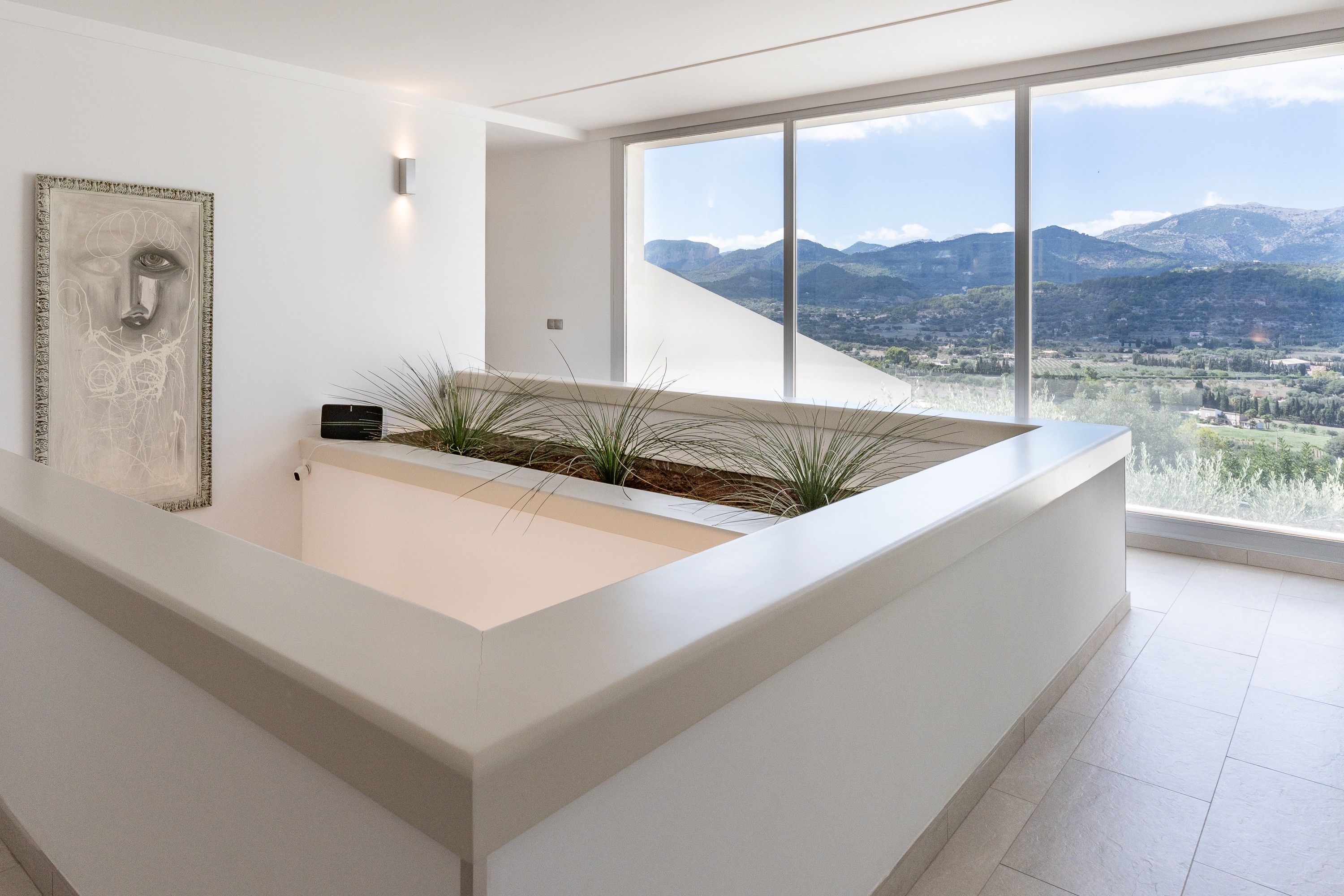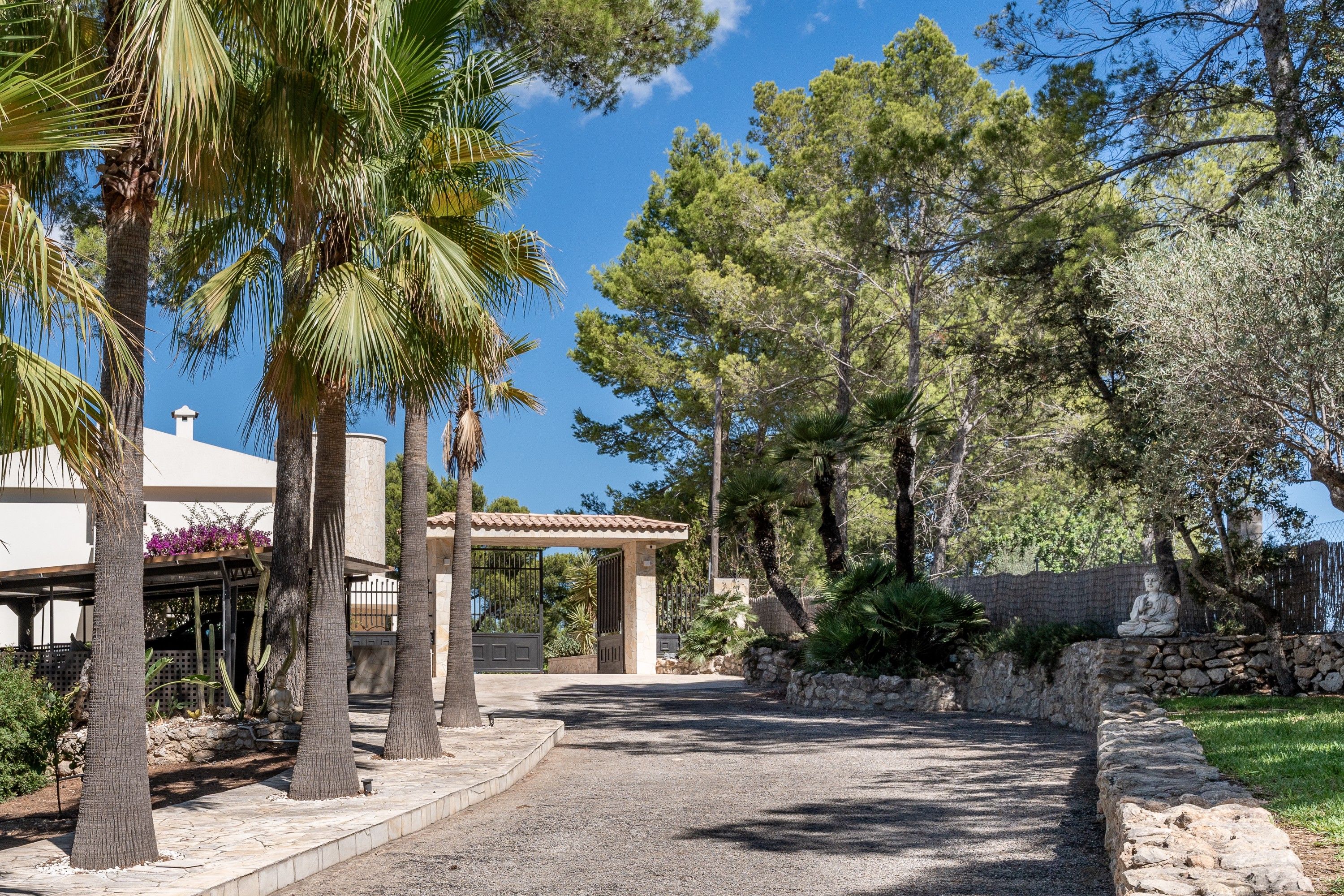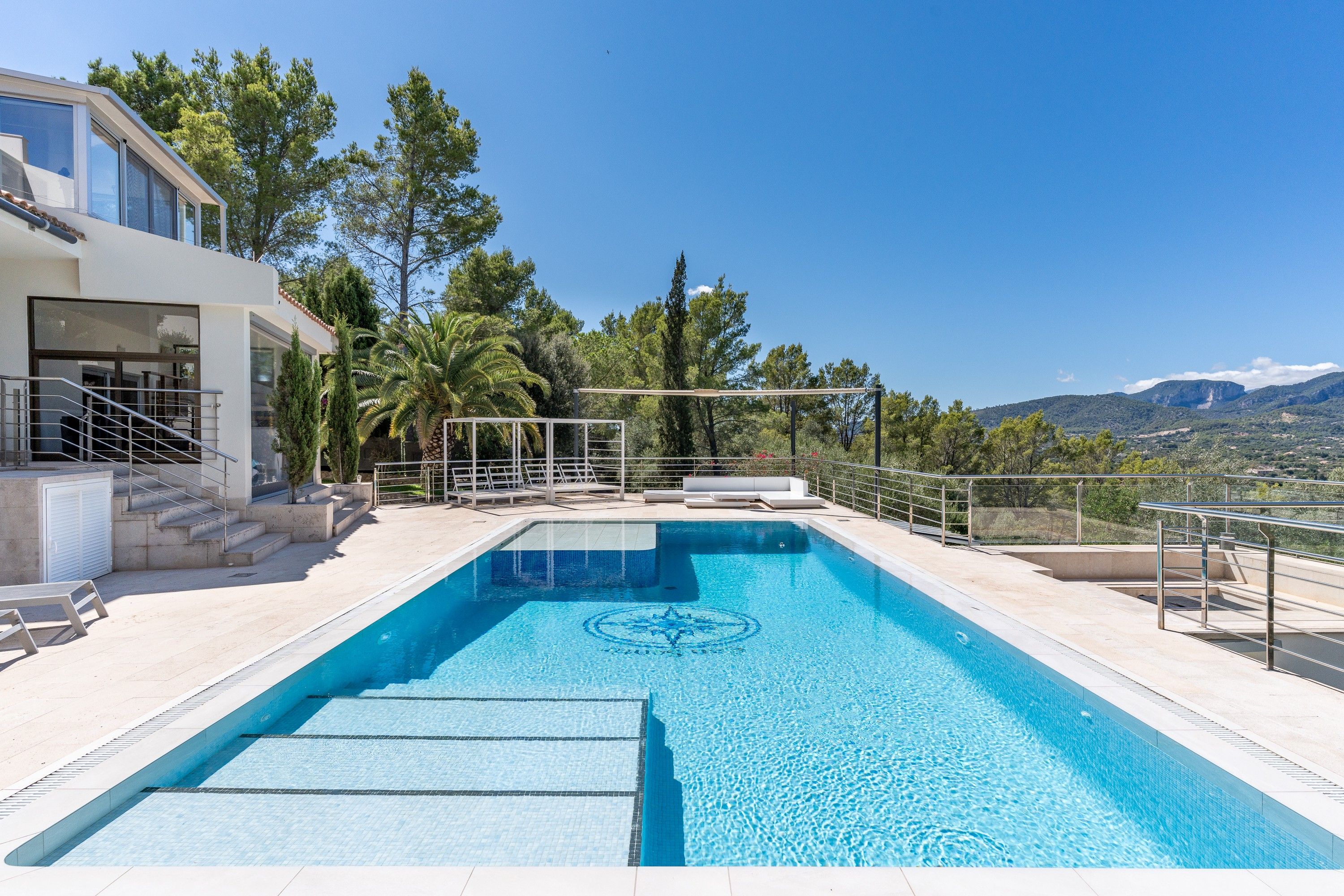 Denne villa ligger på de maleriske skråninger i Selva og skiller sig ud ved sin eksklusivitet og førsteklasses beliggenhed. Den er omgivet af frodige naturlandskaber og byder på en enestående udsigt over det majestætiske Sierra de Tramuntana. Ved ankomsten fører en elegant indkørsel dig til hovedhuset, der er omgivet af en rummelig og omhyggeligt vedligeholdt have, der udstråler ro og skønhed.