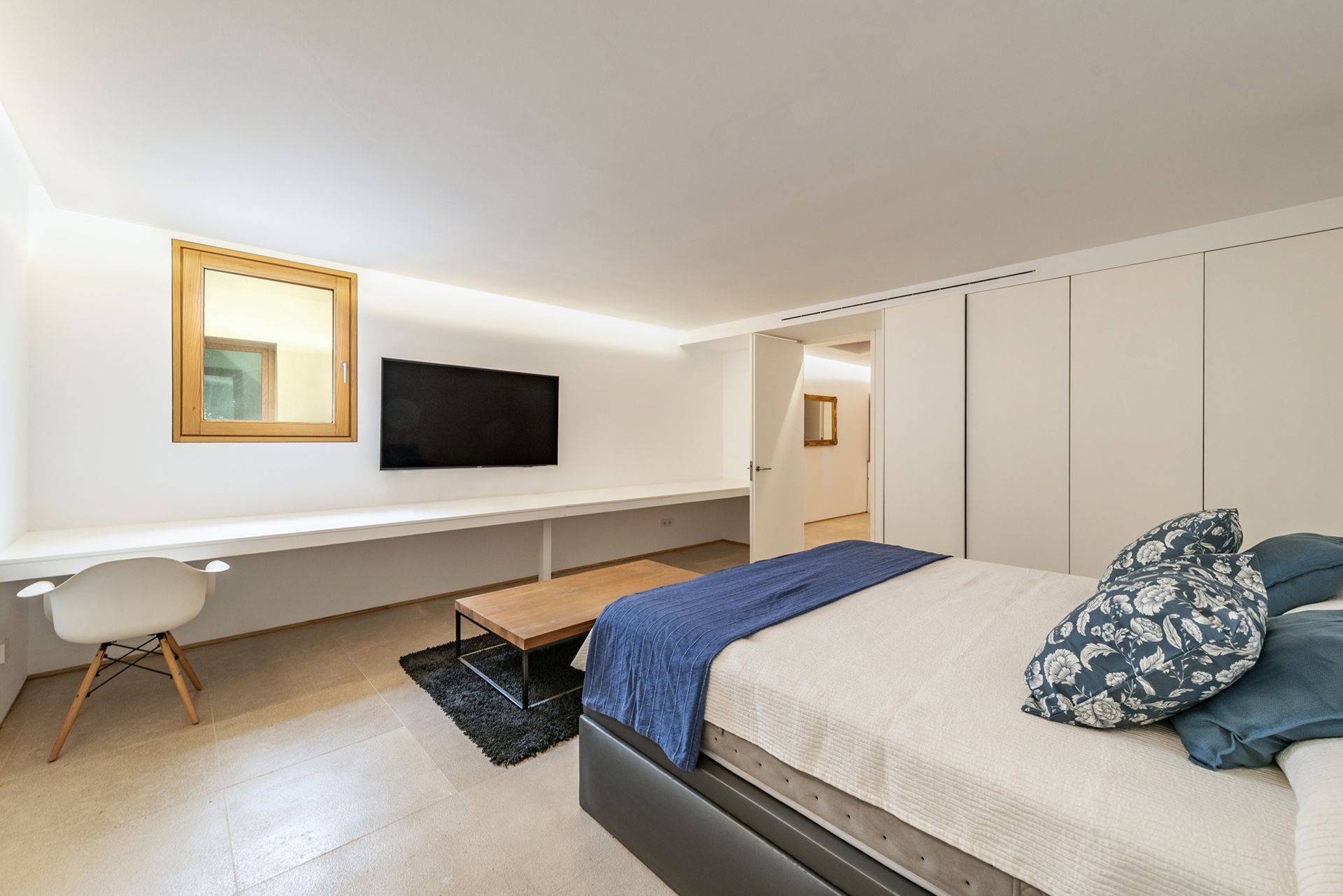 Beliggende i det idylliske landskab på det nordlige Mallorca, kun en kilometer fra Pollença og kun få minutters kørsel fra øens smukkeste strande, finder du denne storslåede nybyggede villa, der perfekt kombinerer moderne design, topmoderne teknologi og enestående komfort.