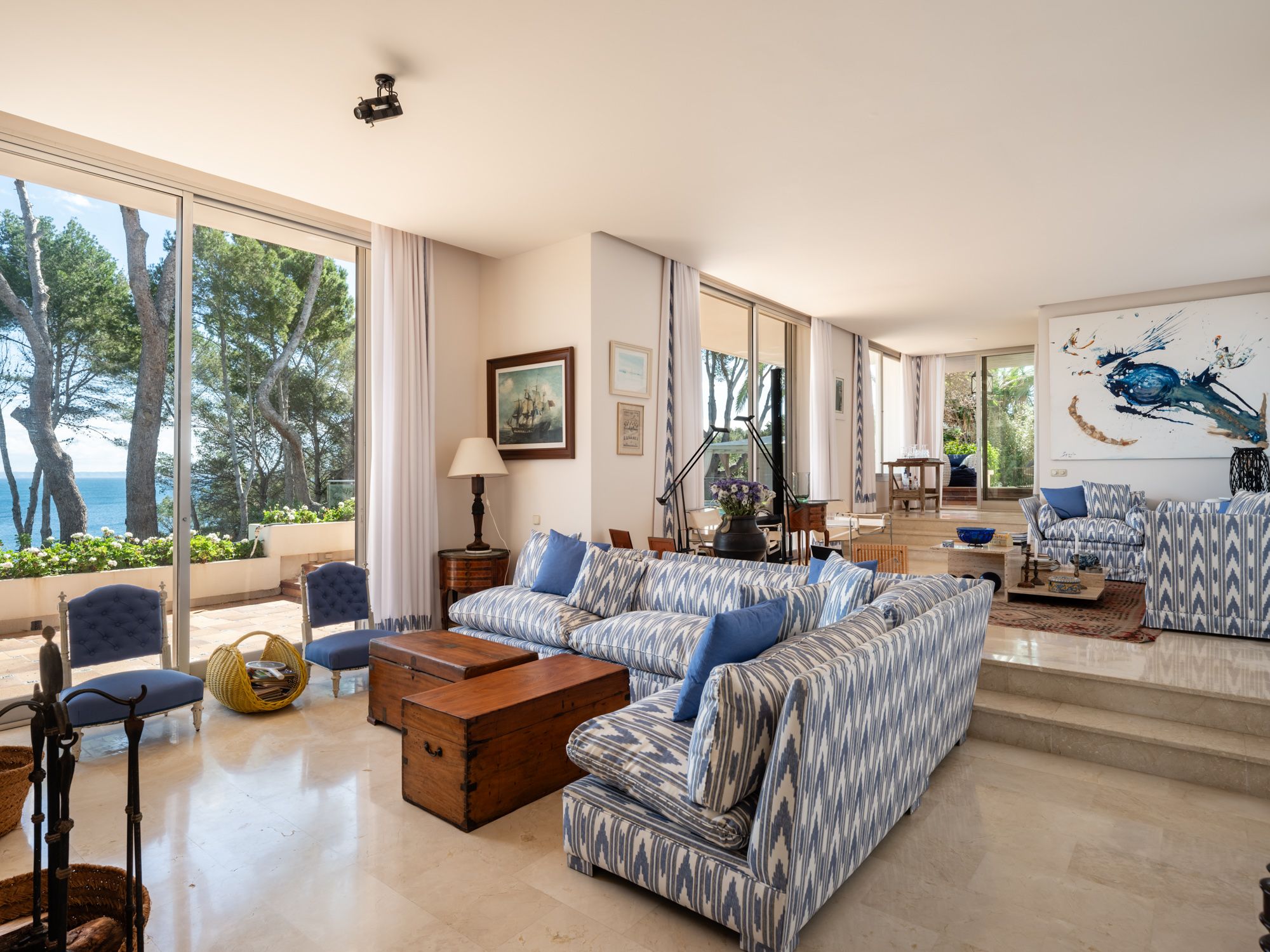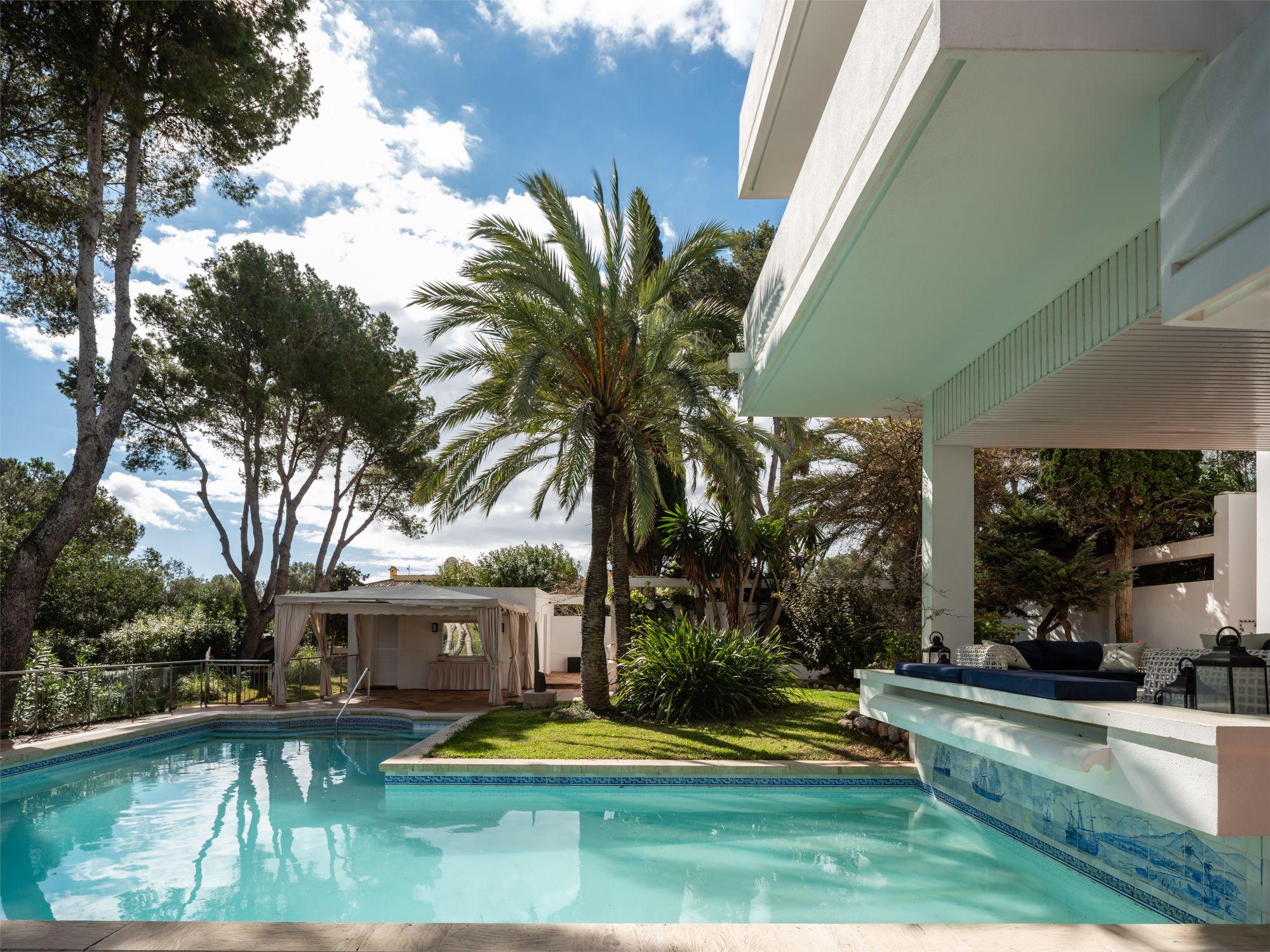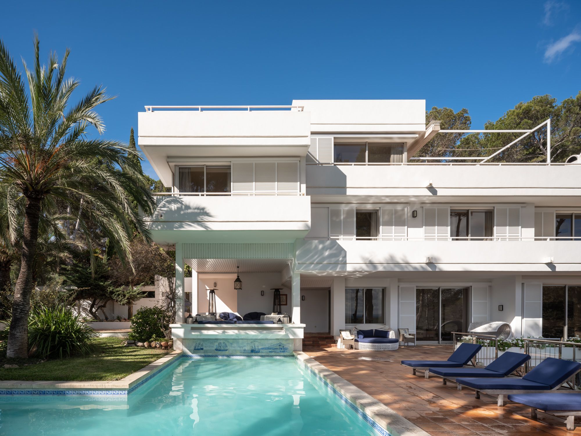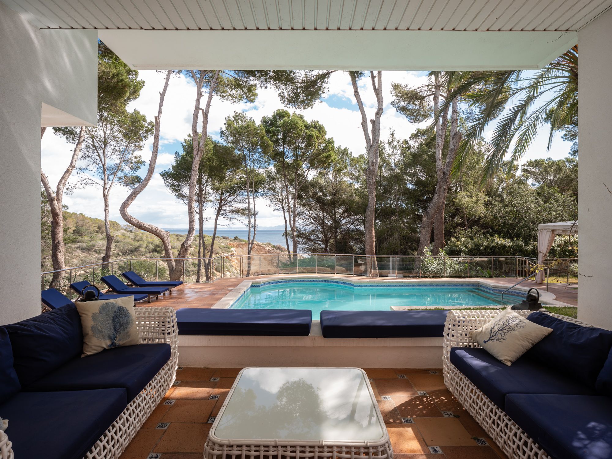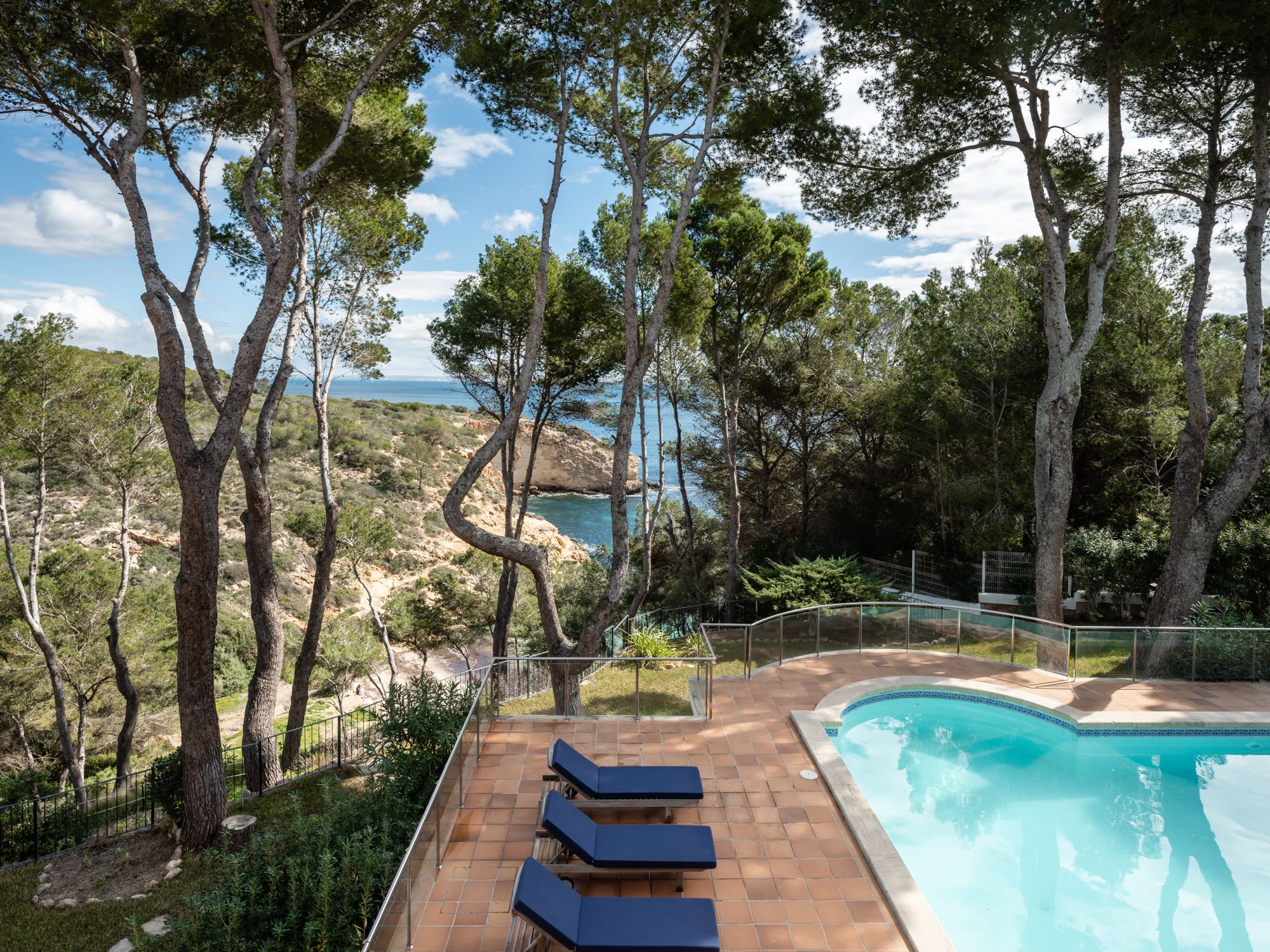 Villaen har en enestående beliggenhed på strandpromenaden i Sol de Mallorca på en stor grund på ca. 4000 m2 med privat adgang til en lille sandstrand og turkisfarvet vand. Ejendommen blev bygget i 1986 og er i sin oprindelige stand, hvilket gør det til den perfekte mulighed for den fremtidige ejer at omdanne det til deres drømmehus. Boligarealet på ca. 500 m2 er fordelt på tre etager og byder på mange soveværelser (i øjeblikket 7), badeværelser og opholdsrum. Udendørsområdet med store terrasser, have og pool er ideelt til at underholde gæster eller en stor familie. Husets beliggenhed, det absolutte privatliv og den lette og direkte adgang til havet er en sand luksus, som kun få ejendomme på Mallorca kan tilbyde. Det eksklusive Sol de Mallorca-kvarter ligger kun 20 km fra Palma og en kort køretur fra den fremadstormende Port Adriano. Den etablerede Puerto Portals butikker, faciliteter og infrastruktur ligger i umiddelbar nærhed.