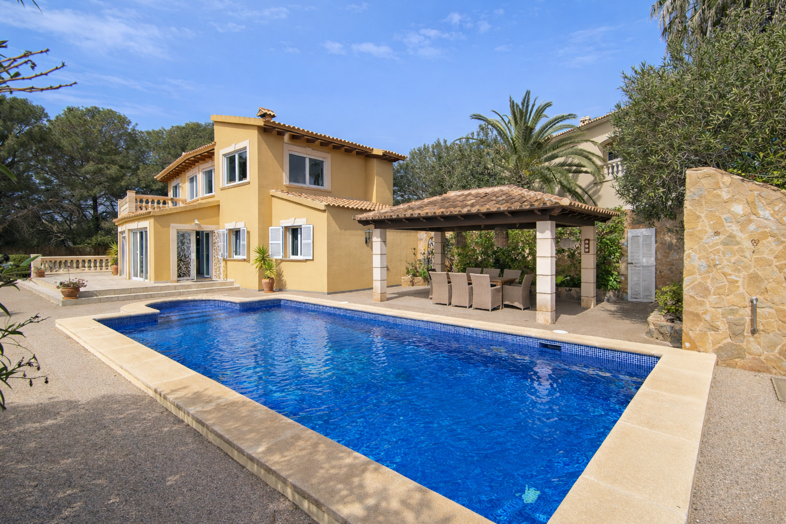Type: Hus • Region: Sydpå • Byggeår: 1993 • Samlet areal: 219 ㎡ • Værelser: 5 • Soveværelse: 3 • Badeværelse: 3 • Boligareal: 219 ㎡ • Grundstykke: 812 ㎡ • Altaner: 1 • Parkeringspladser: 3 • Terrasse • Indbygget køkken • Pejs • Svømmebassin • Gæstetoilet • Varmeform: Decentral klimaanlæg • Gulvbelægning: Fliser