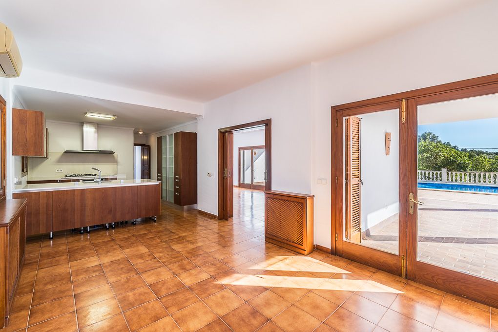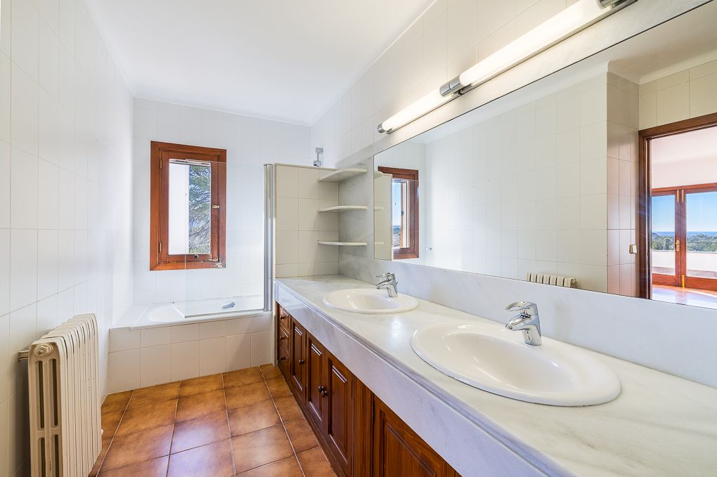 Denne villa med stort potentiale for renovering ligger i en lille urbanisering i Bunyolas omgivelser, som er nedsænket i naturen og samtidig meget godt beliggende: afstanden til Bunyola (5 minutter i bil), til Marratxí, til Santa María (10 minutter) og til Palma (20 minutter) gør livet let. Huset er sydvendt og velegnet som kapitalinvestering såvel som til realisering af ens drømmehus. Den rolige beliggenhed såvel som den vidunderlige panoramaudsigt over havet giver de bedste betingelser.