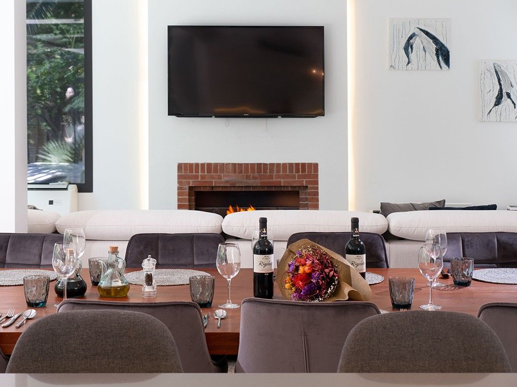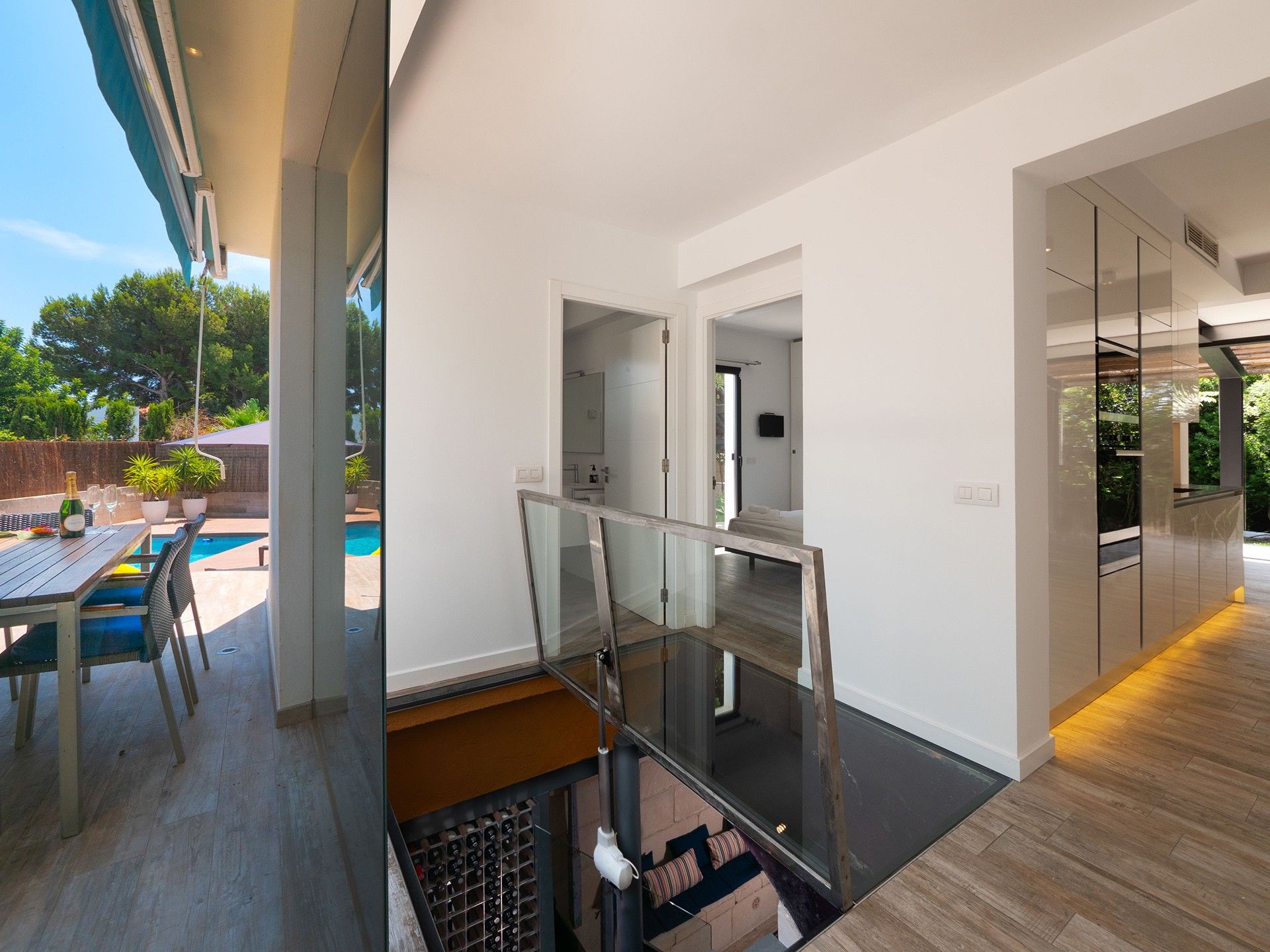 Der Innenbereich ist fließend gestaltet und bietet Wärme und Stil in jedem Detail, ideal sowohl für Unterhaltung als auch für ruhige Entspannung.