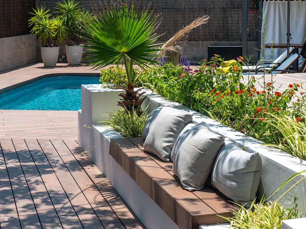 Treten Sie ein in Ihr eigenes mediterranes Paradies. Der Außenbereich ist auf puren Genuss und Privatsphäre ausgelegt: