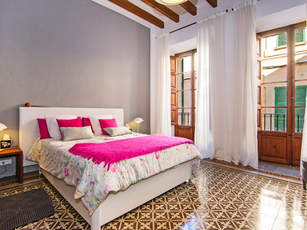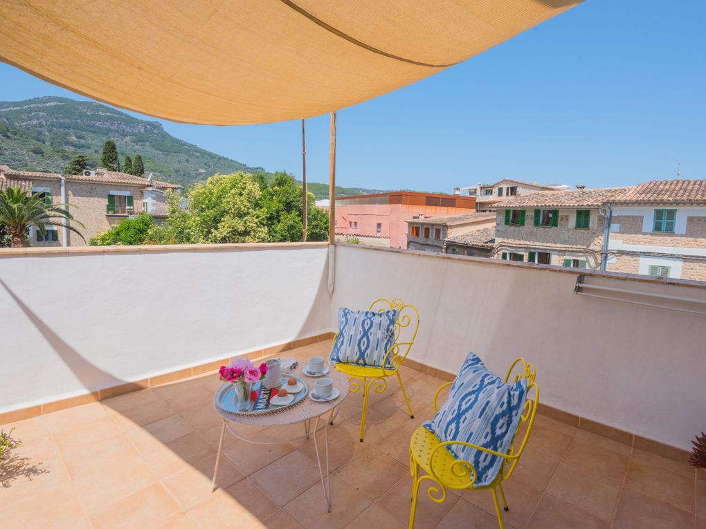 Dieses restaurierte traditionelle Stadthaus liegt in unmittelbarer Nähe zum Hauptplatz von Sóller. Von der mit Original-Stein gestalteten "Entrada" führt eine Treppe zum Zwischengeschoss mit Küche und Ess/Wohn Bereich mit einem offenen Kamin. Im unteren Bereich des Hauses gibt es zwei geräumige Kellerräume. Im ersten Stock befindet ist das Hauptschlafzimmer sowie ein weiteres Schlafzimmer, ein Bad und ein Wohnzimmer mit Ausgang auf die sonnige Terrasse. Auf der oberen Ebene befindet ein weiteres Schlafzimmer, welches als Studio genutzt wird und ebenfalls eine grosse überdachte Veranda.