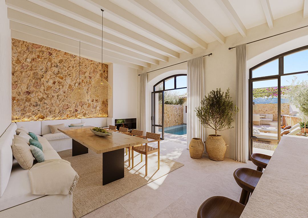Das Ergebnis dieses einzigartigen Projekts ist die perfekte Mischung aus traditioneller mallorquinischer Architektur und modernem Design. Der Außenbereich wird über einen einladenden Innenhof mit Grünflächen, einen gemütlichen Essbereich im Freien und einen Pool verfügen.