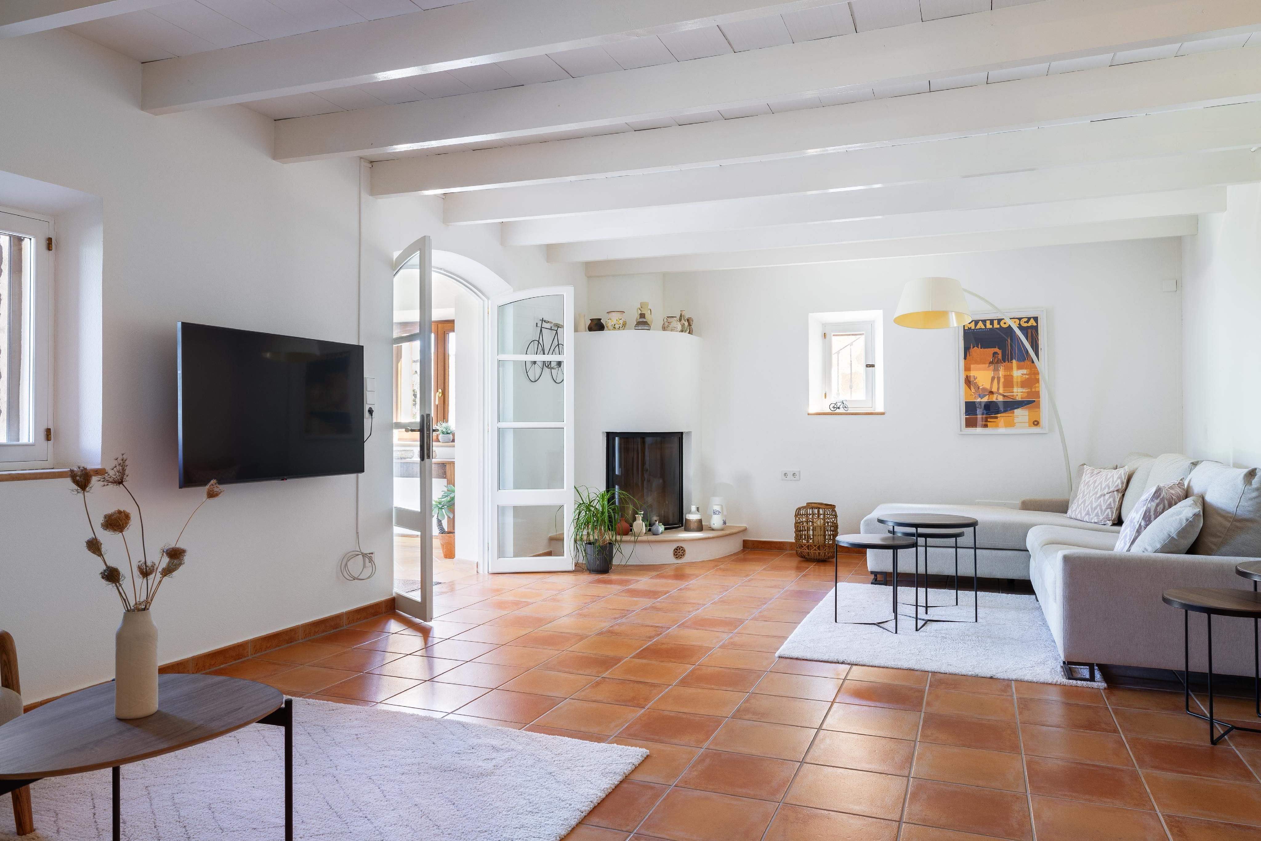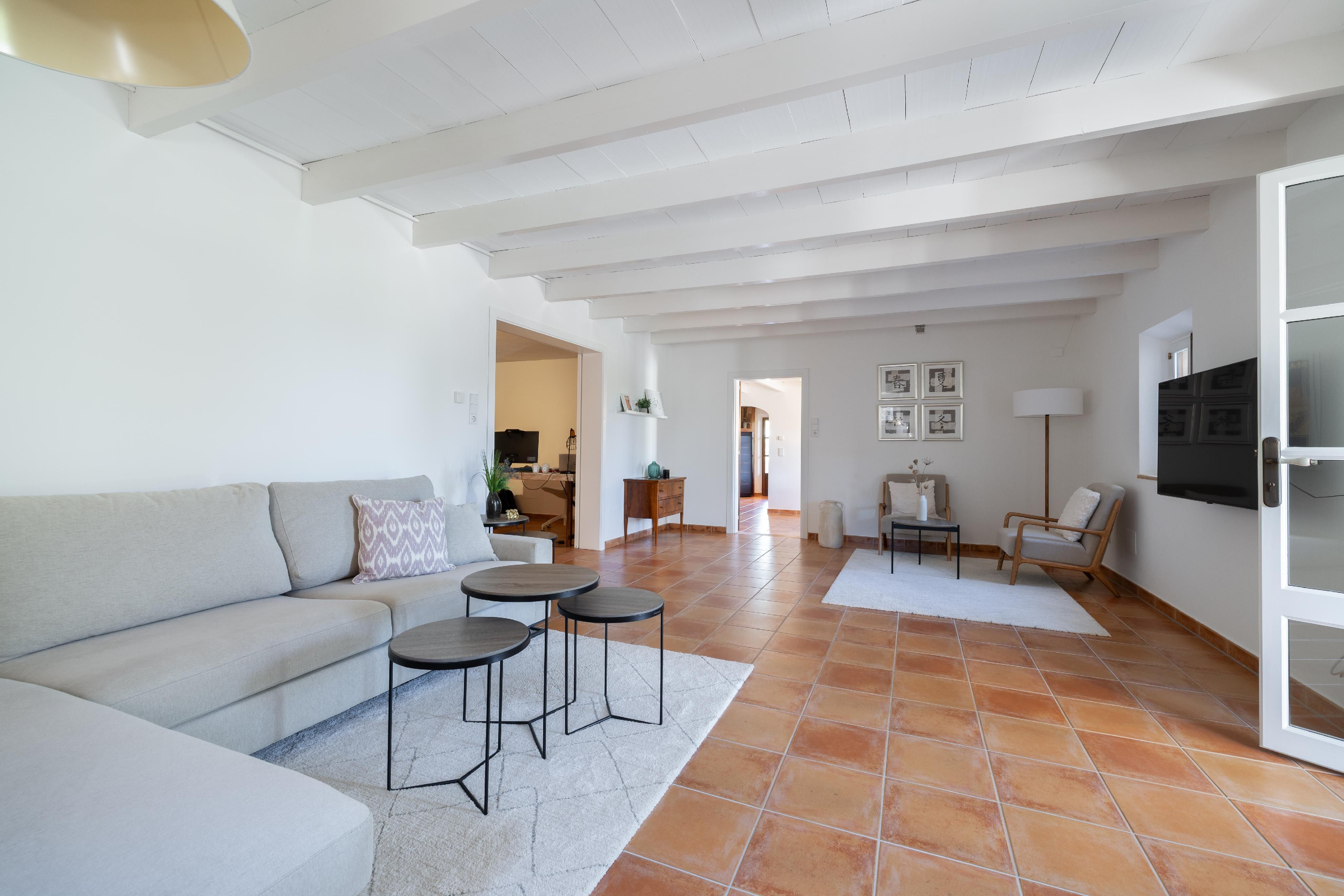 Typ: Finca • Region: Inselmitte • Baujahr: 2007 • Letzte Restaurierung: 2023 • Gesamtfläche: 378 ㎡ • Zimmer: 9 • Schlafzimmer: 4 • Badezimmer: 4 • Wohnfläche: 378 ㎡ • Grundstück: 1,7 ㏊ • Stellplätze: 2 • Terrasse • Einliegerwohnung • Einbauküche • Kamin • Pool • Heizungsart: Zentralheizung, Fußbodenheizung, Split-Klimaanlage • Heizungsart: Ölheizung • Bodenbelag: Fliesen