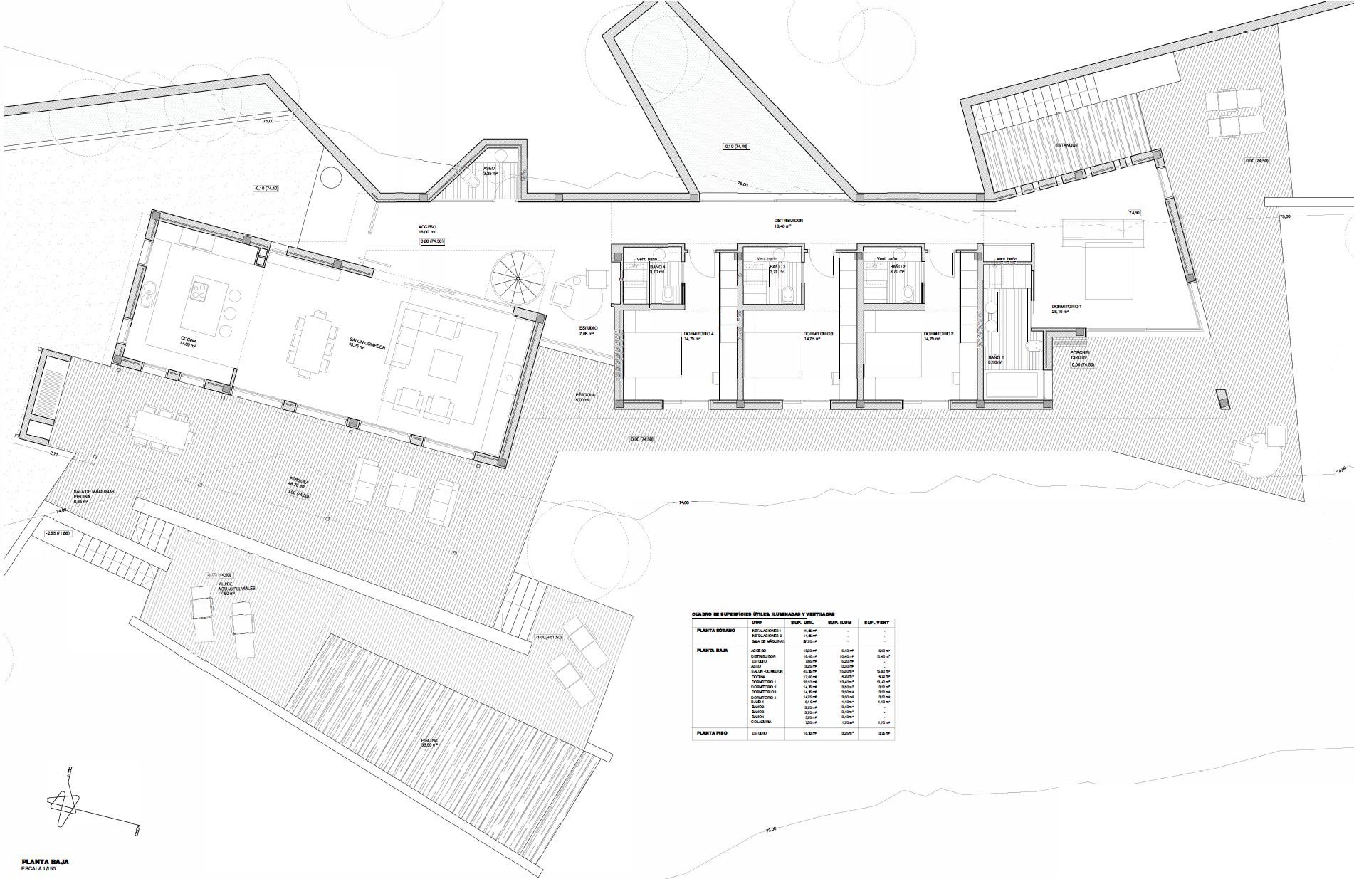 Typ: Finca • Region: Nord • Gesamtfläche: 564 ㎡ • Schlafzimmer: 4 • Badezimmer: 4 • Grundstück: 2,89 ㏊ • Stellplätze: 4 • Terrasse • Pool • Gäste WC • Heizungsart: Zentrale Klimaanlage