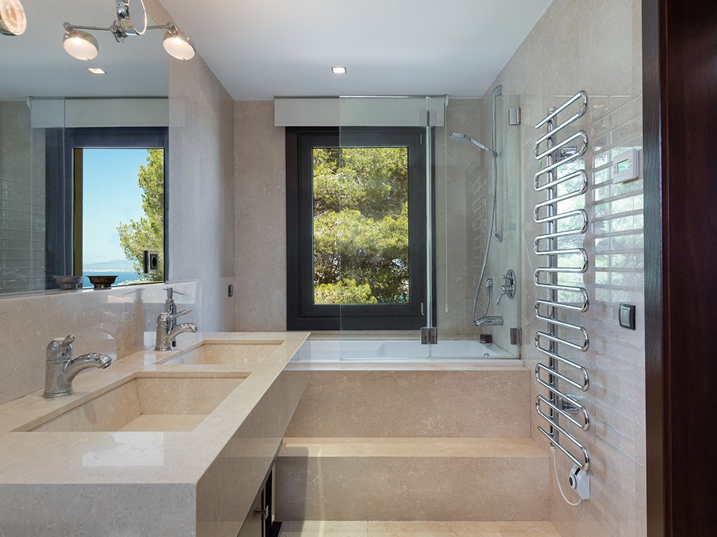 Diese ganz besondere Villa mit malerischem Blick auf die Bucht von Palma und das Meer befindet sich in der angesehenen Gegend von Cas Català und ist auf 3 Etagen verteilt und von einem üppigen Garten, einem großen Pool und einem Tennisplatz umgeben, was sie zu einer einzigartigen und privilegierten Immobilie ohne Vergleich im Südwesten Mallorcas macht. Die Villa, die sich auf einem Grundstück von 2.393 m² befindet und auf drei Etagen verteilt ist, verfügt über sechs Schlafzimmer, sechs Bäder, einen sehr geräumigen offenen Wohn-/Essbereich mit angrenzender voll ausgestatteter Küche, ein Büro, ein zusätzliches Wohnzimmer, einen Fitness- und Wellnessbereich, einen separaten Waschraum sowie eine Garage für drei Autos. Der Außenbereich verfügt über einen 85 m² großen Swimmingpool, weitläufige Terrassen und einen Pavillon mit Lounge-Bar und Grillplatz, die alle einen spektakulären Meerblick bieten. Weitere Extras sind: Fußbodenheizung, Klimaanlage w/k, Gaskamin und Marmorböden.