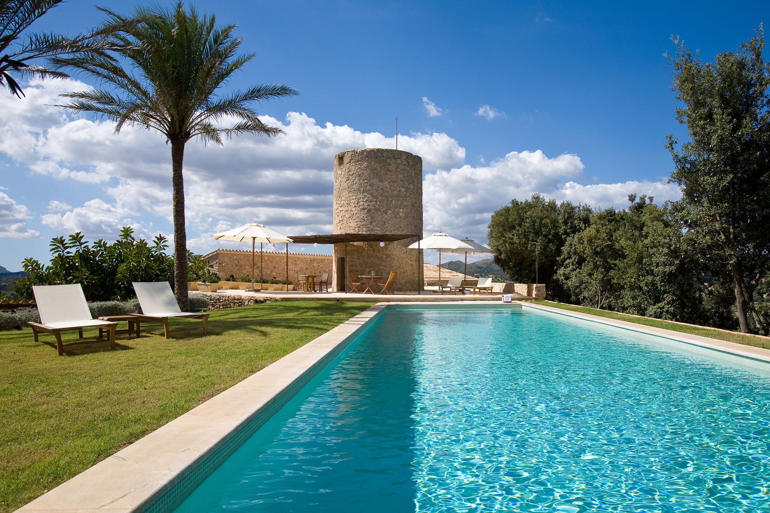 Dieses beeindruckende Anwesen hat einen traumhaften Blick auf Arta, die umgebende Berglandschaft und das Meer. Die sehr elegante Villa kombiniert rustikale Details mit einem modernen Ambiente. Im Jahr 2007 wurden grundlegenende Umbau- und Renoierungsmaßnahmen abgeschlossen und das Haus technisch hochwertig ausgestattet. Neben dem Haupthaus mit großen Terrassenflächen und schönem Garten verfügt das Anwesen über zwei separate Gästeapartments und ein separates Gästehaus mit Bodega. Etwas abseits gelegen und uneinsehbar liegt der 15 m lange Pool, der erst kürzlich runderneuert und mit einer Abdeckung ausgestattet wurde. Zur Ausstattung des einmaligen Anwesens zählen Marmorböden, Fußbodenheizung und zentrale Klimaanlage im Haupthaus sowie Mikrozementböden, Zentralheizung mit Wandradiatoren und Split-Klimageräte in den Gästeunterkünften. Weitere Extras wie ein Entkalkungs- und Trinkwasserosmose-System, Alarmanlage und Sat-TV sind ebenfalls vorhanden. Das Anwesen verfügt über einen öffentlichen Stromanschluss und einen eigenen Brunnen. Ein weiteres Highlight dieser Immobilie ist der eigene Weinanbau mit einer jährlichen Produktion von bis zu 800 Flaschen. Ein außergewöhnliches Objekt für Liebhaber!