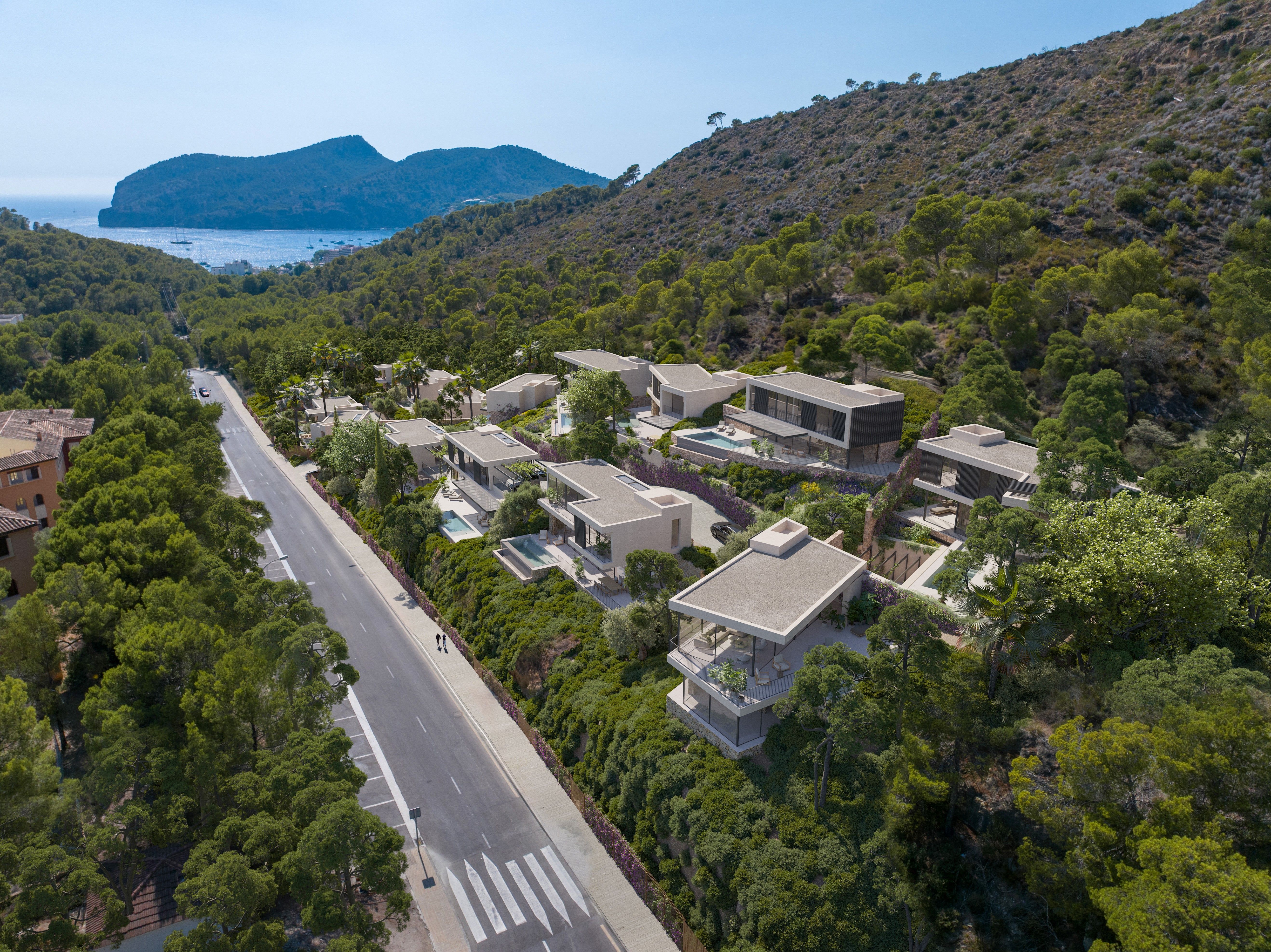 Mitten im Herzen des beliebten Südwesten Mallorcas, entsteht aktuell in ruhiger Lage, umgeben von einem weitläufigen Waldgebiet das exklusive Neubauprojekt Bonavida. Die insgesamt 15 freistehenden Villen mit südöstlicher Ausrichtung verfügen alle über einen privaten Pool sowie größtenteils über einen fantastischen Ausblick auf das Meer und die nahe gelegenen Malgrats-Inseln. Zahlreiche schöne Strände wie La Romana und Cala Fornells befinden sich ganz in der Nähe und der beliebte Yachthafen Puerto de Andratx mit seinen erstklassigen Restaurants und schönen Boutiquen ist ebenfalls nur wenige Fahrminuten entfernt. Zudem bietet sich die Gegend hervorragend zum Wandern an. Golfliebhaber können auf dem Golf de Andratx, der nur wenige hundert Meter entfernt liegt, ihrer Leidenschaft nachgehen.