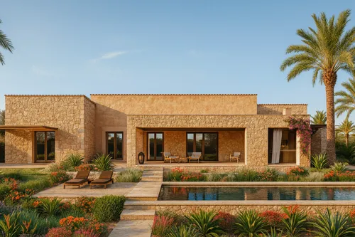 Die Finca selbst wird rund 265 m² Wohnfläche bieten, aufgeteilt in drei Schlafzimmer und drei Badezimmer sowie einen hellen, offenen Wohn-, Ess- und Küchenbereich mit Kochinsel. Große Terrassentüren verbinden den Innenbereich nahtlos mit dem großzügigen Außenbereich, der ein elegantes 35 m² großes Schwimmbecken, einen liebevoll angelegten Garten, verschiedene überdachte und offene Terrassen sowie einen Grill- und Lounge-Bereich umfasst. Weitere Extras sind ein Hauswirtschaftsraum und eine Doppelgarage. Besonders hervorzuheben ist der hohe Grad an Selbstversorgung: Das Wasser stammt aus einem eigenen Brunnen, Strom wird über eine moderne Solaranlage erzeugt und die Finca verfügt über ein eigenes Abwassersystem. Heizung und Kühlung erfolgen über eine moderne Luft-Wasser-Wärmepumpe.
