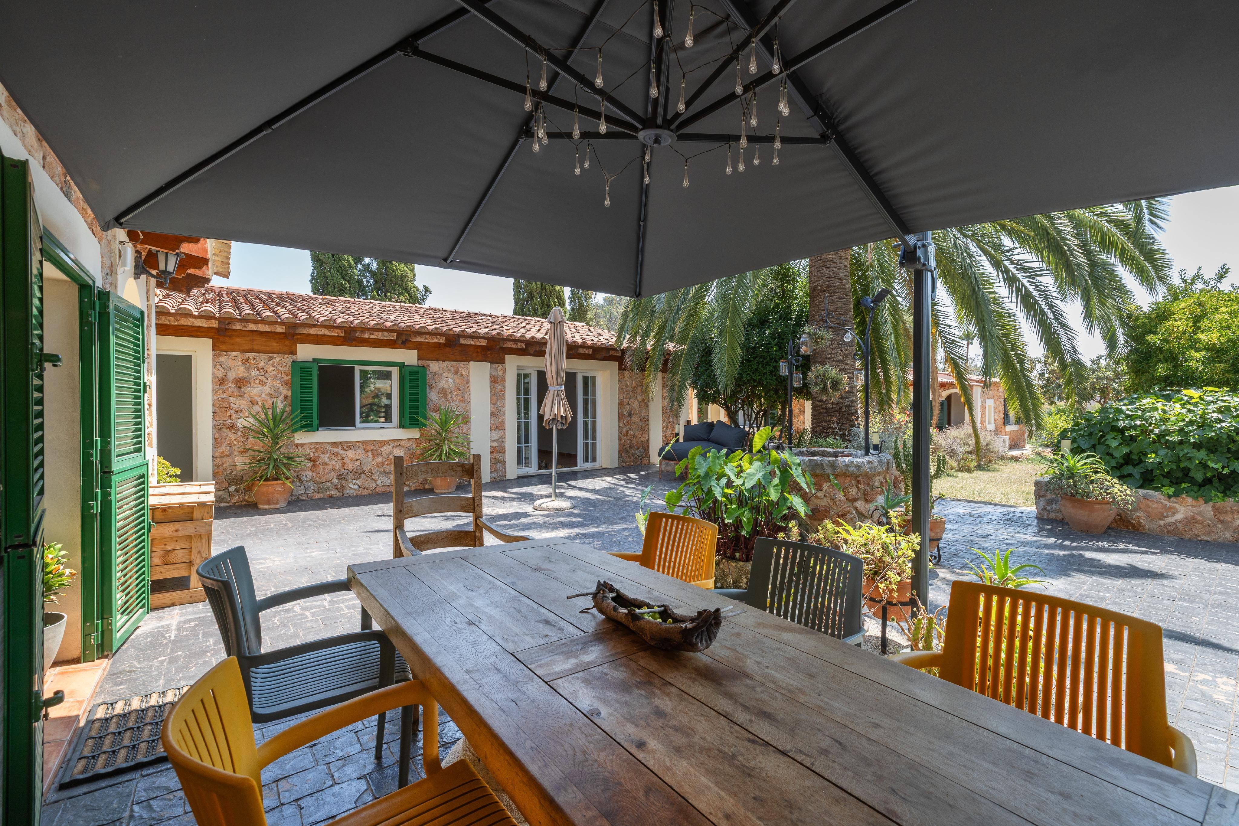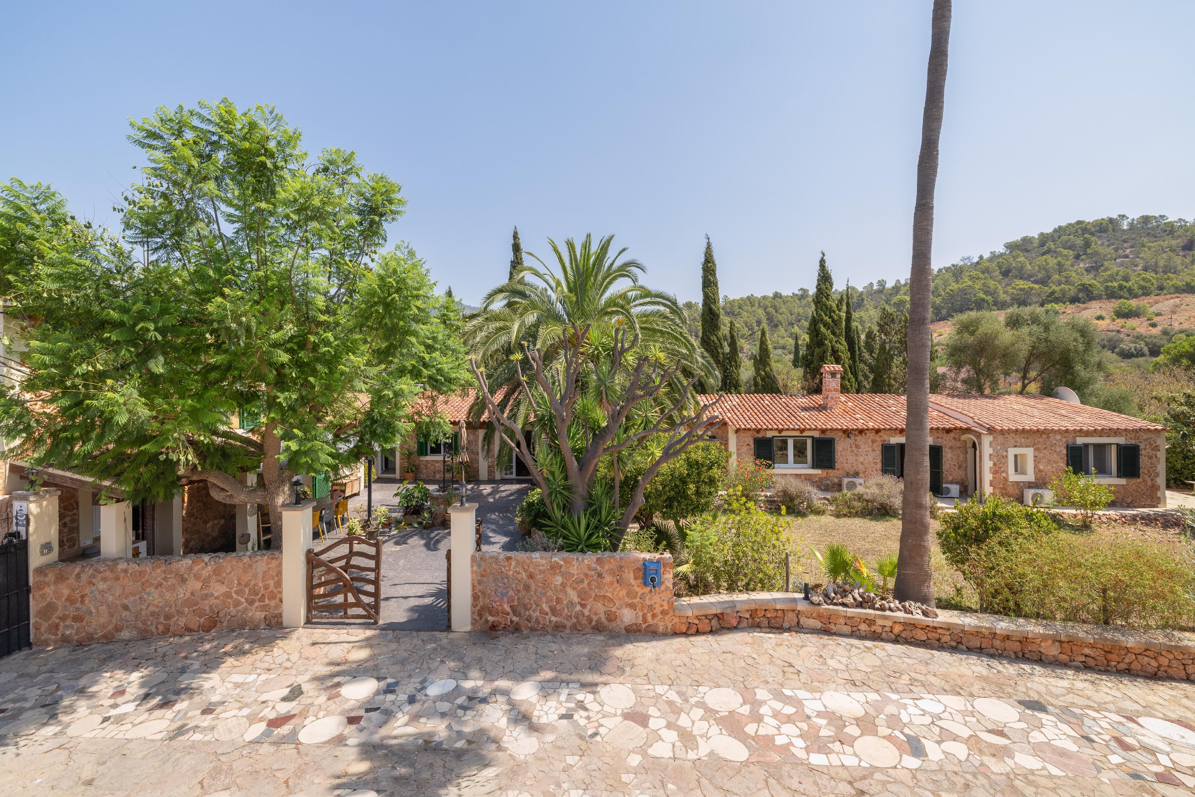Typ: Finca • Region: Inselmitte • Baujahr: 1958 • Letzte Restaurierung: 2021 • Gesamtfläche: 387 ㎡ • Zimmer: 8 • Schlafzimmer: 5 • Badezimmer: 4 • Wohnfläche: 387 ㎡ • Grundstück: 5.043 ㎡ • Balkone: 1 • Stellplätze: 4 • Terrasse • Einliegerwohnung • Einbauküche • Kamin • Klimatisiert • Pool • Gäste WC • Heizungsart: Split-Klimaanlage, Vollklimatisiert • Heizungsart: Solarheizung • Bodenbelag: Fliesen