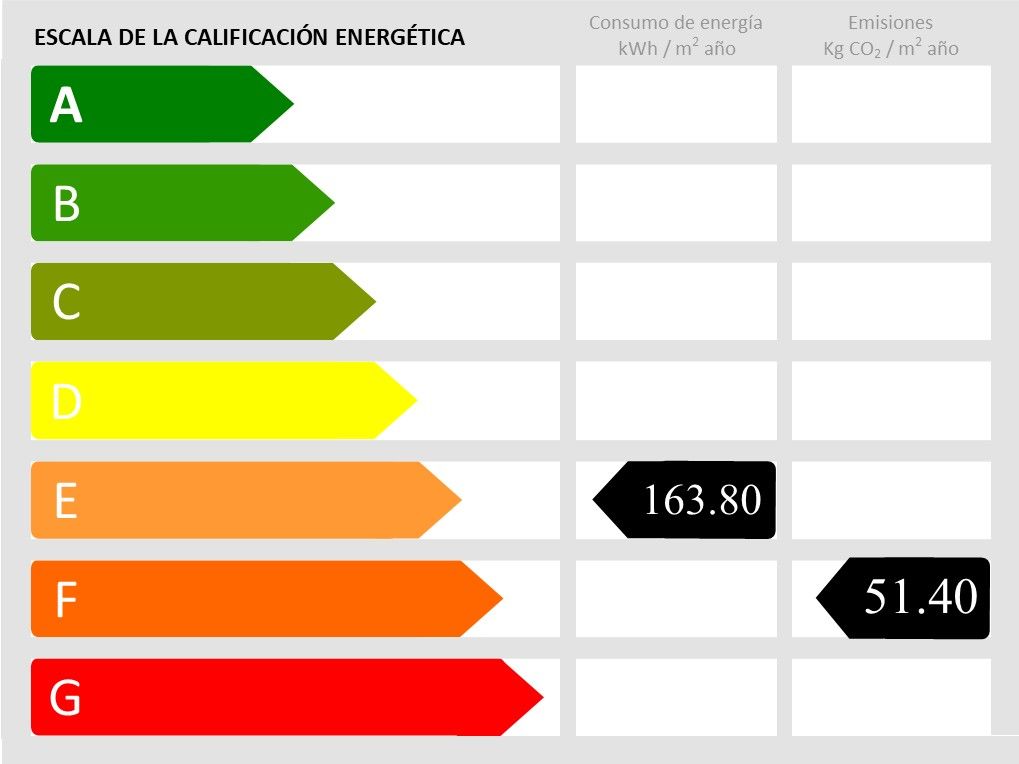 • CO2-Emission: 51.4 kg/m2 • CO2 Emissionsklasse: F • Energieeffizienzklasse: E