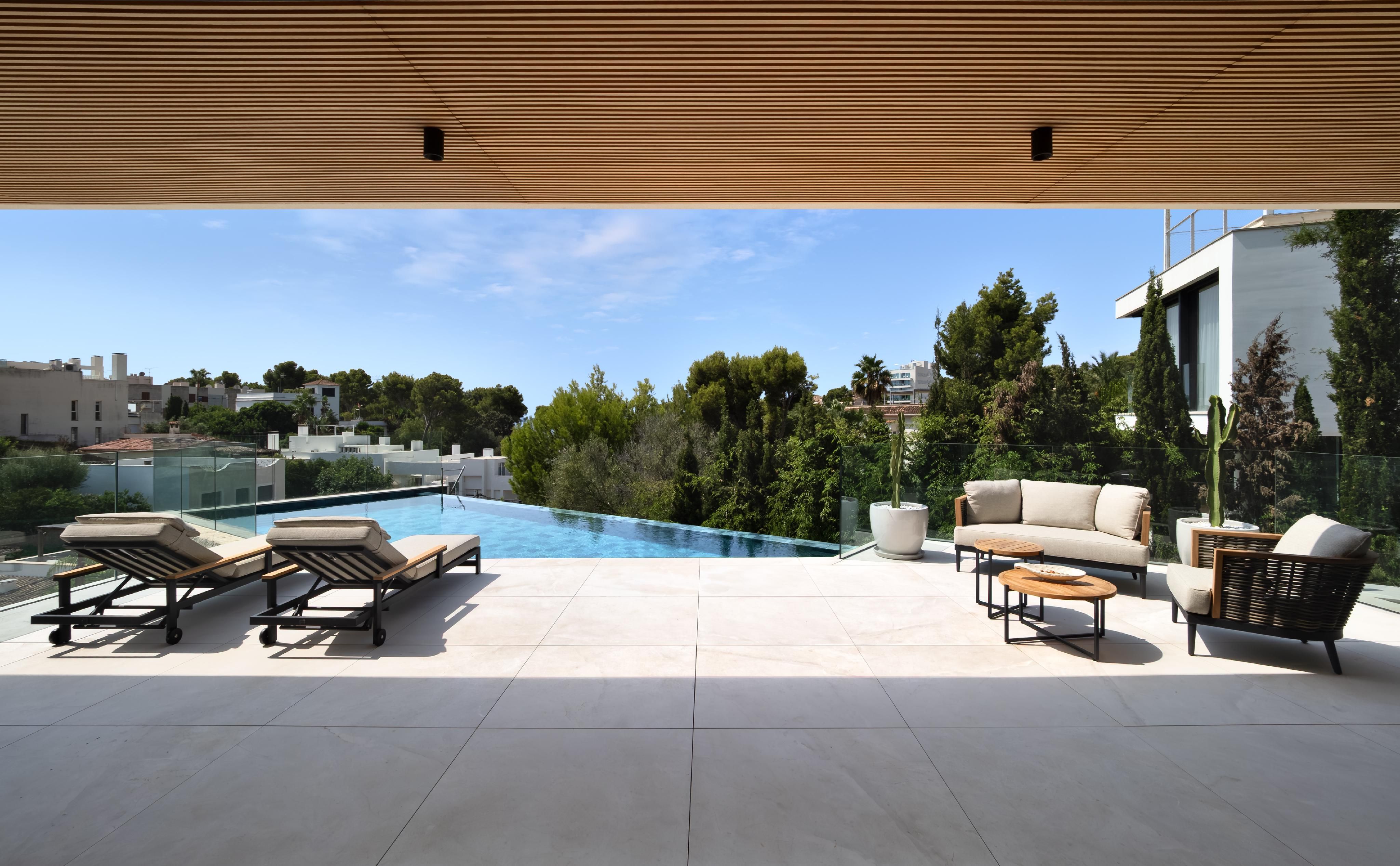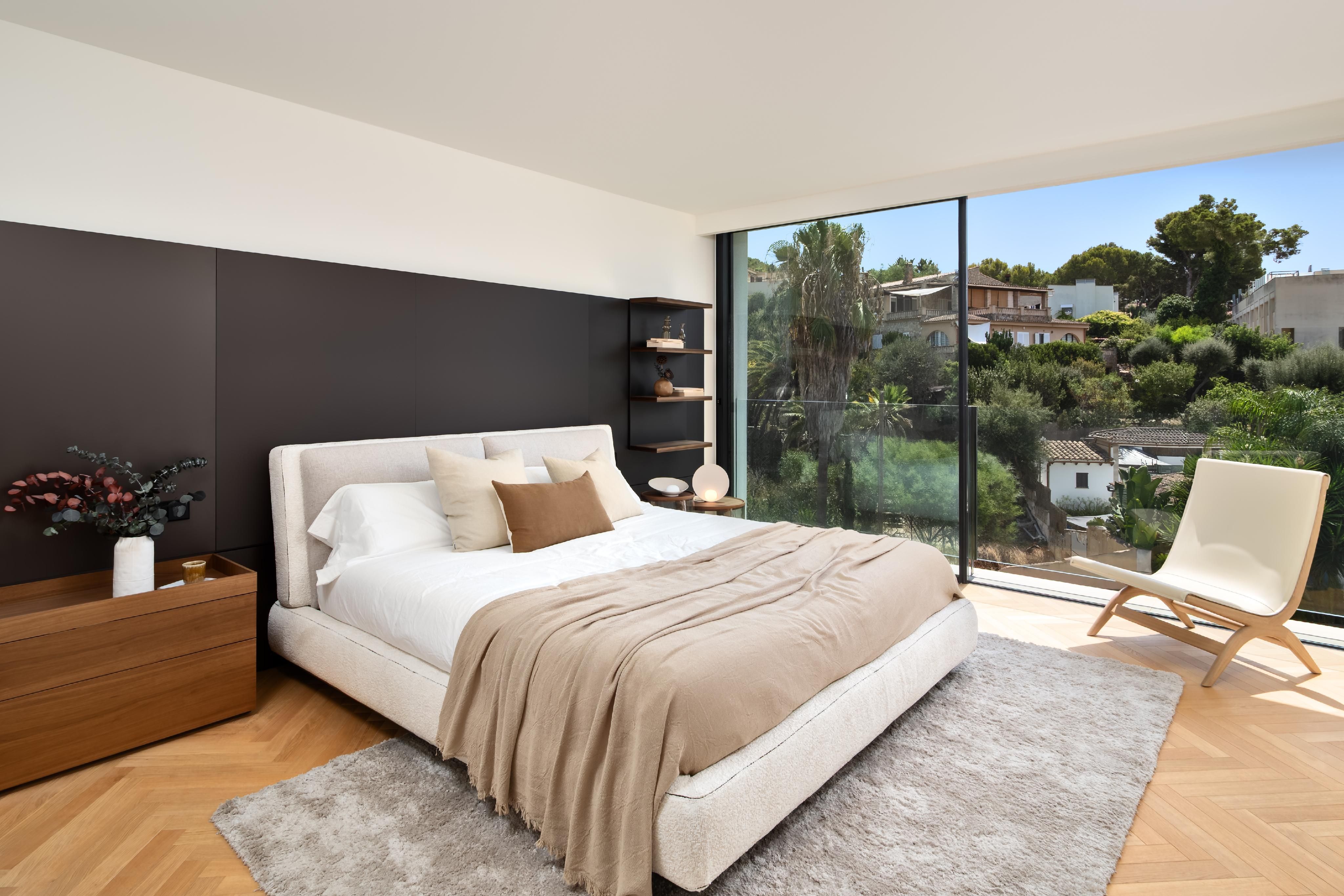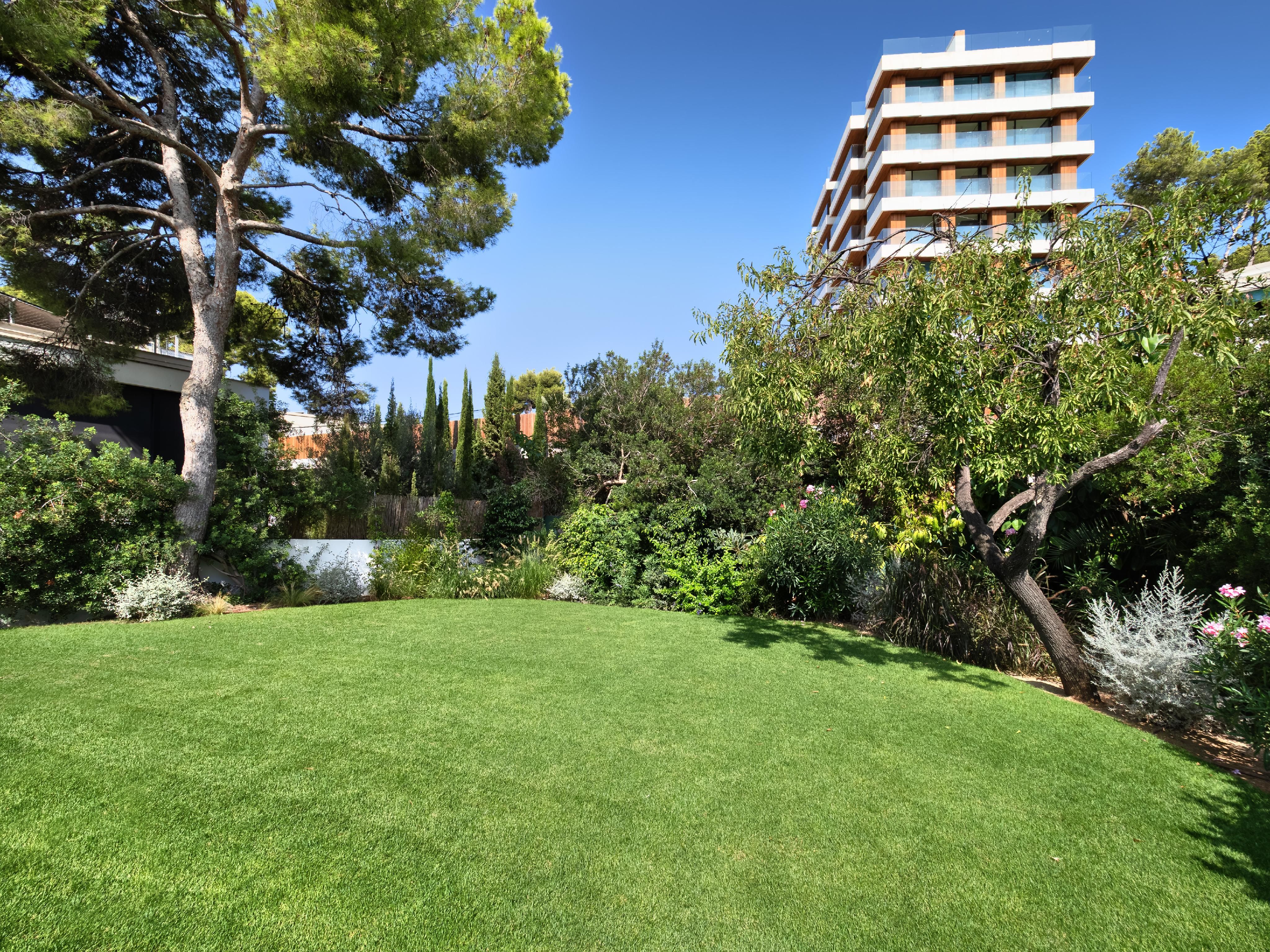 Nur einen kurzen Spaziergang vom Strand von Portals Nous entfernt, bietet diese bezugsfertige, neu gebaute Villa eine luxuriöse Ausstattung, die auch den anspruchsvollsten Käufer zufriedenstellt. Das Anwesen verfügt über vier Schlafzimmer, einen offenen Wohnbereich mit teilweisem Meerblick, einen Echtholzkamin und eine geräumige Siematic-Küche, die mit Gaggenau-Geräten ausgestattet ist. Vom Wohnbereich aus führen Türen auf großzügige Terrassen, die zu einem schönen beheizten Pool und einem üppigen Garten führen. Das Design der Villa betont die Wärme, mit Holz- und Steinböden und einer neutralen Farbpalette. Zu den weiteren Annehmlichkeiten gehören ein Aufzug, der alle Ebenen miteinander verbindet, eine Klimaanlage, eine Fußbodenheizung, eine Garage für ein Auto und ein sicherer Parkplatz für zwei weitere Fahrzeuge. Genießen Sie ein morgendliches Bad oder einen Ausflug mit dem Paddleboard am Strand von Portals Nous, der nur zwei Gehminuten entfernt ist. Der Hafen und das Dorf Portals Nous sind ebenfalls in 10 Minuten zu Fuß zu erreichen.