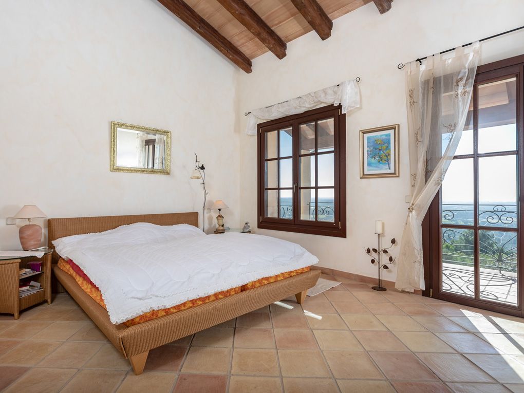 Hochwertige Villa mit insgesamt vier Schlafzimmern und drei Badezimmern sowie der Möglichkeit zum Ausbau des vorhandenen Kellers zum Fitnessraum und Sauna, sowie zwei weiteren Schlafzimmern. Die Aufteilung der Wohnfläche im Erd- und Obergeschoss ist in zwei separat voneinander nutzbare Wohnbereiche geteilt. Die Immobilie wurde mit hochwertigen Materialien fertiggestellt und ist in Hand der Erstbesitzer. Die fünf Meter hohen Decken im 120 m² großen Wohn/- Essbereich verleihen den Räumen eine einmalige Großzügigkeit. Bei der Ausstattung wurde auf alle Details viel Wert gelegt, was sich in den aufklappbaren Aluminiumfensterläden, Sicherheitsverglasung, handgemachter Keramikfliesen und Fußbodenheizung über Warmwasser wiederspiegelt, um einige der Ausstattungshighlights zu nennen. Entspannung findet man auf den optimal ausgerichteten Terrassenflächen von ca. 200 m² welche in der kühleren Jahreszeit optimalen Windschutz bieten. Am Pool, wo sich ein weiteres Bad befindet, genießt man eine traumhafte Aussicht bis auf die Bucht von Palma. Die Sommerküche ist der ideale Ort um laue Sommerabende mit einem leckeren Barbecue beim Sonnenuntergang ausklingen zu lassen. Weitere Ausstattungsmerkmale: Fußbodenheizung mit heißem Wasser, wahlweise über Öl oder Solarstrom, Anschluss an den Gemeinschaftsbrunnen der Gemeinde und eine Regenwasserzisterne zur Bewässerung.