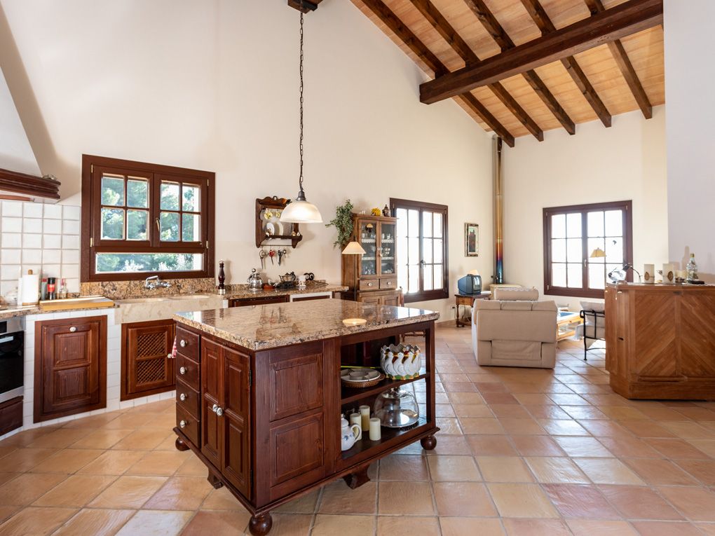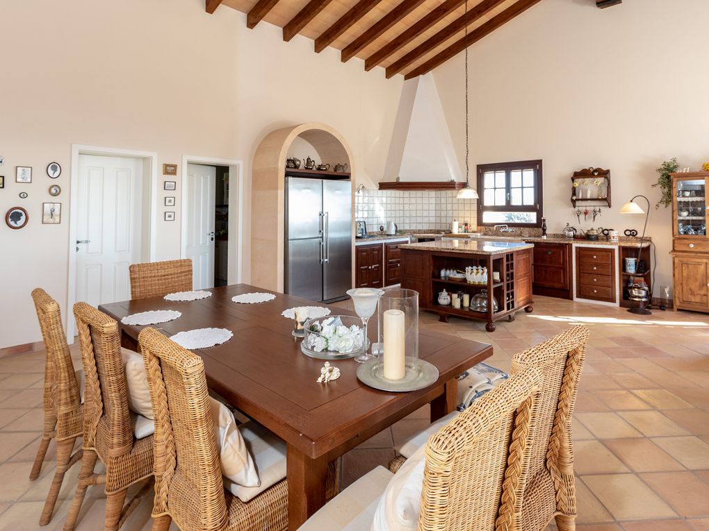 Typ: Finca • Region: Inselmitte • Baujahr: 2007 • Gesamtfläche: 860 ㎡ • Zimmer: 5 • Schlafzimmer: 4 • Badezimmer: 3 • Wohnfläche: 860 ㎡ • Grundstück: 7.286 ㎡ • Stellplätze: 2 • Terrasse • Einbauküche • Kamin • Pool • Heizungsart: Fußbodenheizung • Heizungsart: Ölheizung, Solarheizung • Bodenbelag: Fliesen