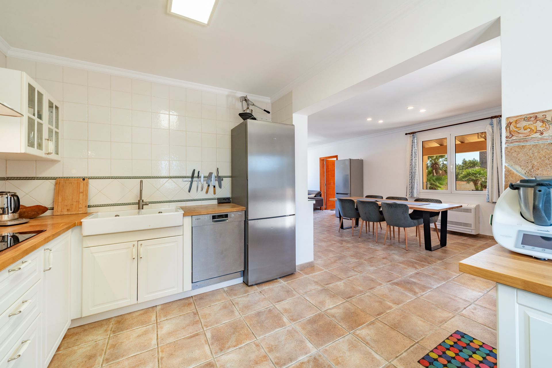 Auf einem Grundstück von über 20.000 Quadratmetern erhebt sich die teilweise renovierte Finca, die mallorquinischen Charakter mit modernem Komfort vereint. Das Haus verfügt über vier Schlafzimmer und drei Badezimmer. Im Erdgeschoss öffnet sich die moderne Küche hin zum lichtdurchfluteten Wohn- und Essbereich, wo ein Pelletofen und eine Klimaanlage für ein angenehmes Ambiente sorgen. Auf dieser Ebene befinden sich zudem ein Schlafzimmer, ein Badezimmer, die praktische Waschküche mit direktem Zugang zum Außenbereich sowie eine überdachte Terrasse, die zum Verweilen einlädt.