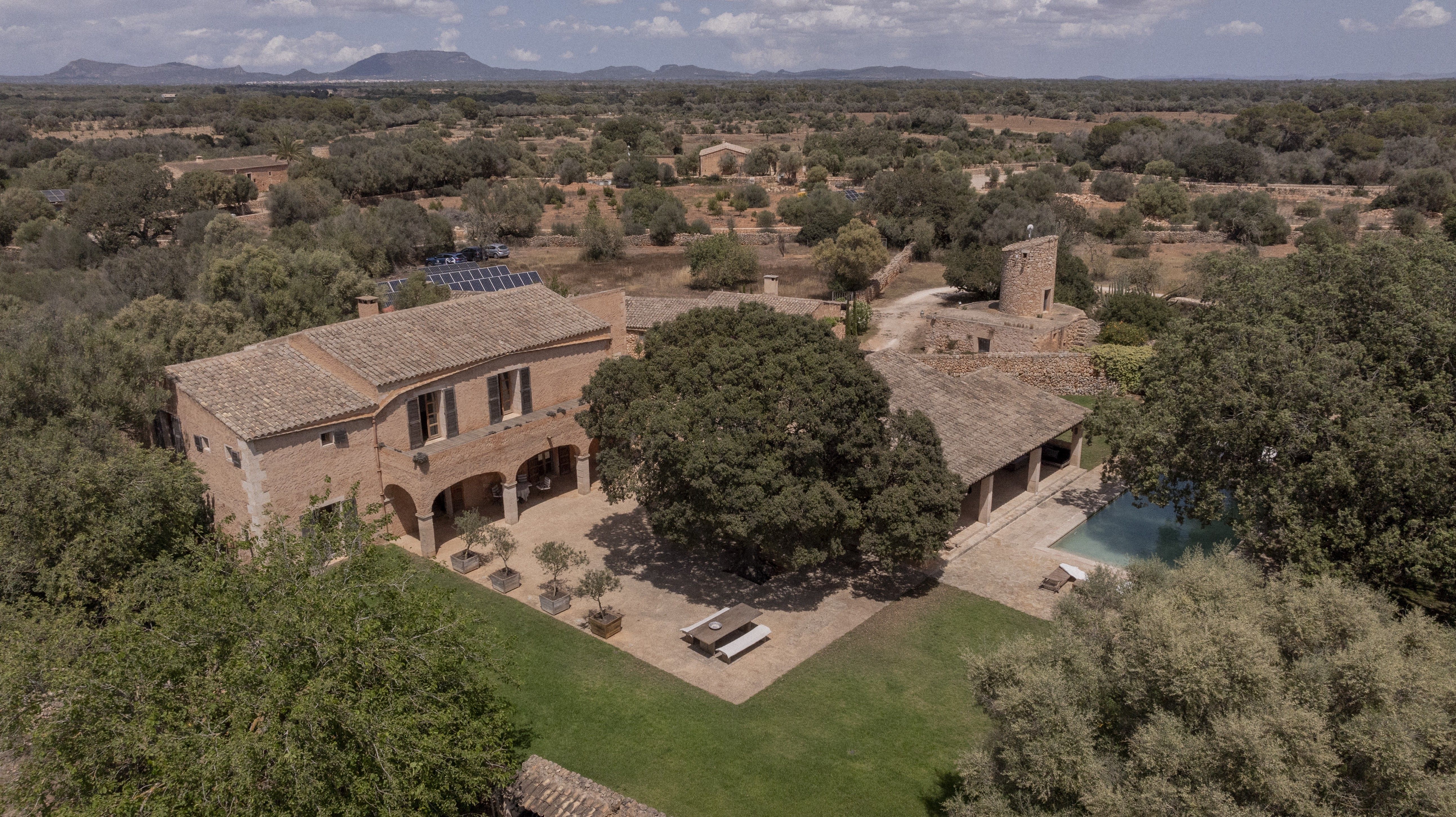 Die Immobilie besteht aus fünf Gebäuden: dem Haupthaus mit einem angrenzenden Gästehaus, einem Poolhaus mit Sauna, dem Büro/Fitnessstudio mit großer Terrasse mit Blick auf den Pool, einem traditionellen Windmühlenturm und Casa Maria als weiteres separates Gästehaus mit einem Außen-Grill. Insgesamt gibt es sechs große klimatisierte Schlafzimmer und sechs Badezimmer, alle mit Fußbodenheizung. Das Interieur wurde 2023 modernisiert, unter Beachtung der mediterranen Architektur, einschließlich neuer Geräte der Spitzenklasse und High-Speed-WLAN im gesamten Anwesen. Solarenergie, ein moderner Notstromgenerator und effiziente Wärme- und Wasserinstallationen gewährleisten, dass diese Immobilie vollständig autark ist und minimale Umweltauswirkungen hat (Gesamtenergieeffizienzklasse: A).