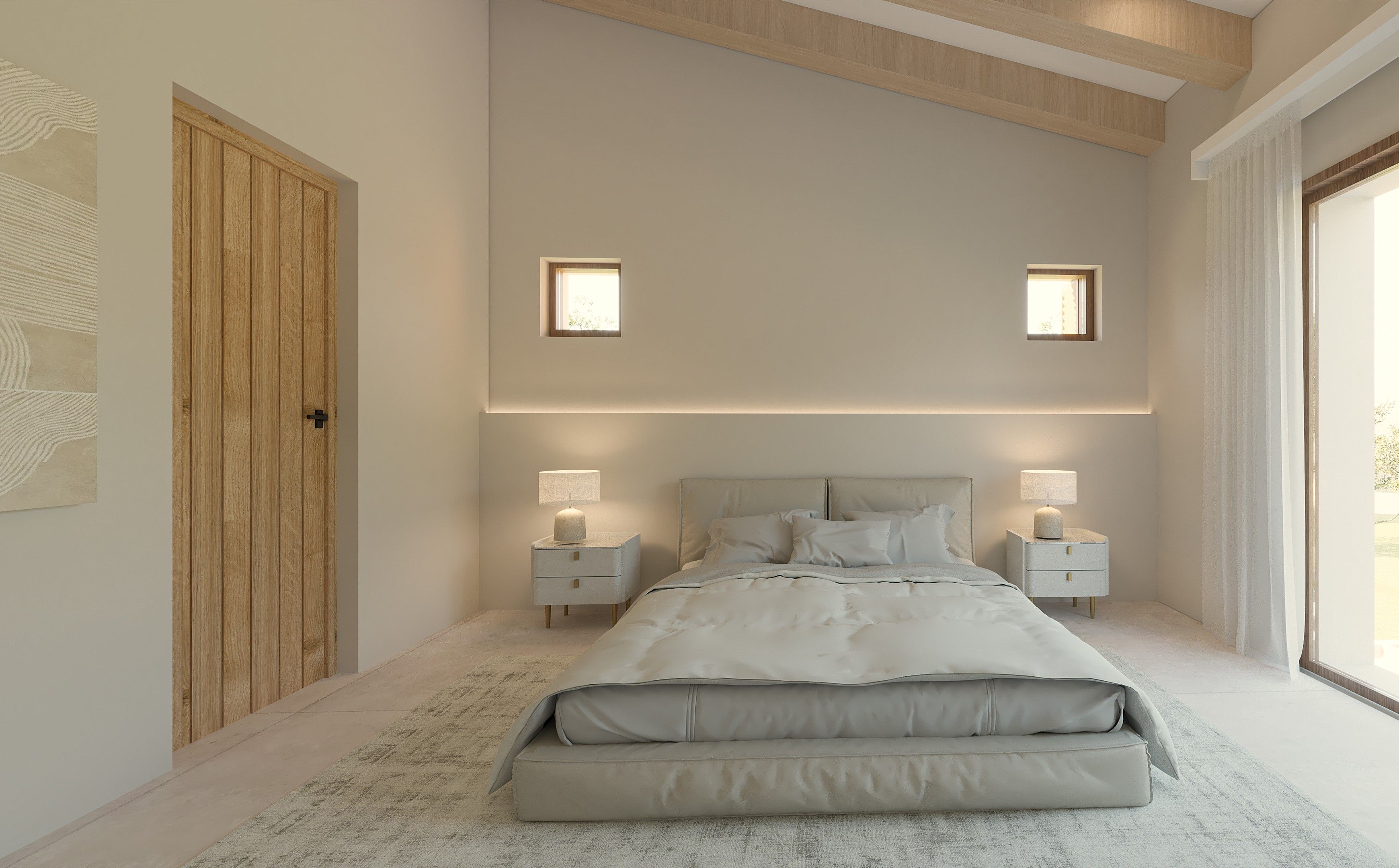 In einer ruhigen und idyllischen Lage, unweit von Cas Concos, ist geplant, auf einem großzügigen Grundstück von etwa 17.000 m² diese exklusive Neubaufinca zu errichten. Das Projekt verbindet den traditionellen Stil einer mallorquinischen Finca harmonisch mit modernen Elementen und verspricht höchsten Wohnkomfort. Der geplante Bau umfasst im Erdgeschoss einen einladenden Eingangsbereich, einen offenen Wohn- und Essbereich, der durch natürliche Materialien und helle Erdtöne eine warme Atmosphäre schaffen wird, sowie eine hochwertige enthaltene Küche mit angrenzender Speisekammer. Ein Gäste-WC und ein praktischer Hauswirtschaftsraum sind ebenfalls vorgesehen. Zudem wird im Erdgeschoss ein Schlafzimmer mit Bad en Suite eingeplant. Im Obergeschoss sind drei weitere geräumige Schlafzimmer vorgesehen, alle mit Bad en Suite. Eines der Schlafzimmer wird zusätzlich mit einem Ankleidezimmer ausgestattet. Die überdachte Terrasse wird herrliche Ausblicke bieten, während der 35 m² große Pool zur Entspannung einladen wird. Der Bau beginnt nach Verkaufsabschluss, und die Fertigstellung ist etwa 12-14 Monate später geplant. Eine Fußbodenheizung über Wärmepumpe und die Klimaanlage runden dieses Projekt ab. Die Stromversorgung erfolgt autark über eine Photovoltaik Anlage. Die Wasserversorgung erfolgt über einen Wasserwagen.