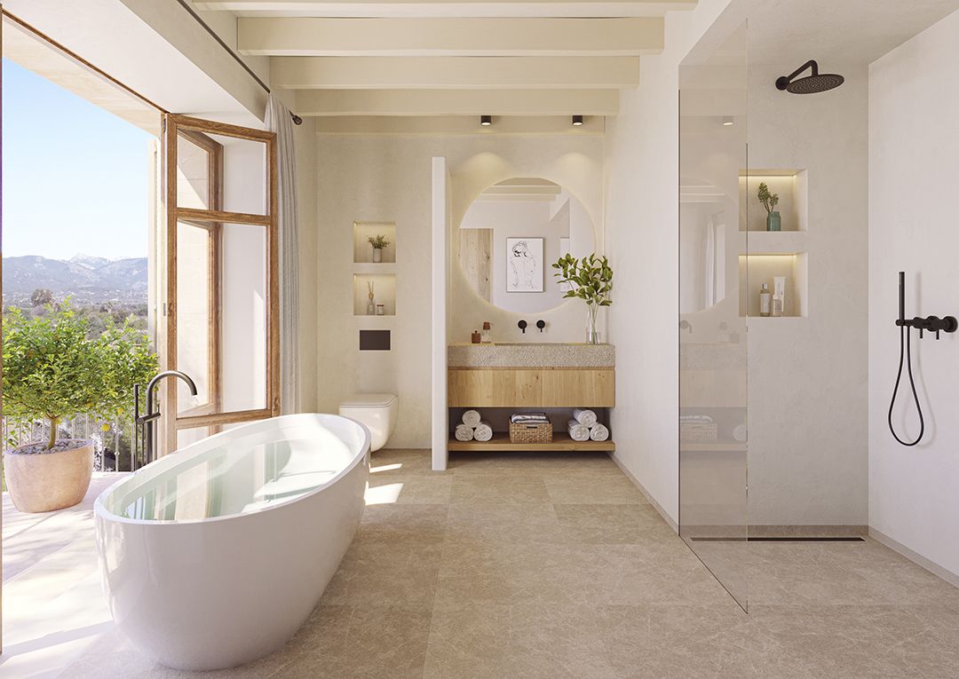 Die Immobilie wird sich über drei Etagen verteilen und über eine private Garage, einen herrlichen Garten mit Pool sowie zahlreiche Terrassen mit Blick auf die majestätische Serra de Tramuntana verfügen. Die nahtlose Verschmelzung von Architektur, Landschaft und Innendesign führt zu einem harmonischen Wohlfühlort im Haus.