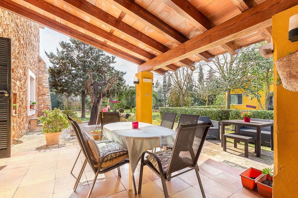 Diese Finca liegt nah am Dorf, sodass man sowohl zu Fuß als auch mit dem Rad bequem dort hingelangt. Das Haus ist Ende der 80er Jahre gebaut worden, sehr solide, mit Natursteinwänden, und im Design sehr traditionell. Die gepflegte Immobilie verfügt neben dem Hauptgebäude über eine Garage, einen weiteren Anbau sowie einen Swimmingpool. Im Garten gibt es teils sehr alte Bäume, und insgesamt ist er sehr privat gehalten.