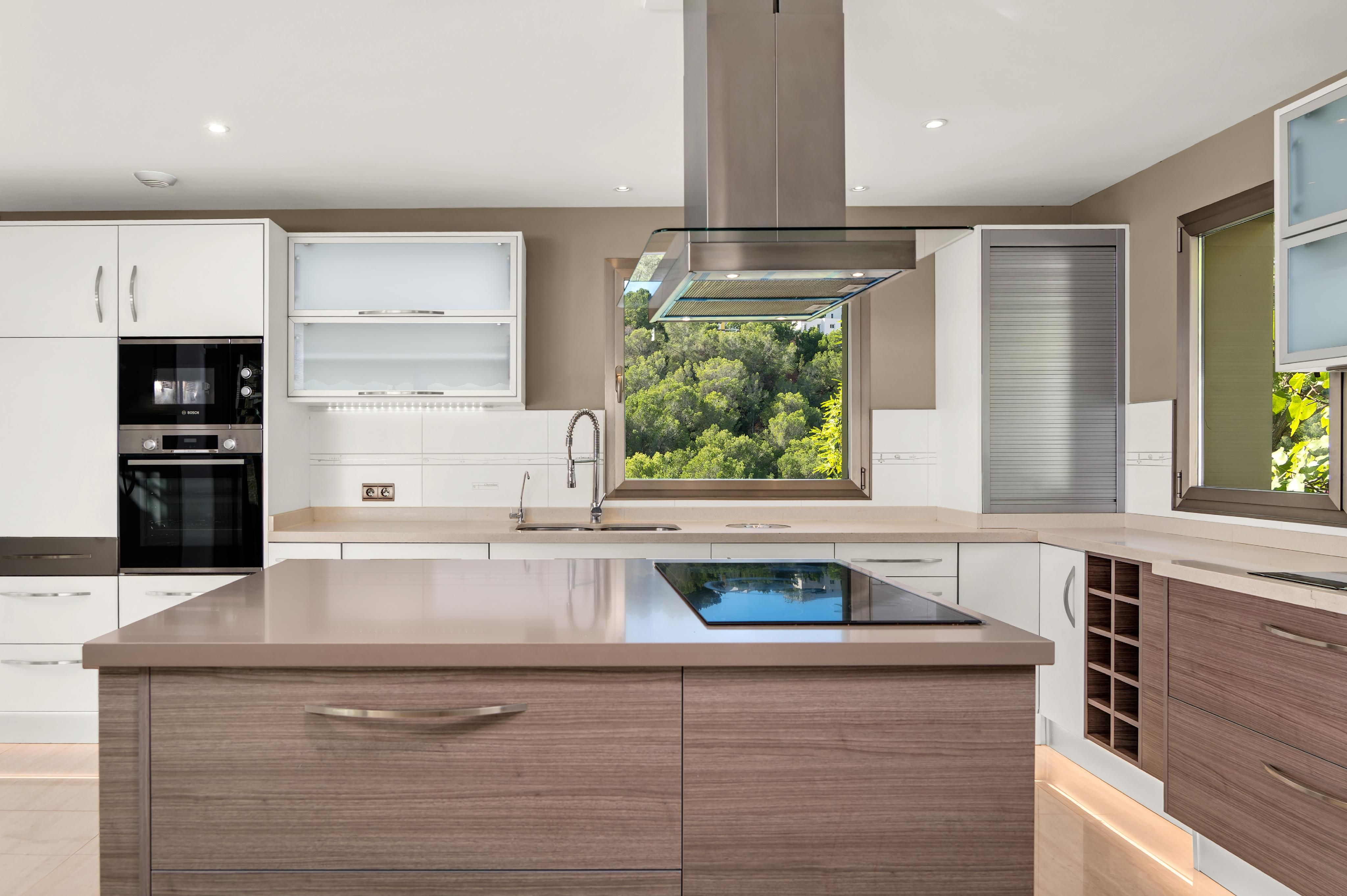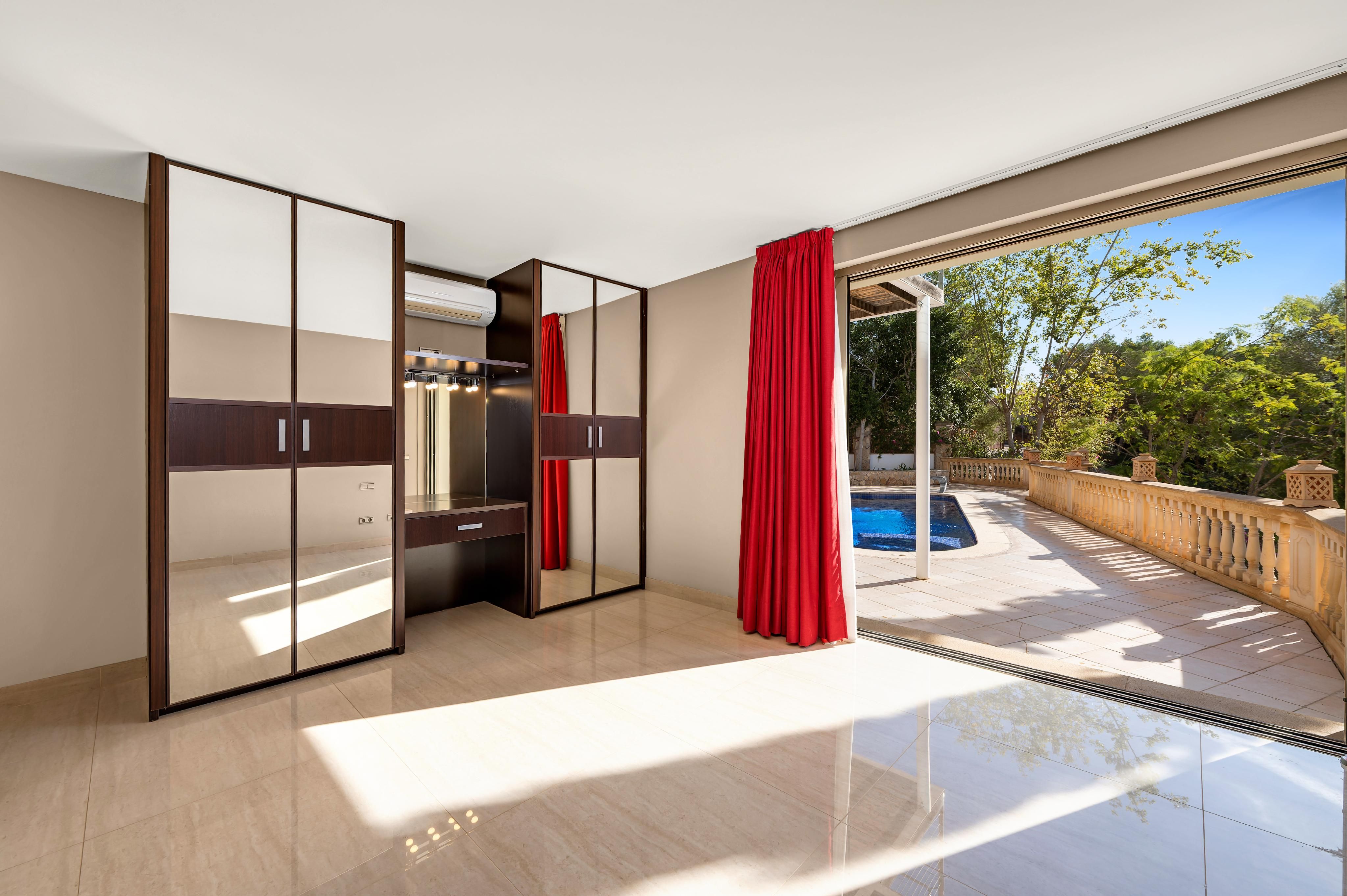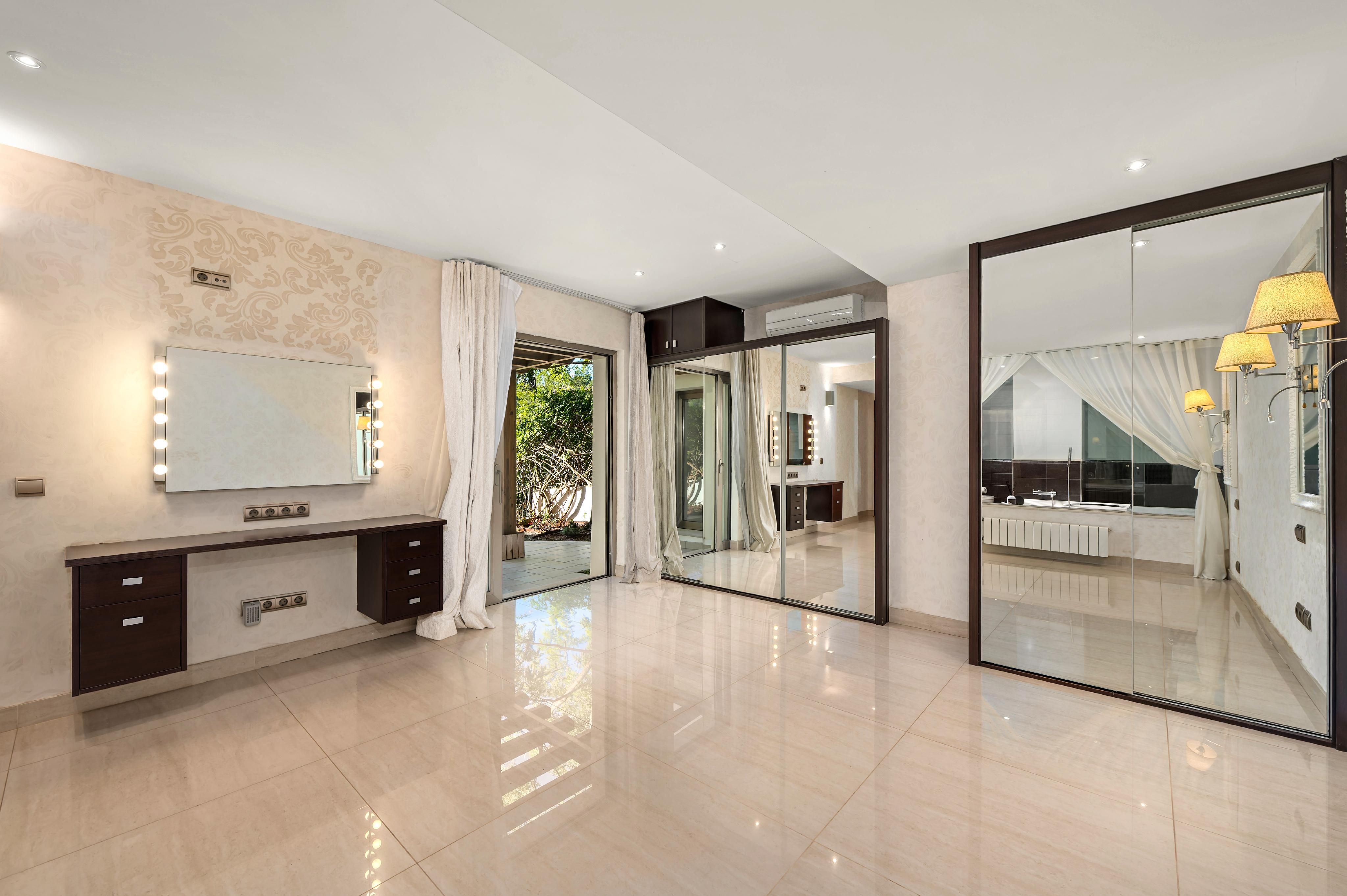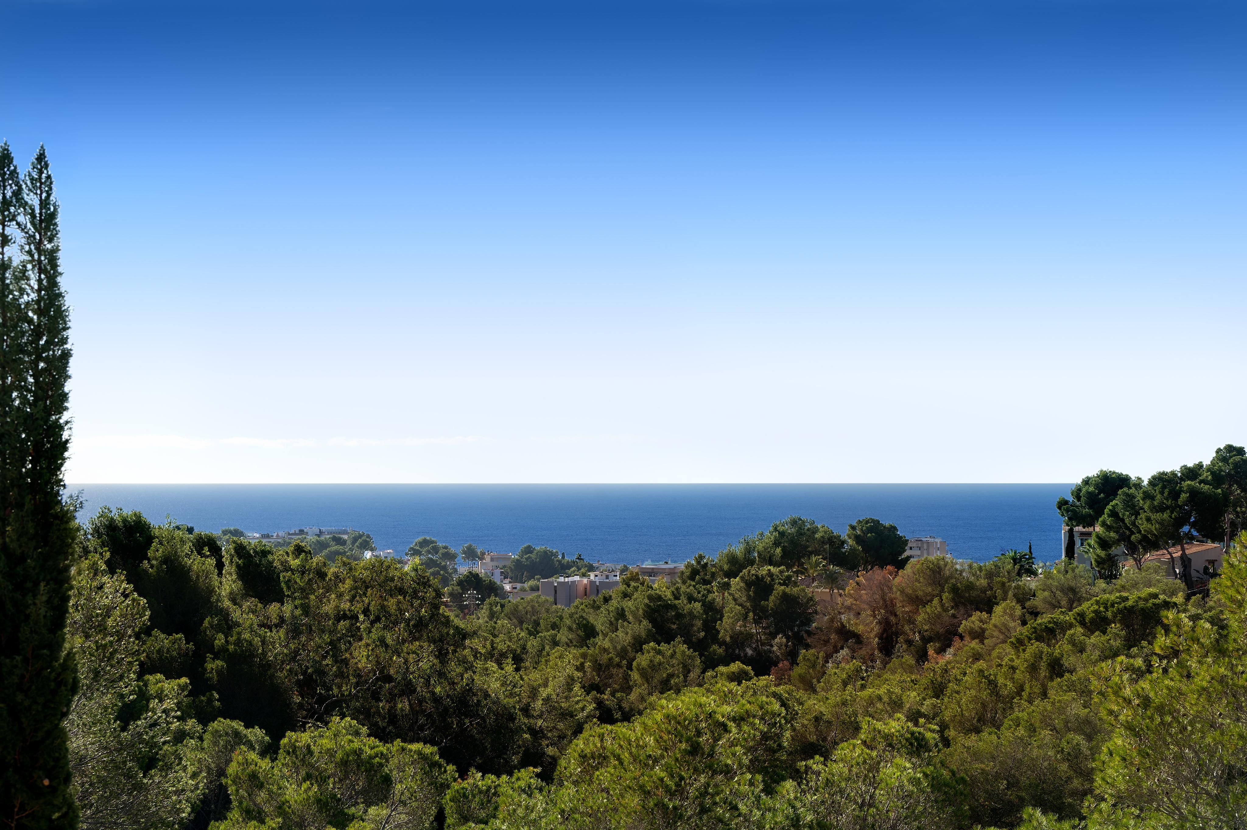 In der prestigeträchtigen Gegend von Costa d’en Blanes, ganz in der Nähe von Puerto Portals, befindet sich diese 2005 renovierte Villa, die eine außergewöhnliche Kombination aus Privatsphäre, Komfort und privilegiertem Blick auf das Grün und das Meer bietet. Ihre Südostausrichtung und die großen Fenster machen sie zu einer sehr hellen und sonnigen Immobilie – perfekt, um den mediterranen Lebensstil zu genießen. Auf der Hauptebene, von der aus man einen schönen Panoramablick ins Grüne und aufs Meer genießt, befindet sich ein großzügiges und lichtdurchflutetes Wohn-Esszimmer mit direktem Zugang zu einer einladenden Terrasse, eine vollständig ausgestattete offene Küche sowie ein Gäste-WC. Die untere Ebene ist dem Ruhebereich gewidmet und umfasst vier Schlafzimmer, alle mit Bad en suite. Die Hauptsuite verfügt über eine private Terrasse, während zwei weitere Schlafzimmer direkten Zugang zum Poolbereich haben. Auf der oberen Etage bietet ein privates Solarium spektakuläre Ausblicke auf das Grün und das Meer – der perfekte Ort zum Entspannen, Sonnenbaden oder um die Sonnenuntergänge zu genießen. Das Haus ist mit Gaszentralheizung über Radiatoren und Klimaanlage ausgestattet und bietet so das ganze Jahr über hohen Komfort. Zudem verfügt es über zwei Außenstellplätze sowie einen Abstellraum. Eine komfortable, elegante und lichtdurchflutete Villa in einer der exklusivsten Lagen im Südwesten Mallorcas.