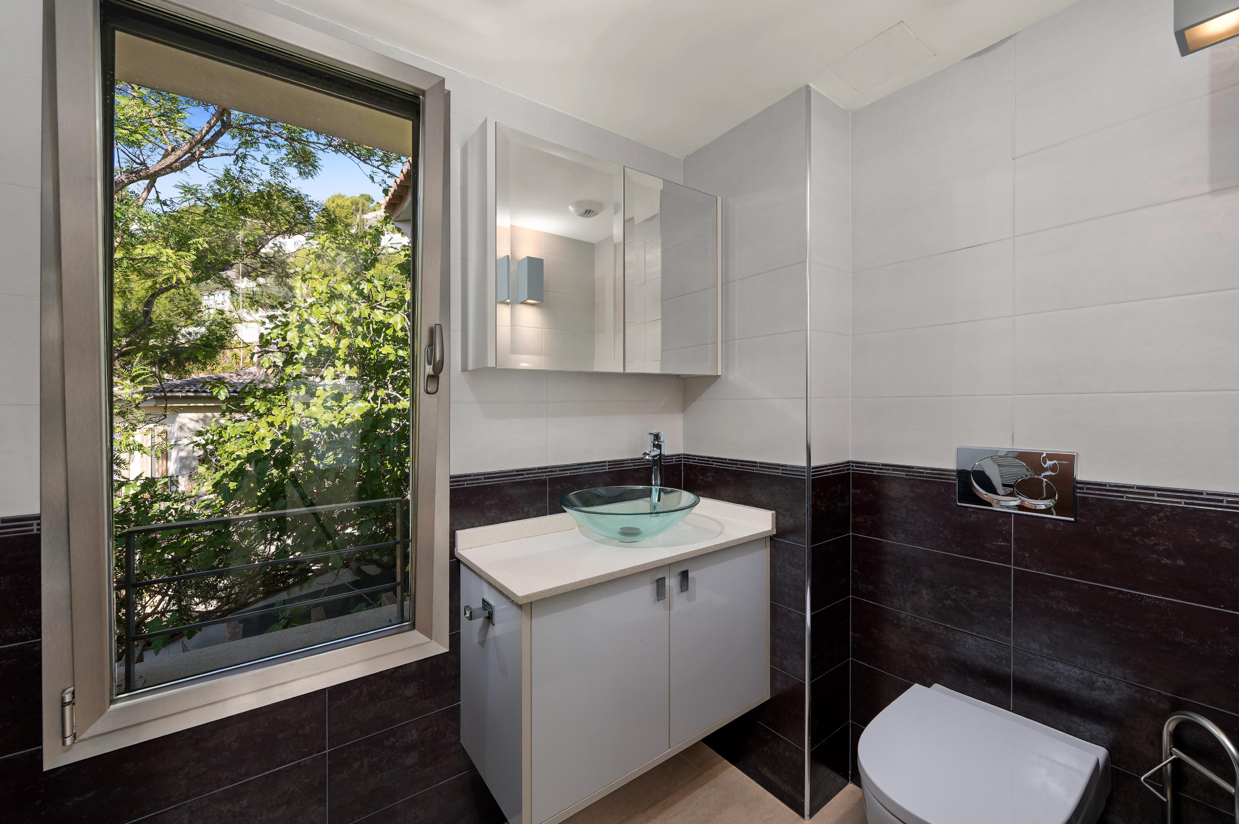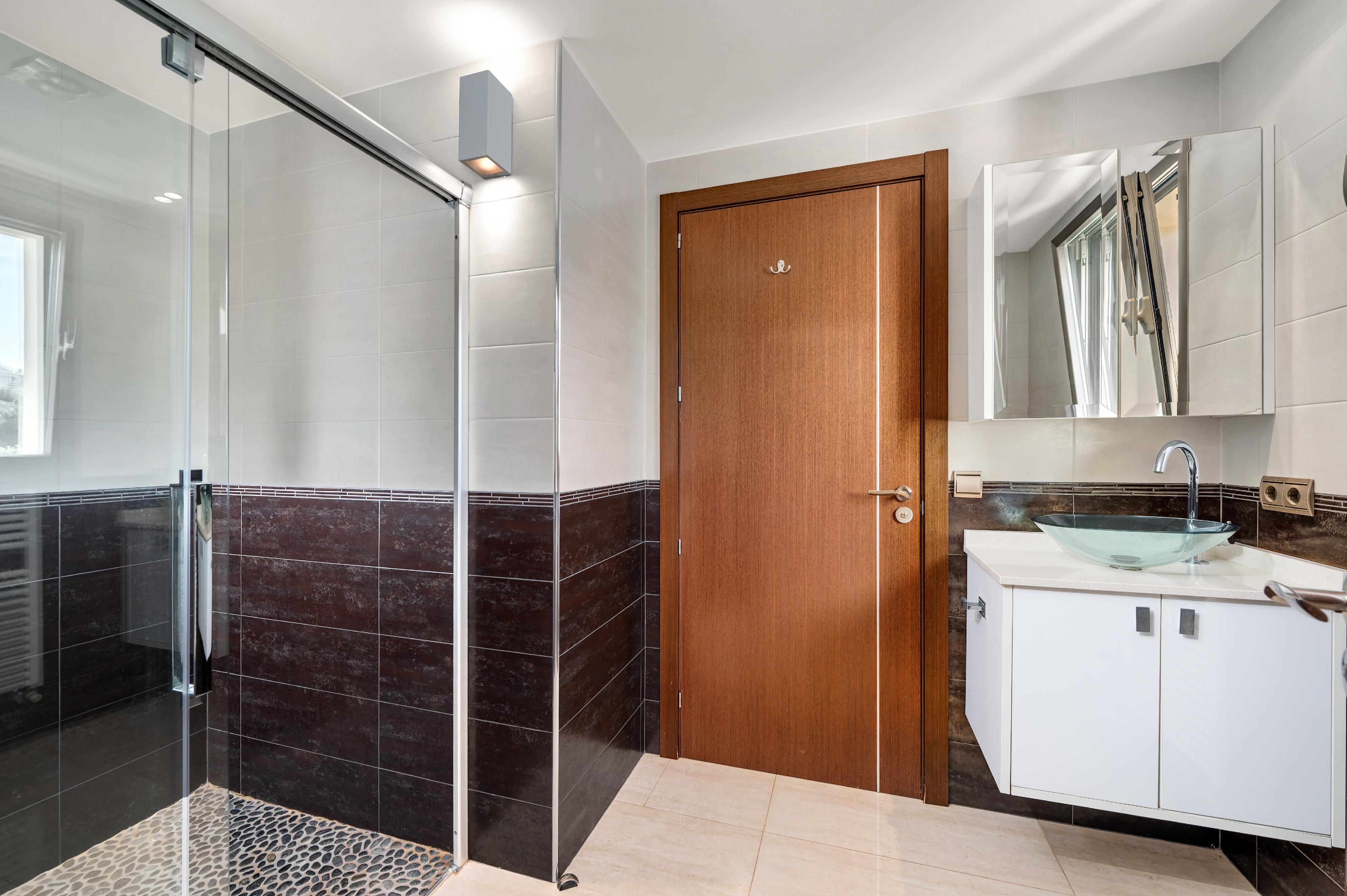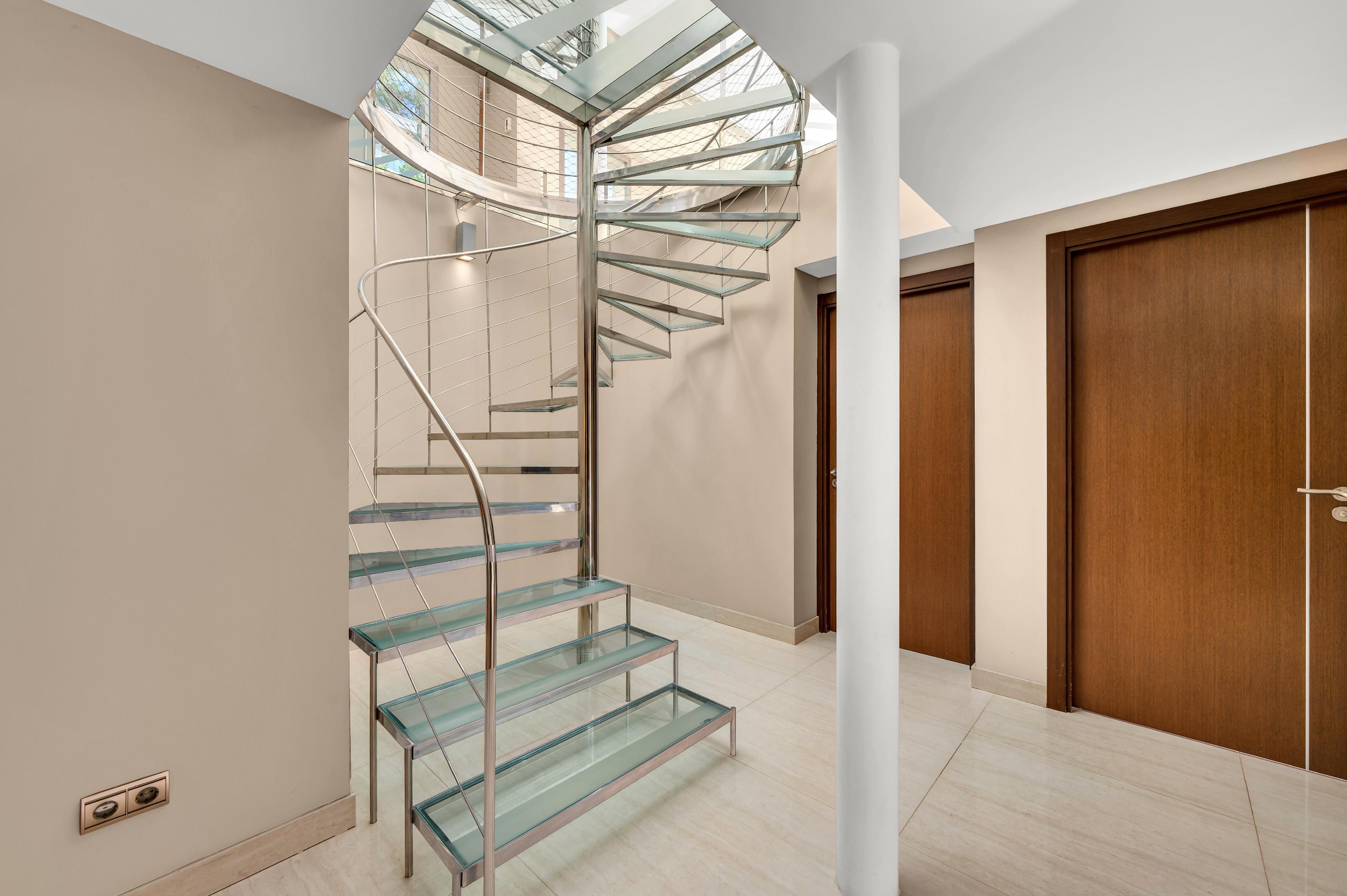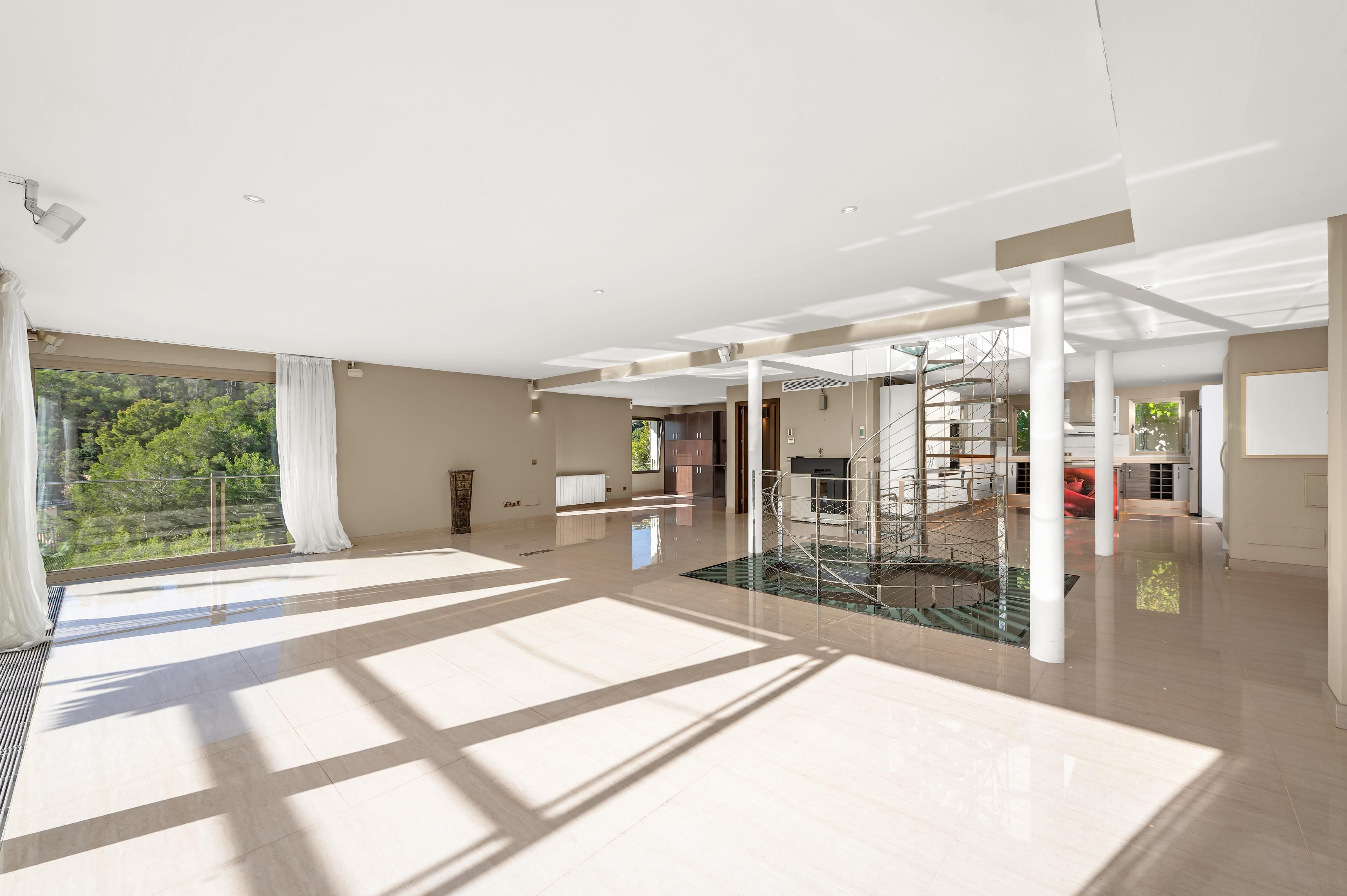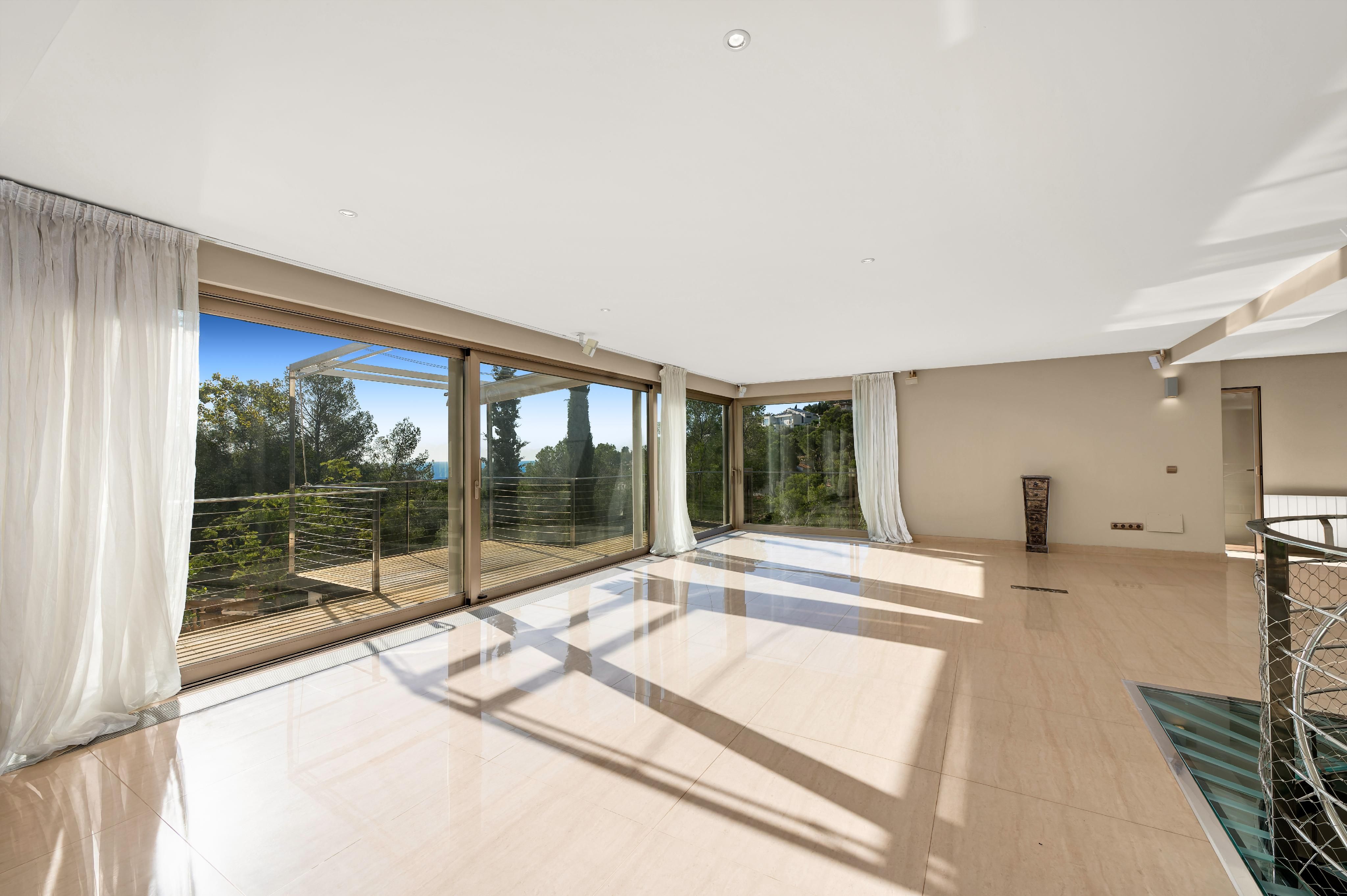 In der prestigeträchtigen Gegend von Costa d’en Blanes, ganz in der Nähe von Puerto Portals, befindet sich diese 2005 renovierte Villa, die eine außergewöhnliche Kombination aus Privatsphäre, Komfort und privilegiertem Blick auf das Grün und das Meer bietet. Ihre Südostausrichtung und die großen Fenster machen sie zu einer sehr hellen und sonnigen Immobilie – perfekt, um den mediterranen Lebensstil zu genießen. Auf der Hauptebene, von der aus man einen schönen Panoramablick ins Grüne und aufs Meer genießt, befindet sich ein großzügiges und lichtdurchflutetes Wohn-Esszimmer mit direktem Zugang zu einer einladenden Terrasse, eine vollständig ausgestattete offene Küche sowie ein Gäste-WC. Die untere Ebene ist dem Ruhebereich gewidmet und umfasst vier Schlafzimmer, alle mit Bad en suite. Die Hauptsuite verfügt über eine private Terrasse, während zwei weitere Schlafzimmer direkten Zugang zum Poolbereich haben. Auf der oberen Etage bietet ein privates Solarium spektakuläre Ausblicke auf das Grün und das Meer – der perfekte Ort zum Entspannen, Sonnenbaden oder um die Sonnenuntergänge zu genießen. Das Haus ist mit Gaszentralheizung über Radiatoren und Klimaanlage ausgestattet und bietet so das ganze Jahr über hohen Komfort. Zudem verfügt es über zwei Außenstellplätze sowie einen Abstellraum. Eine komfortable, elegante und lichtdurchflutete Villa in einer der exklusivsten Lagen im Südwesten Mallorcas.