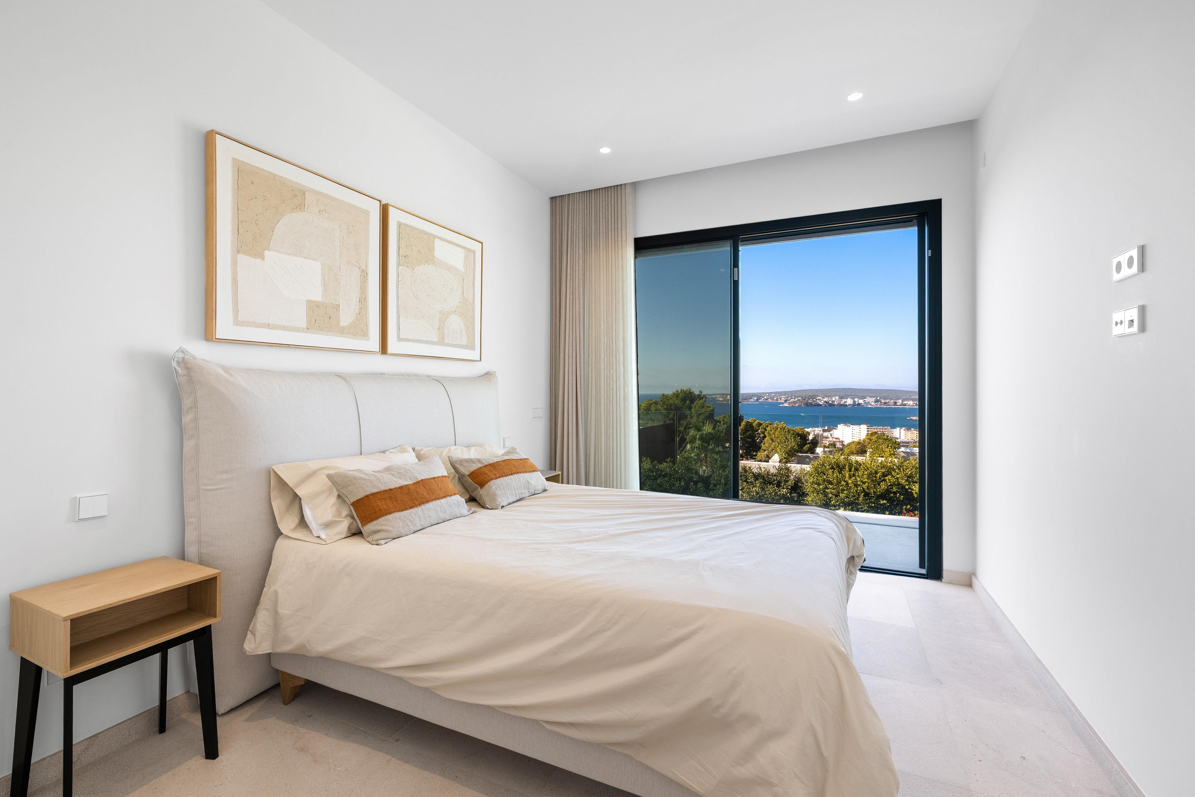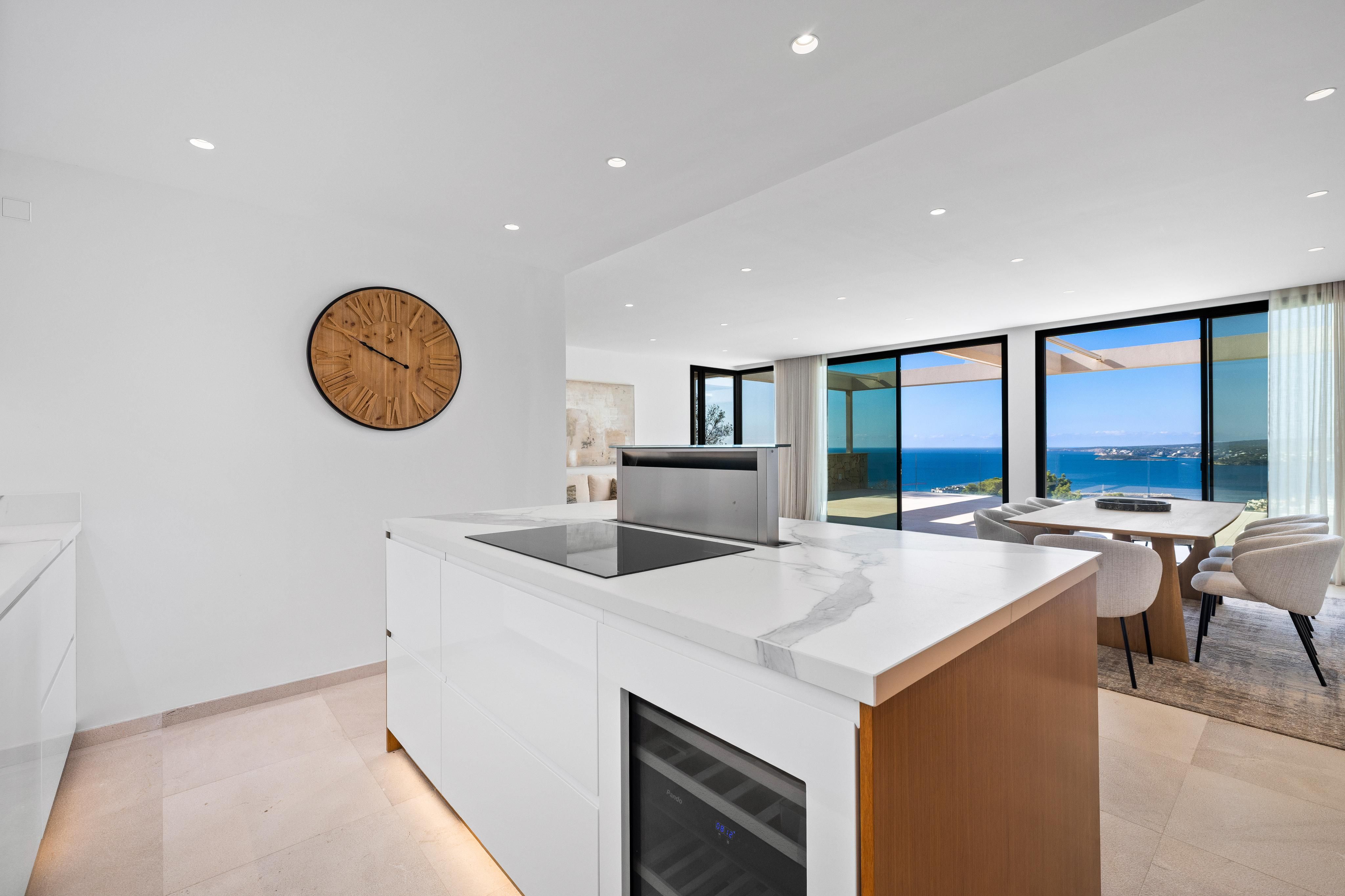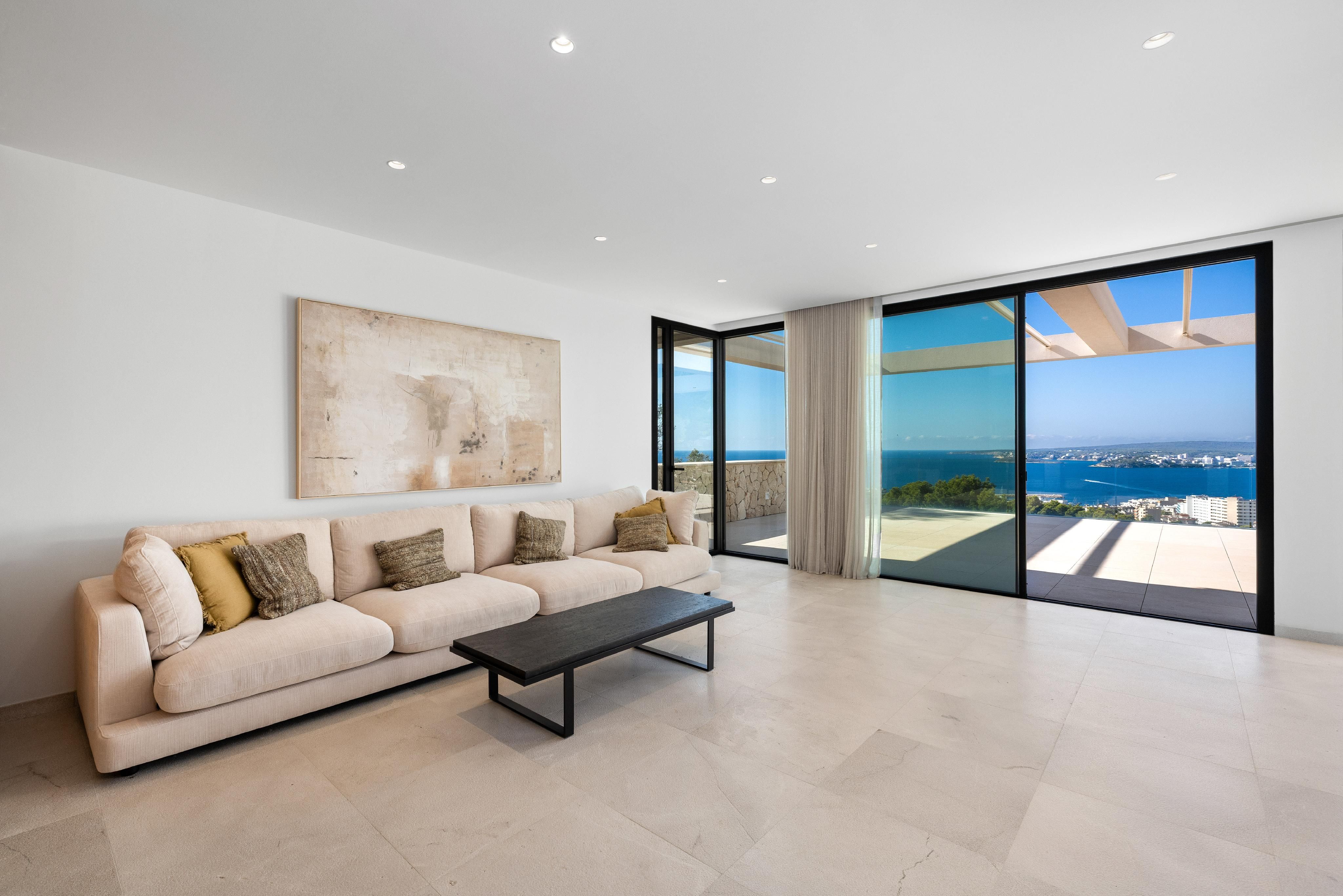 Diese neu gebaute Villa in Portals bietet einen atemberaubenden Süd-Südwest-Meerblick auf die Bucht von Palmanova, was sie zu einem idealen Ort macht, um die Sonne von morgens bis abends zu genießen, während sie nur einen kurzen Spaziergang von den Annehmlichkeiten des Ortes, dem Strand und dem Hafen von Puerto Portals entfernt ist. Beim Betreten des Hauses werden Sie im offenen Wohn-, Ess- und Küchenbereich willkommen geheißen, der sich zu einer großen Terrasse hin öffnet, die ideal für Mahlzeiten und sommerliche Grillabende mit Freunden ist. In der unteren Etage befinden sich das Hauptschlafzimmer mit einem schönen Bad en suite und 2 weitere Gästezimmer. Von allen Schlafzimmern gibt es einen direkten Zugang zur Poolterrasse und einem ebenen Garten, der ideal für Kinder ist. Es gibt ein großes Untergeschoss mit einem Badezimmer, ideal für einen Fitness- oder Wellnessbereich oder einen Kinoraum. Eine großzügige Dachterrasse rundet das Angebot ab. Zur Ausstattung gehören Fußbodenheizung, Klimaanlage (w/k), Gäste-WC, Waschraum, elektrische Rollläden und ein sicherer Parkplatz.