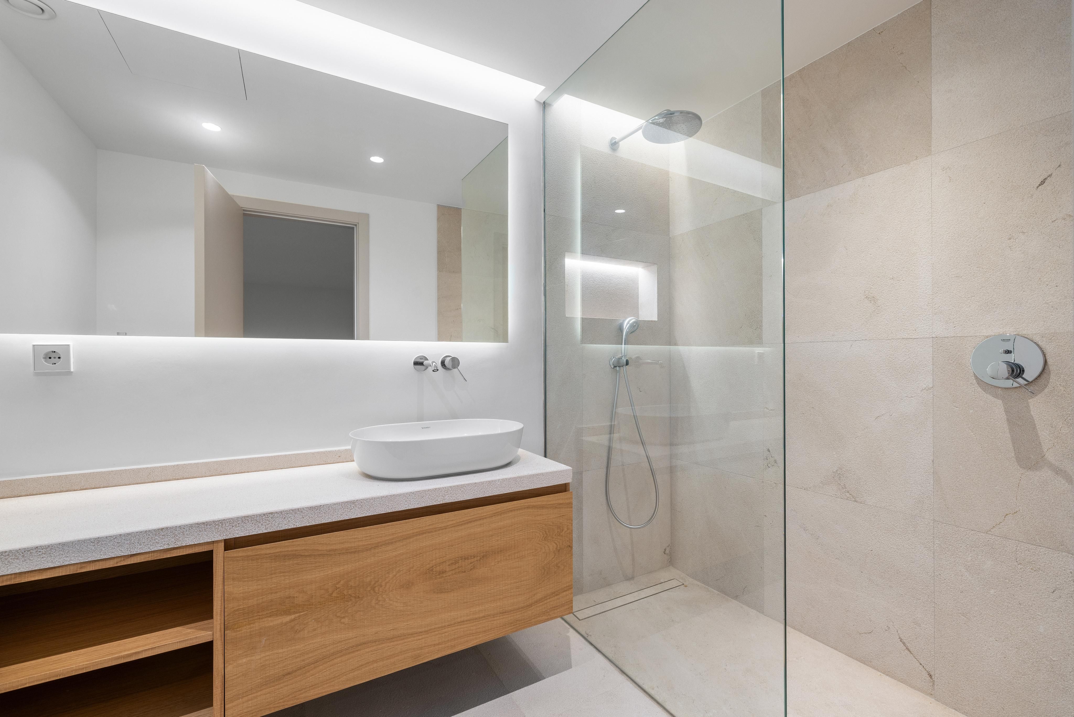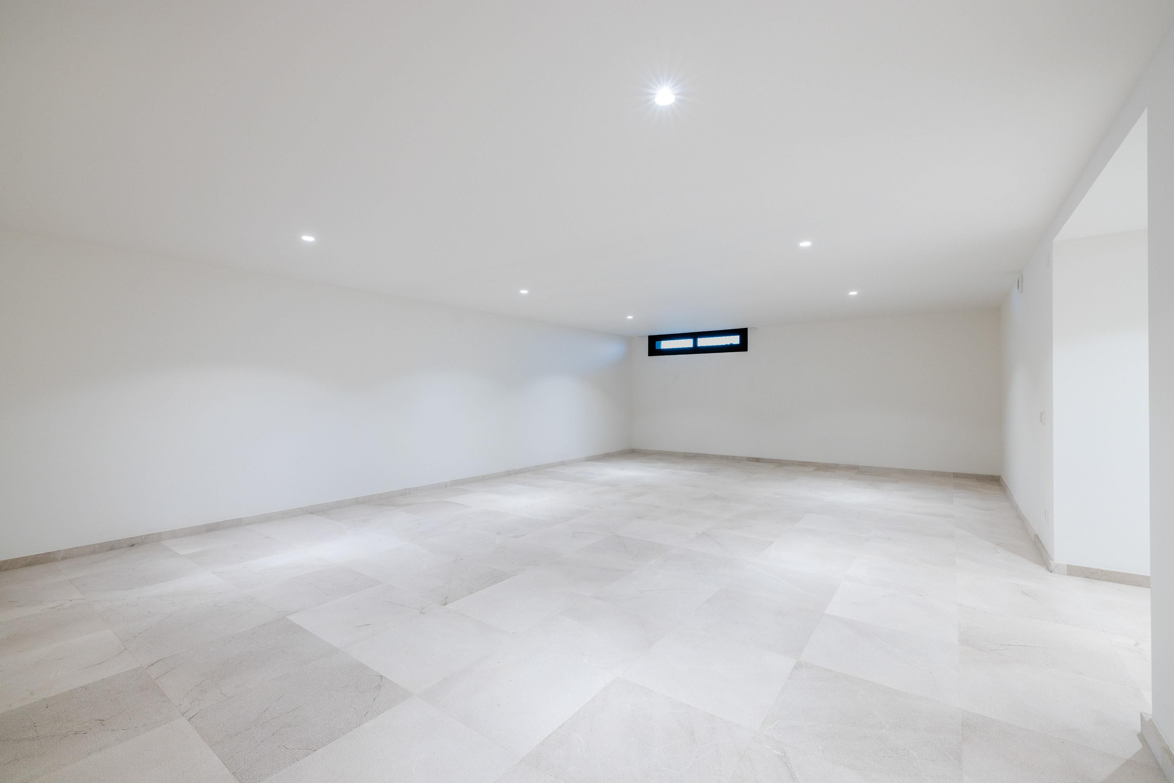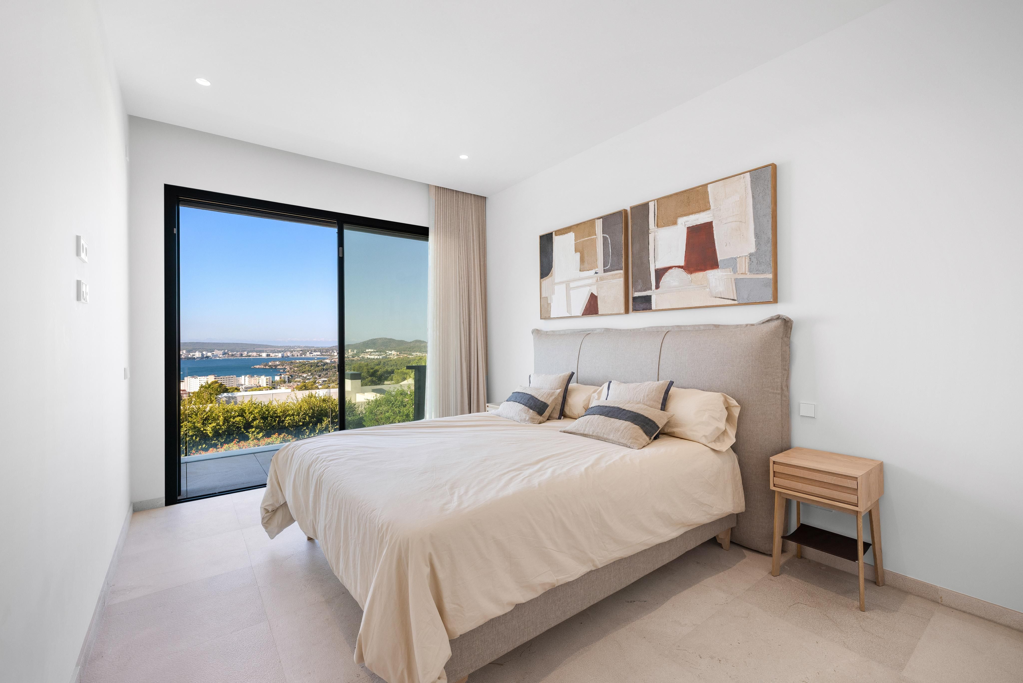 Diese neu gebaute Villa in Portals bietet einen atemberaubenden Süd-Südwest-Meerblick auf die Bucht von Palmanova, was sie zu einem idealen Ort macht, um die Sonne von morgens bis abends zu genießen, während sie nur einen kurzen Spaziergang von den Annehmlichkeiten des Ortes, dem Strand und dem Hafen von Puerto Portals entfernt ist. Beim Betreten des Hauses werden Sie im offenen Wohn-, Ess- und Küchenbereich willkommen geheißen, der sich zu einer großen Terrasse hin öffnet, die ideal für Mahlzeiten und sommerliche Grillabende mit Freunden ist. In der unteren Etage befinden sich das Hauptschlafzimmer mit einem schönen Bad en suite und 2 weitere Gästezimmer. Von allen Schlafzimmern gibt es einen direkten Zugang zur Poolterrasse und einem ebenen Garten, der ideal für Kinder ist. Es gibt ein großes Untergeschoss mit einem Badezimmer, ideal für einen Fitness- oder Wellnessbereich oder einen Kinoraum. Eine großzügige Dachterrasse rundet das Angebot ab. Zur Ausstattung gehören Fußbodenheizung, Klimaanlage (w/k), Gäste-WC, Waschraum, elektrische Rollläden und ein sicherer Parkplatz.