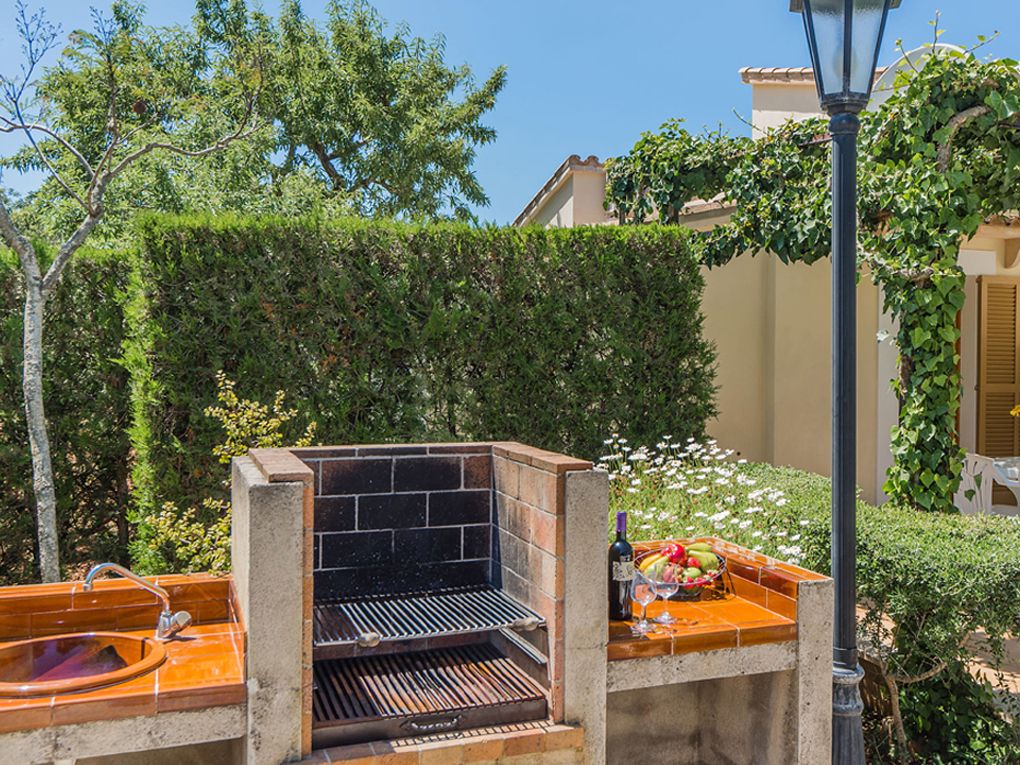 The separate kitchen is fully equipped with fridge-freezer, electric oven, ceramic hob, dishwasher, and microwave. Adjacent is a laundry room with washing machine and a newly renovated shower bathroom, which also connects to the covered terrace with BBQ area.